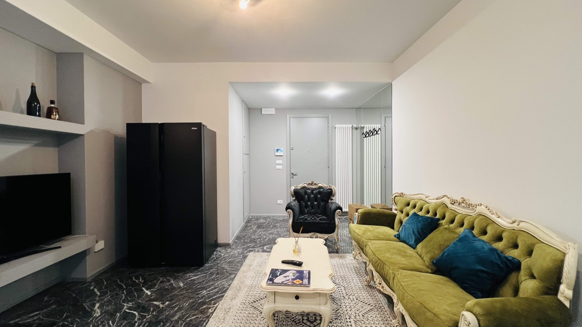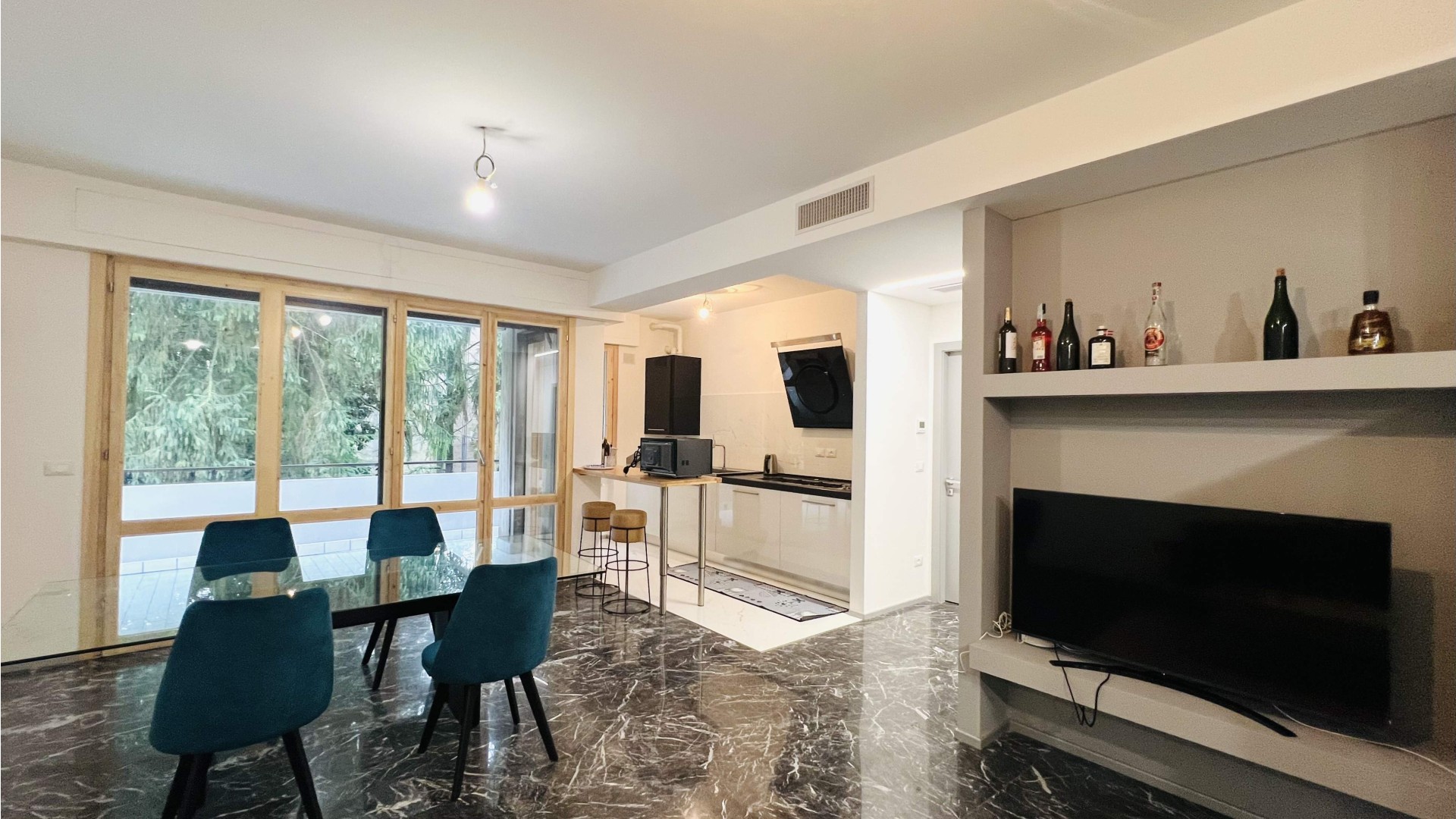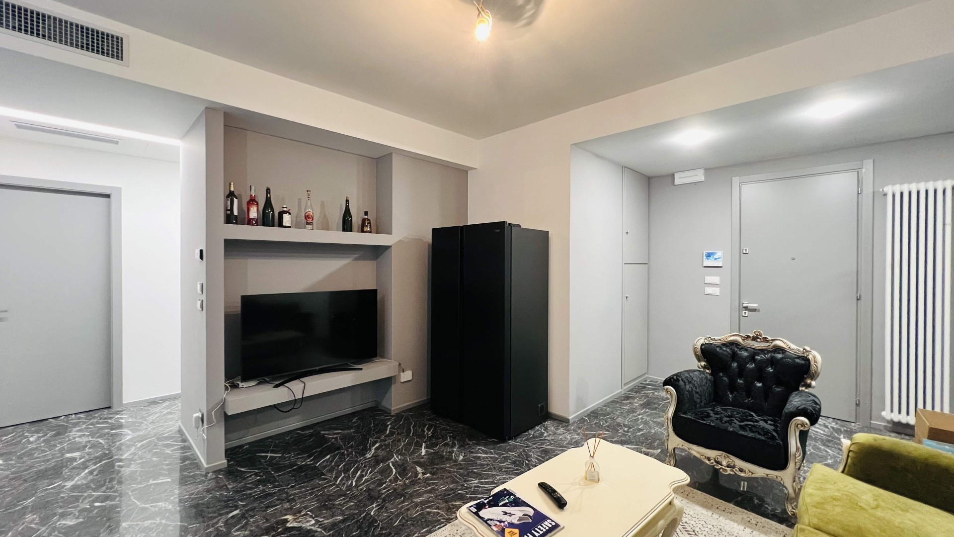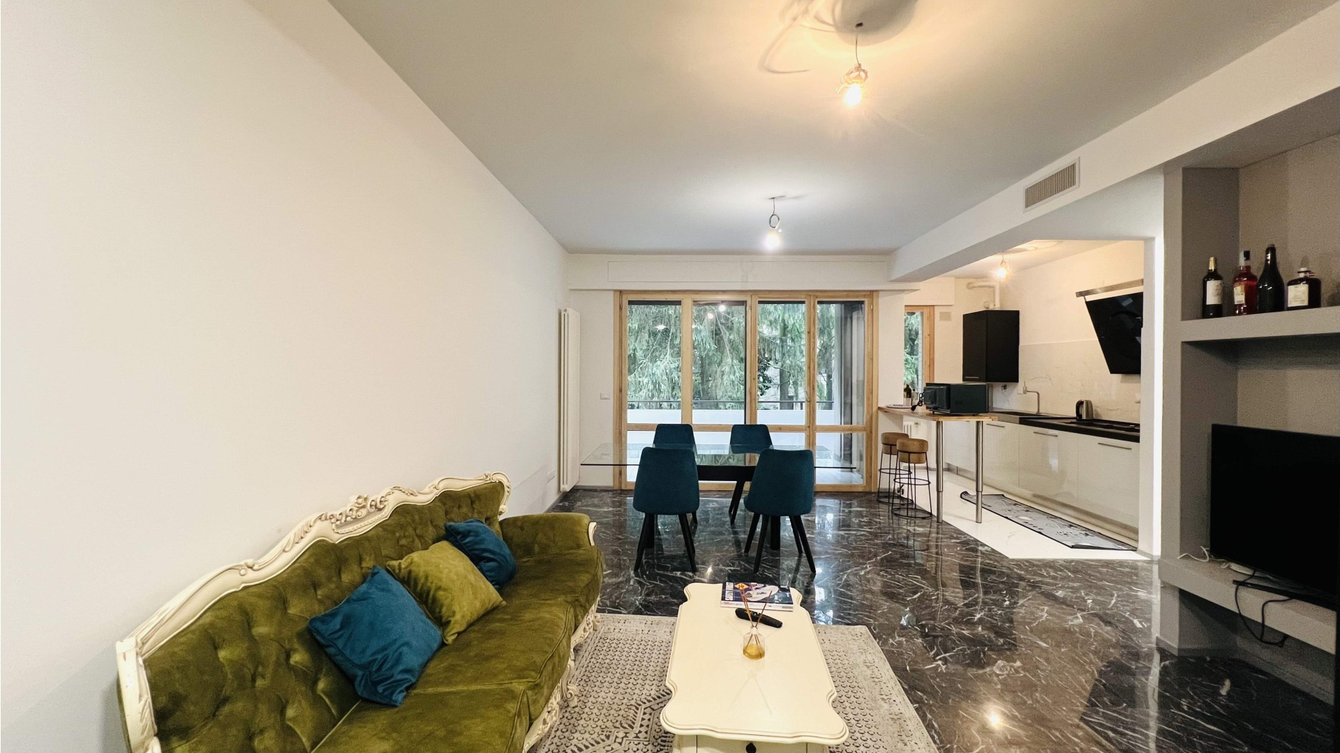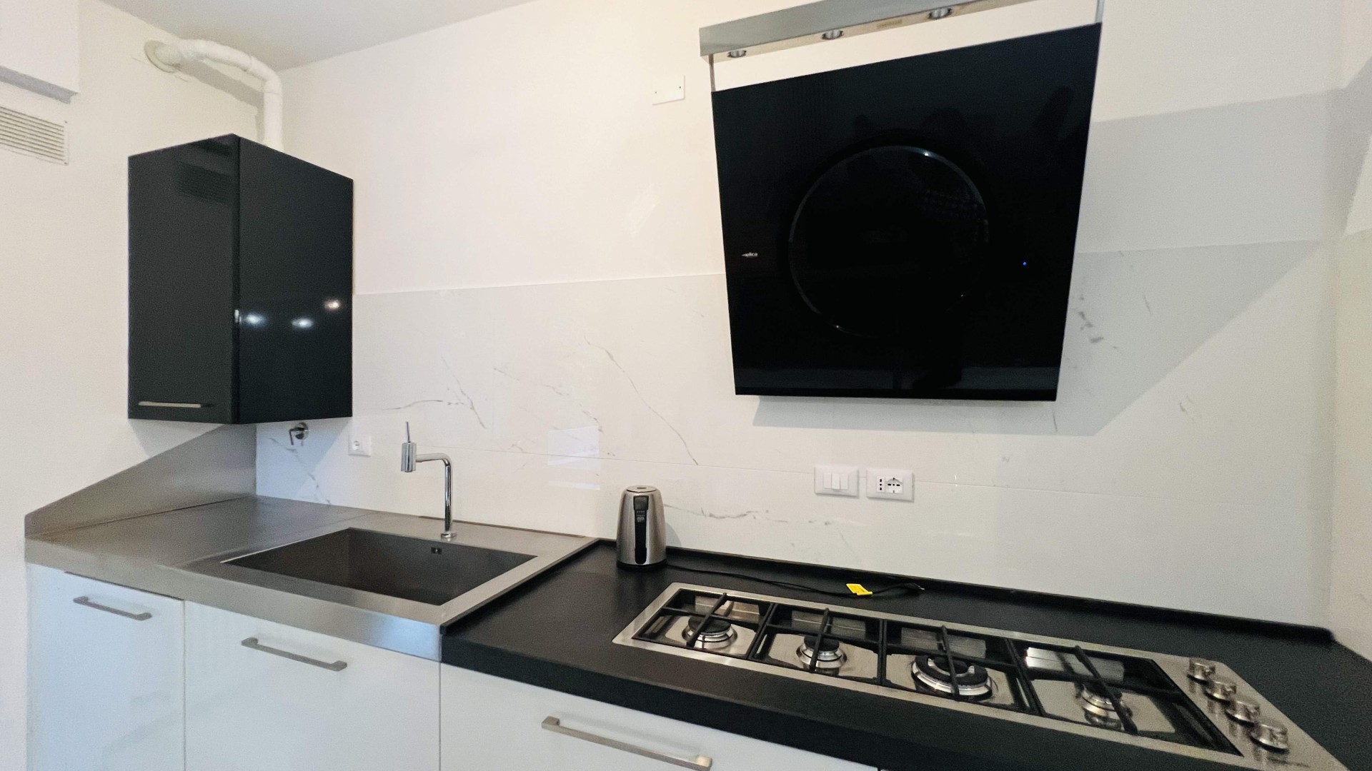 L'immobile si apre su una zona giorno open-space elegante ed accogliente, dove il soggiorno e la cucina a vista si fondono armoniosamente in un unico ambiente ideale per momenti di relax e convivialità. Le ampie aperture che consentono l'accesso al terrazzo abitabile garantiscono un'ottima illuminazione naturale.