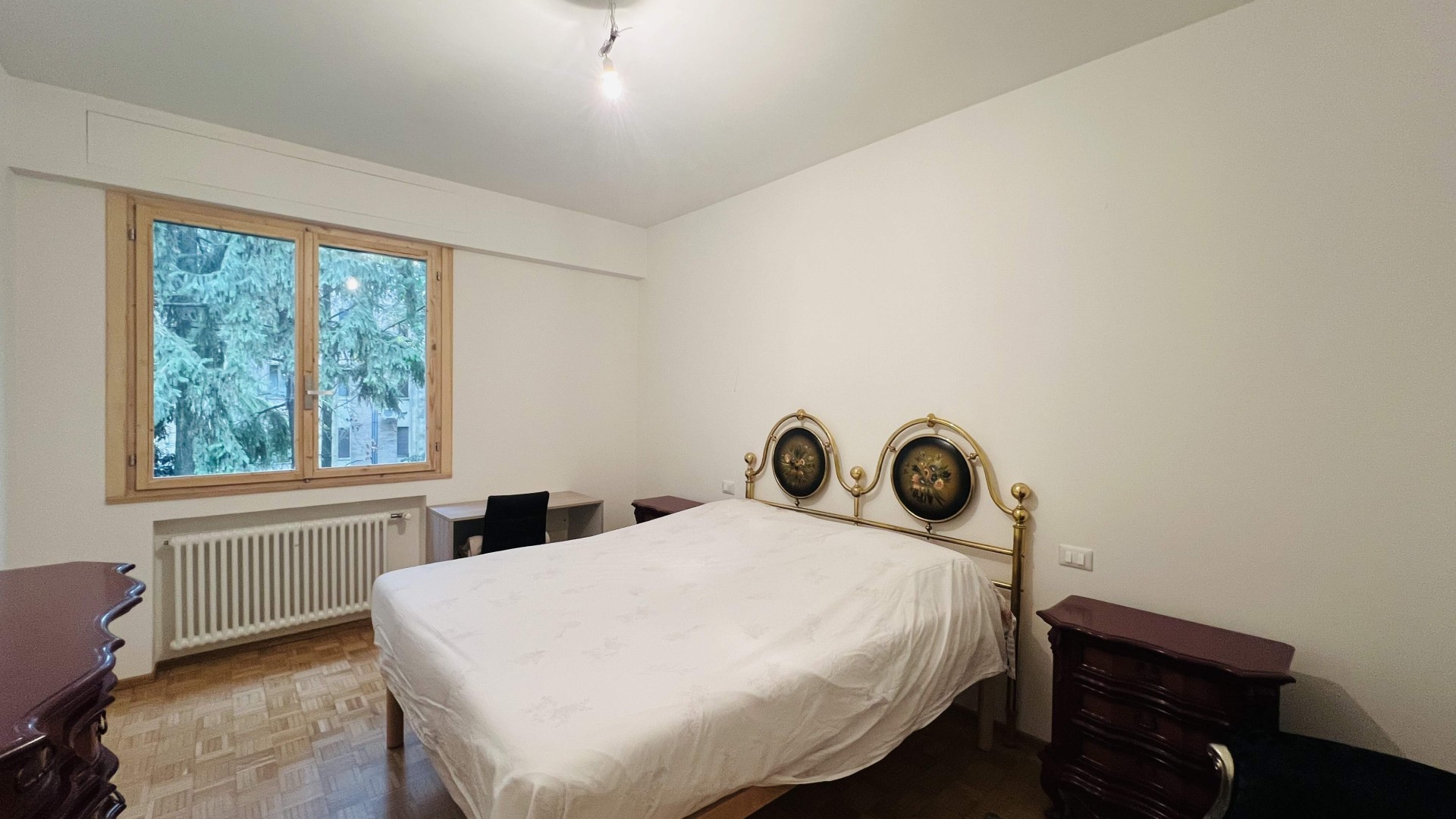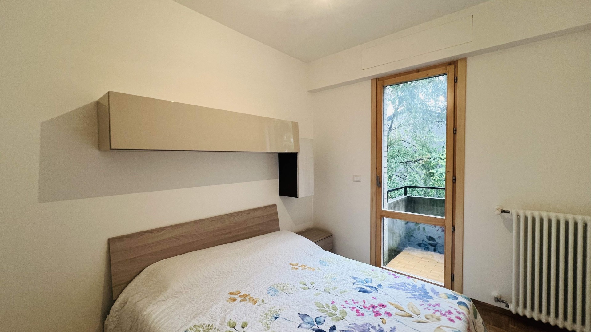 La zona notte si compone di due camere da letto, di cui una matrimoniale ed una singola con balconcino, ideali per una famiglia o per chi desidera uno spazio aggiuntivo come studio o stanza per gli ospiti.