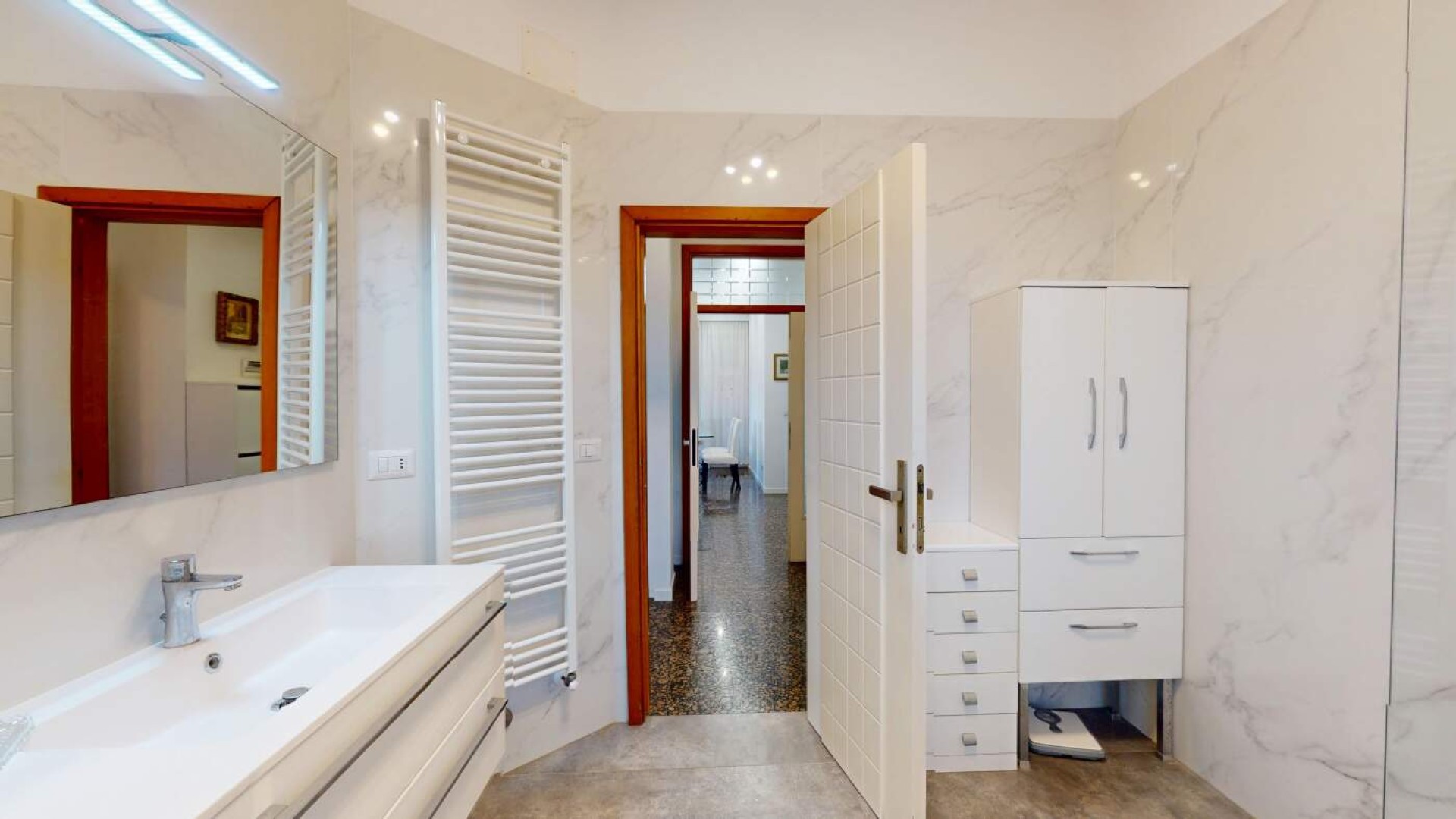 Completa il piano un bagno finestrato con box doccia e un pratico ripostiglio attualmente adibito a zona lavanderia.