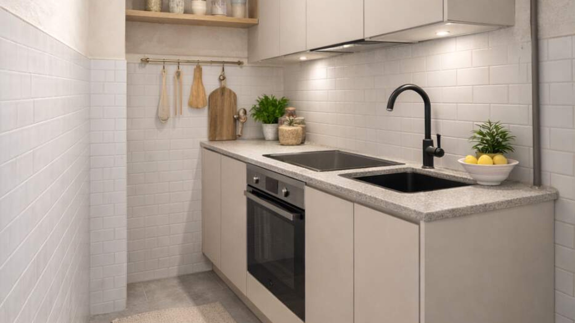 Qui trova spazio un pratico retro cucina con angolo cottura, funzionale e ben organizzato, ideale per vivere la quotidianità in modo confortevole.