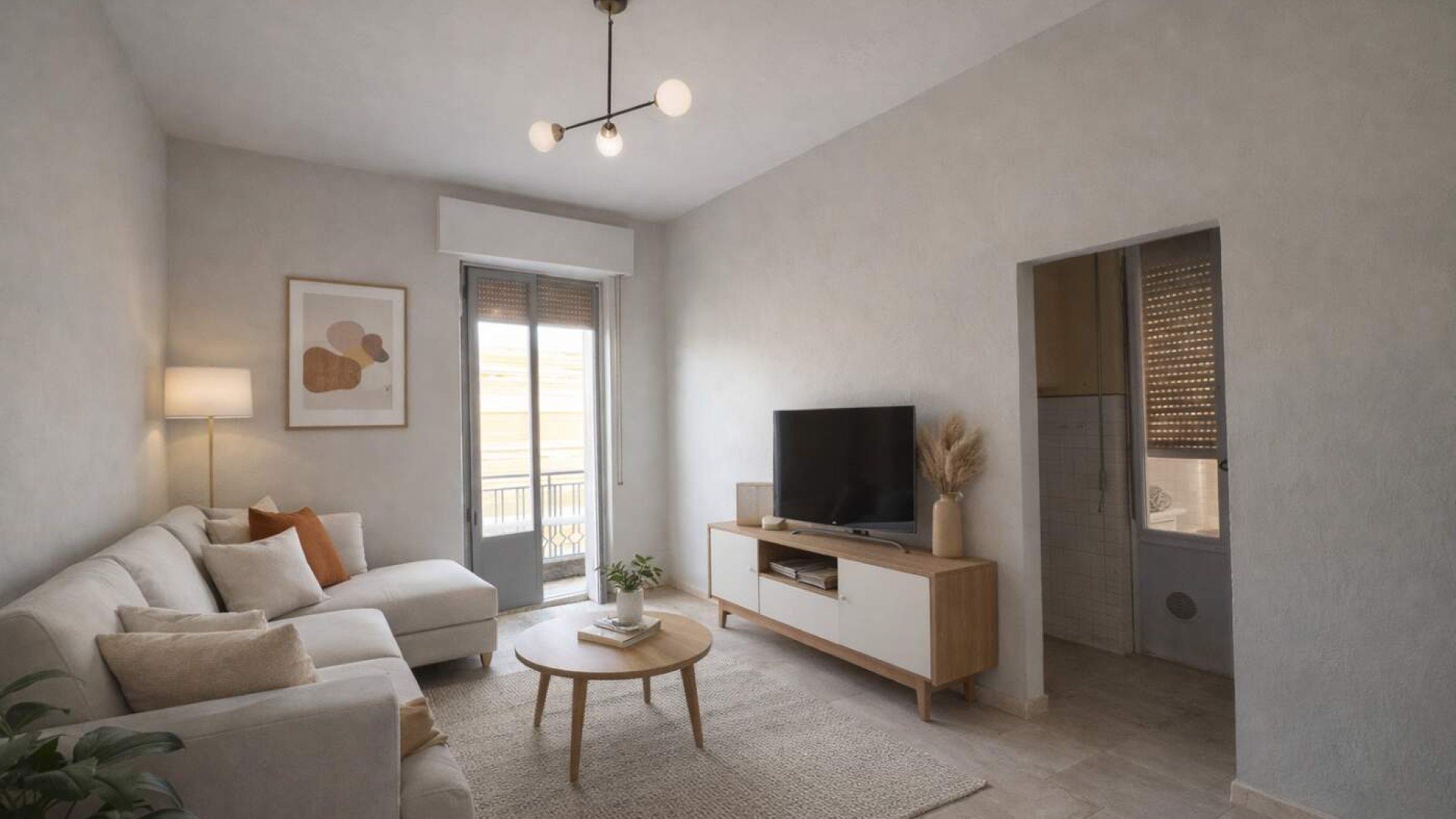 L’ingresso introduce a un comodo disimpegno che accompagna armoniosamente alla zona giorno, caratterizzata da un soggiorno luminoso con accesso diretto al balcone.