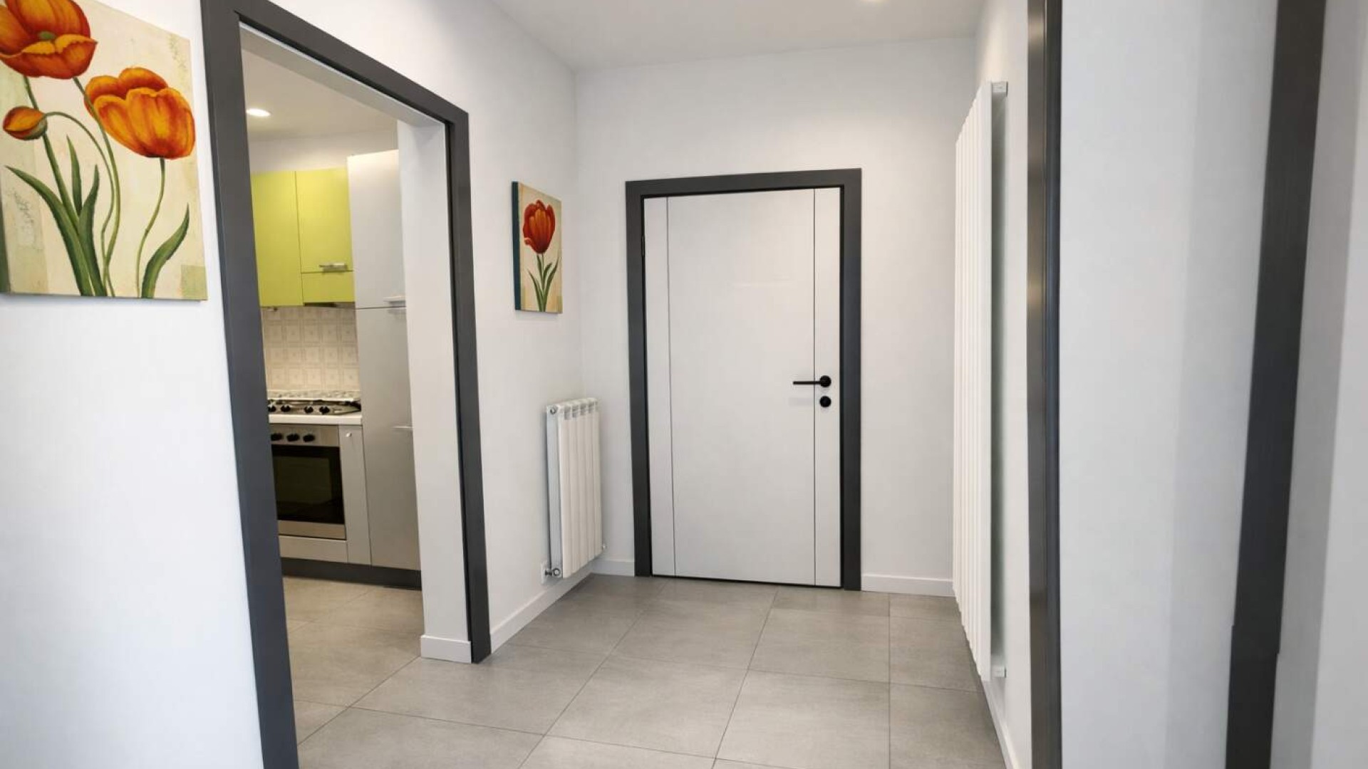 L’appartamento, in ottime condizioni, si apre su un pratico disimpegno che accompagna alla cucina separata, funzionale e ben organizzata, e al luminoso soggiorno indipendente, caratterizzato da ampie aperture che affacciano sul balcone di 6,5 mq esposto a Nord, ideale per concedersi momenti di relax all’aria aperta.