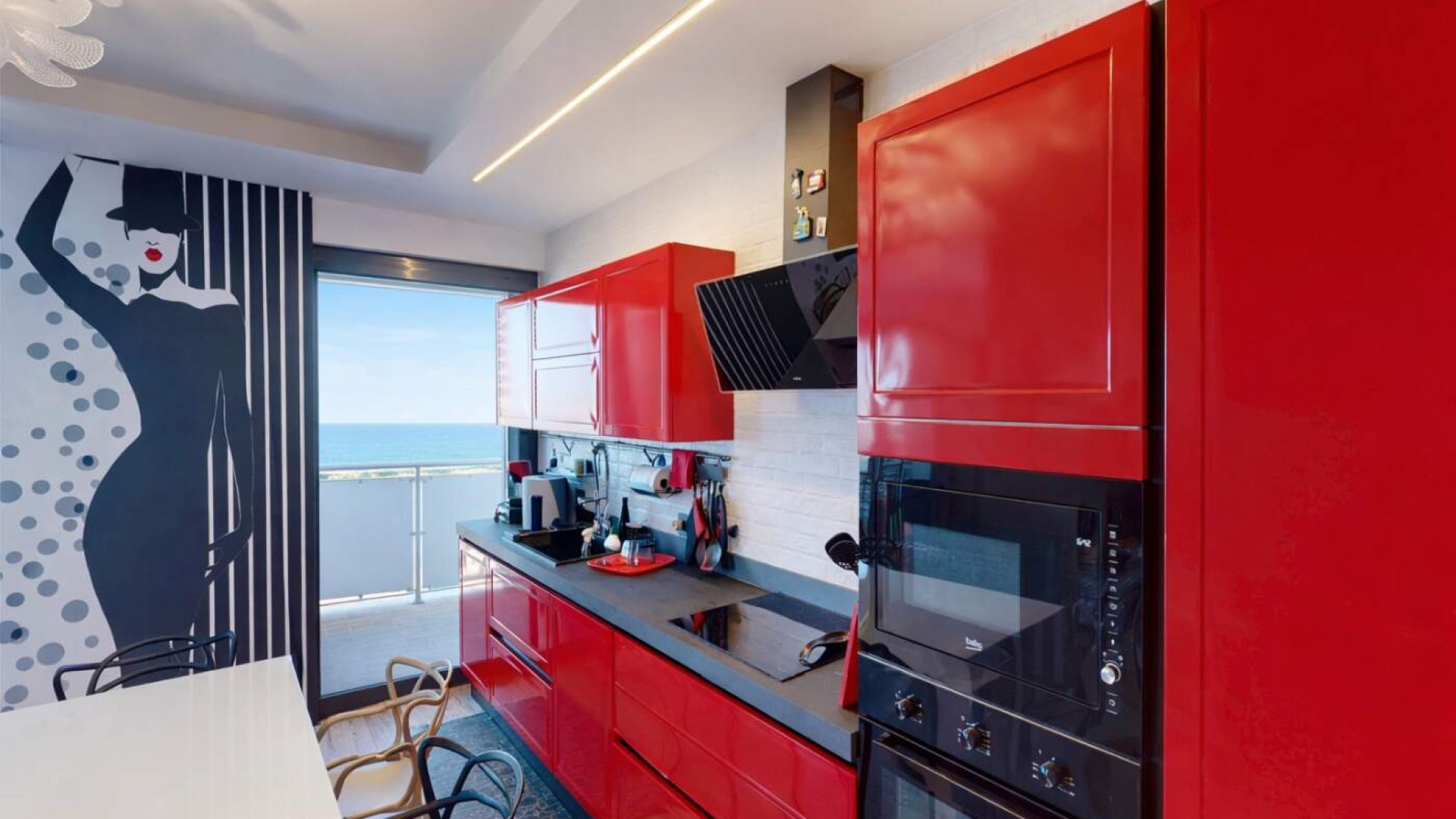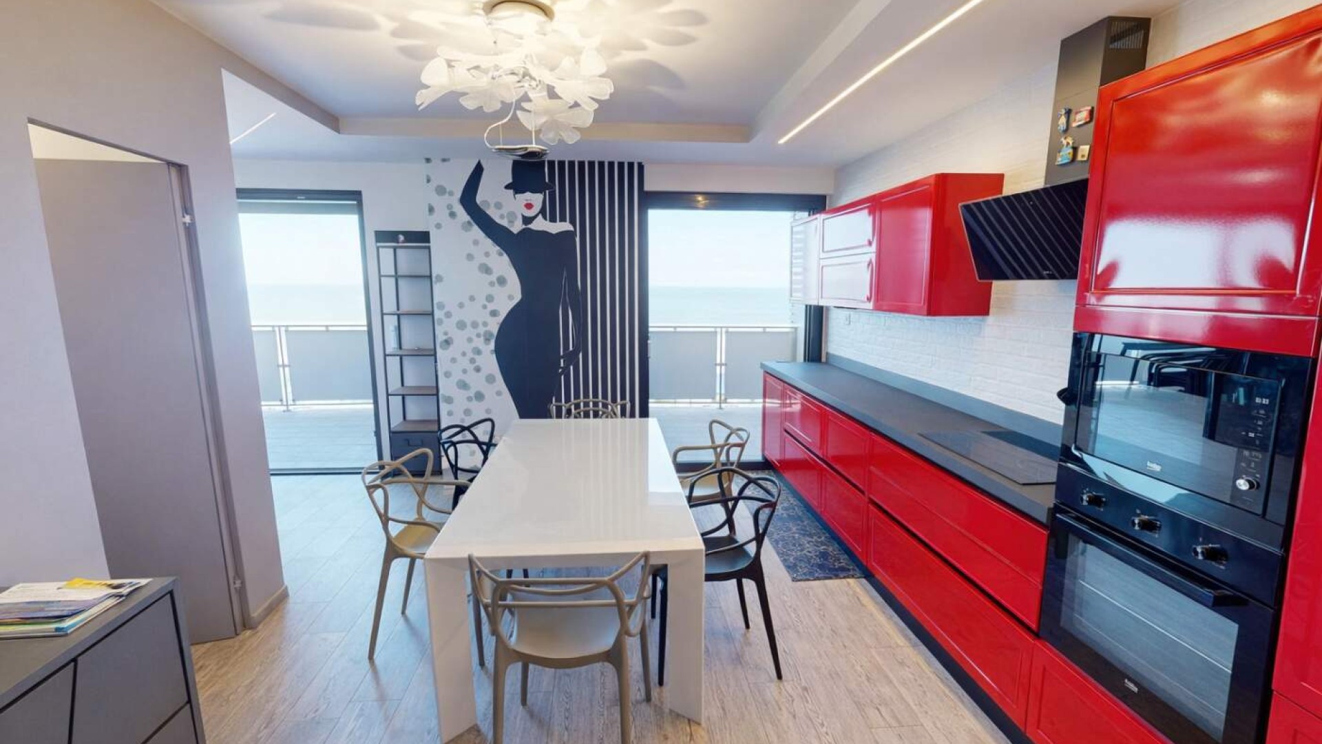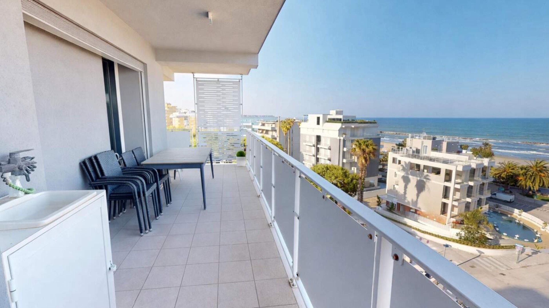 La continuità tra interno ed esterno è valorizzata dall’accesso diretto a uno splendido terrazzo perimetrale di circa 40 mq, autentico punto di forza della proprietà: Uno spazio esclusivo che avvolge l’abitazione e regala una suggestiva vista mare, perfetto per rilassarsi all’aria aperta, organizzare cene estive o semplicemente godersi la luce e la brezza della costa.