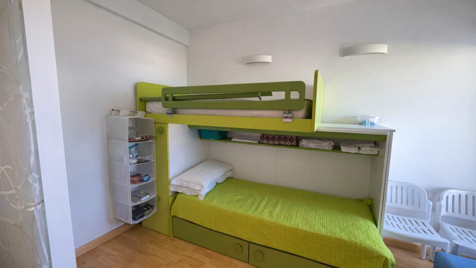 La zona notte è composta da una camera da letto matrimoniale e da una camera singola, entrambe ben proporzionate e luminose; Una di esse gode dell’uscita diretta sul terrazzo, regalando il privilegio di svegliarsi ogni giorno con l’aria del mare.