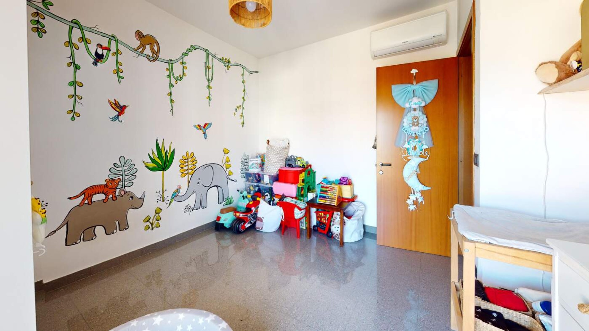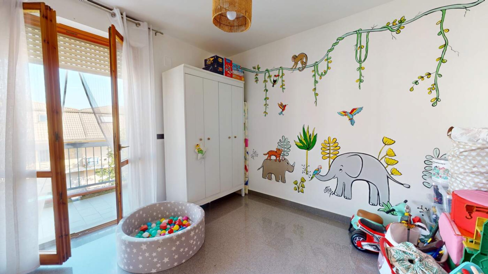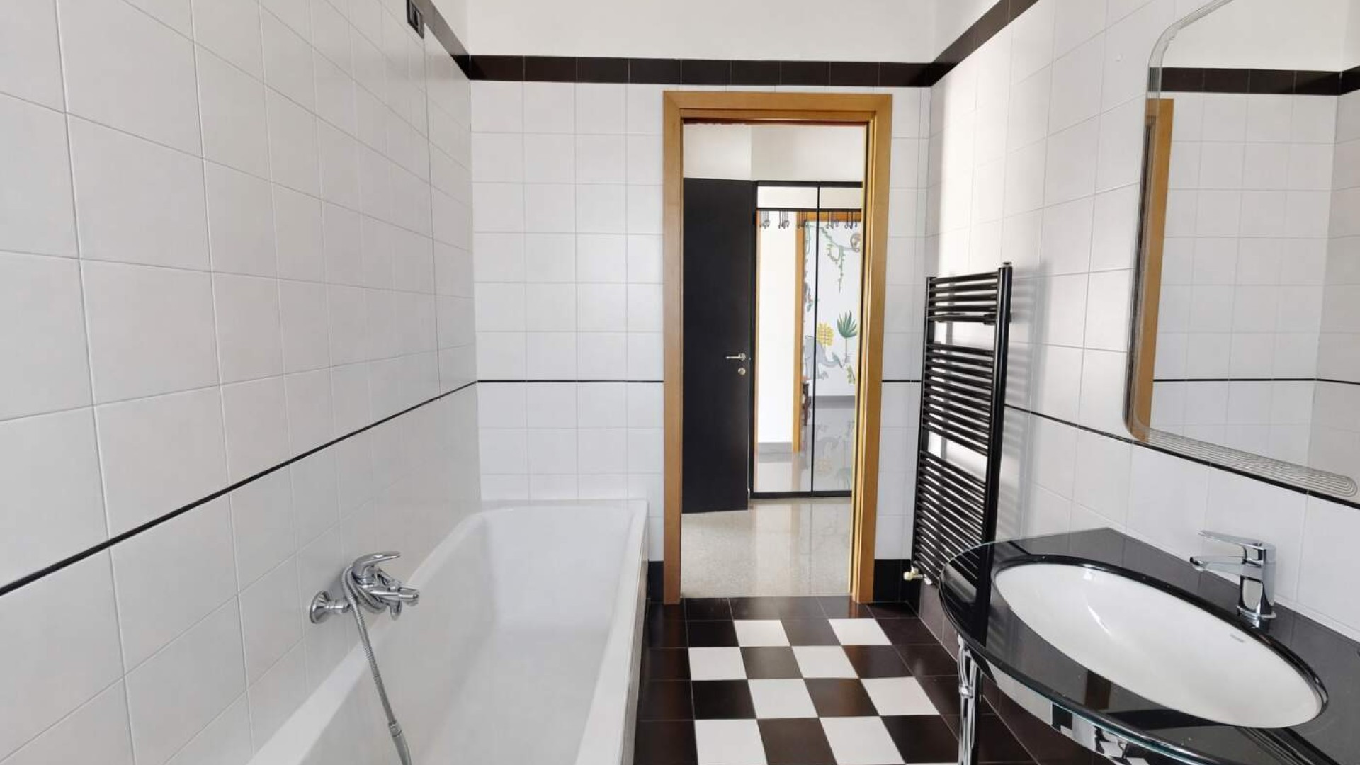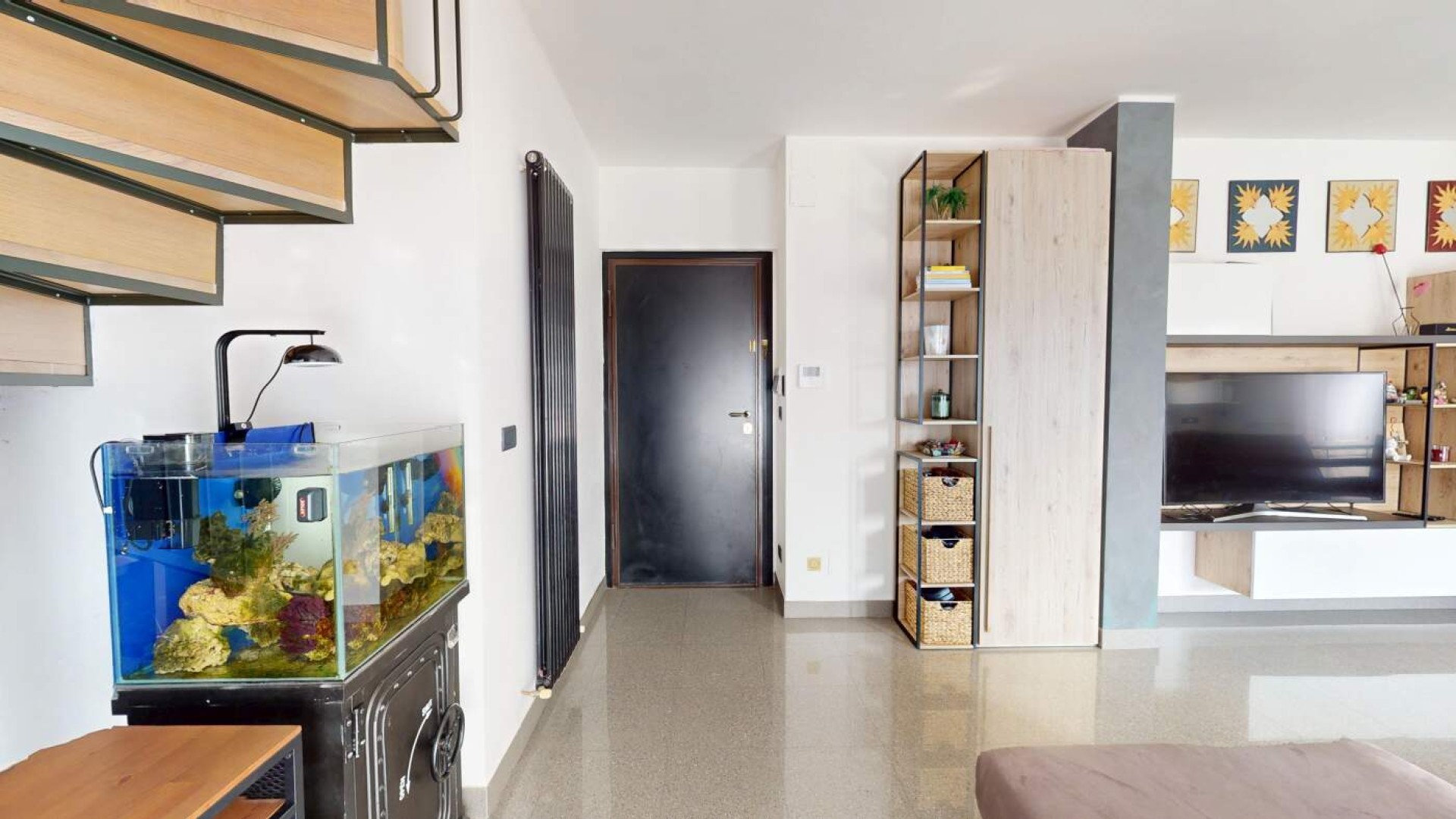 L’ingresso introduce in un ampio soggiorno, accogliente e ben proporzionato, impreziosito da aperture che conducono al balcone e creano una piacevole continuità tra interno ed esterno.