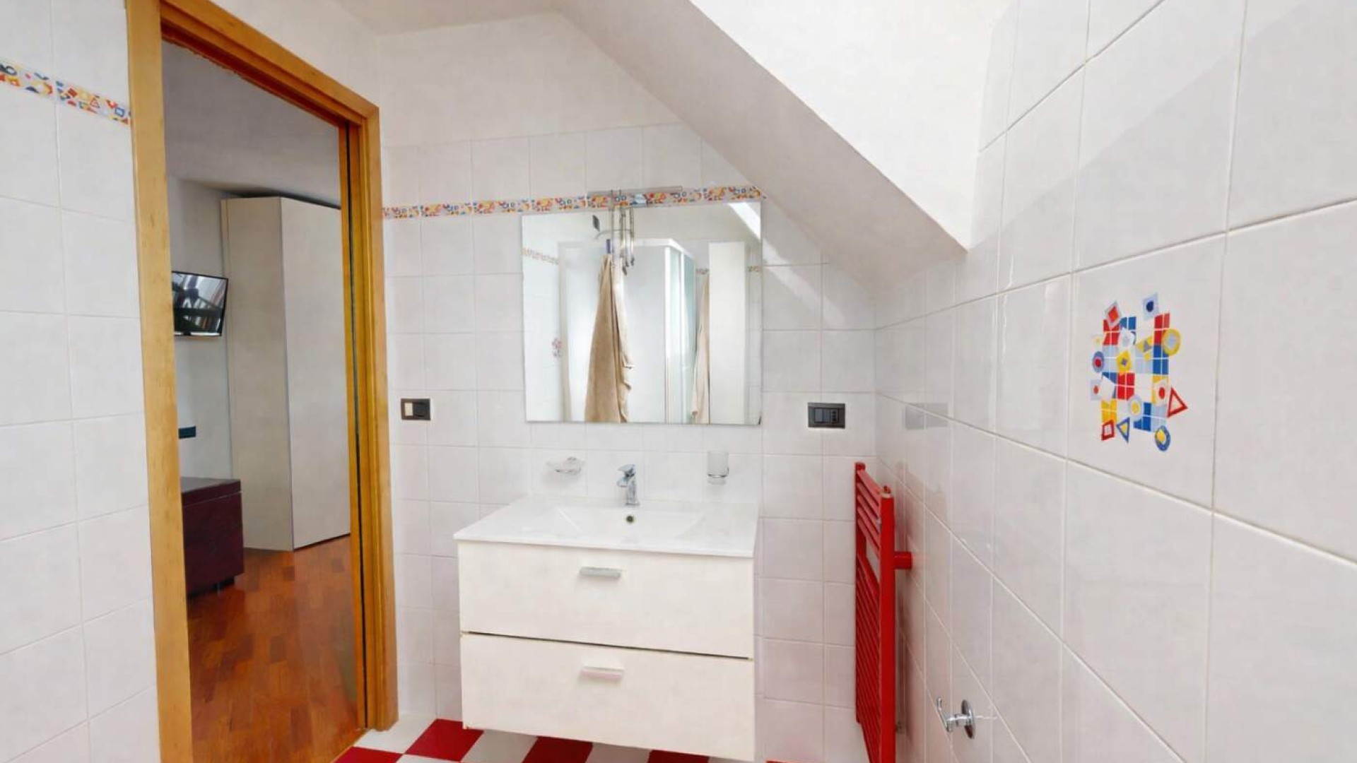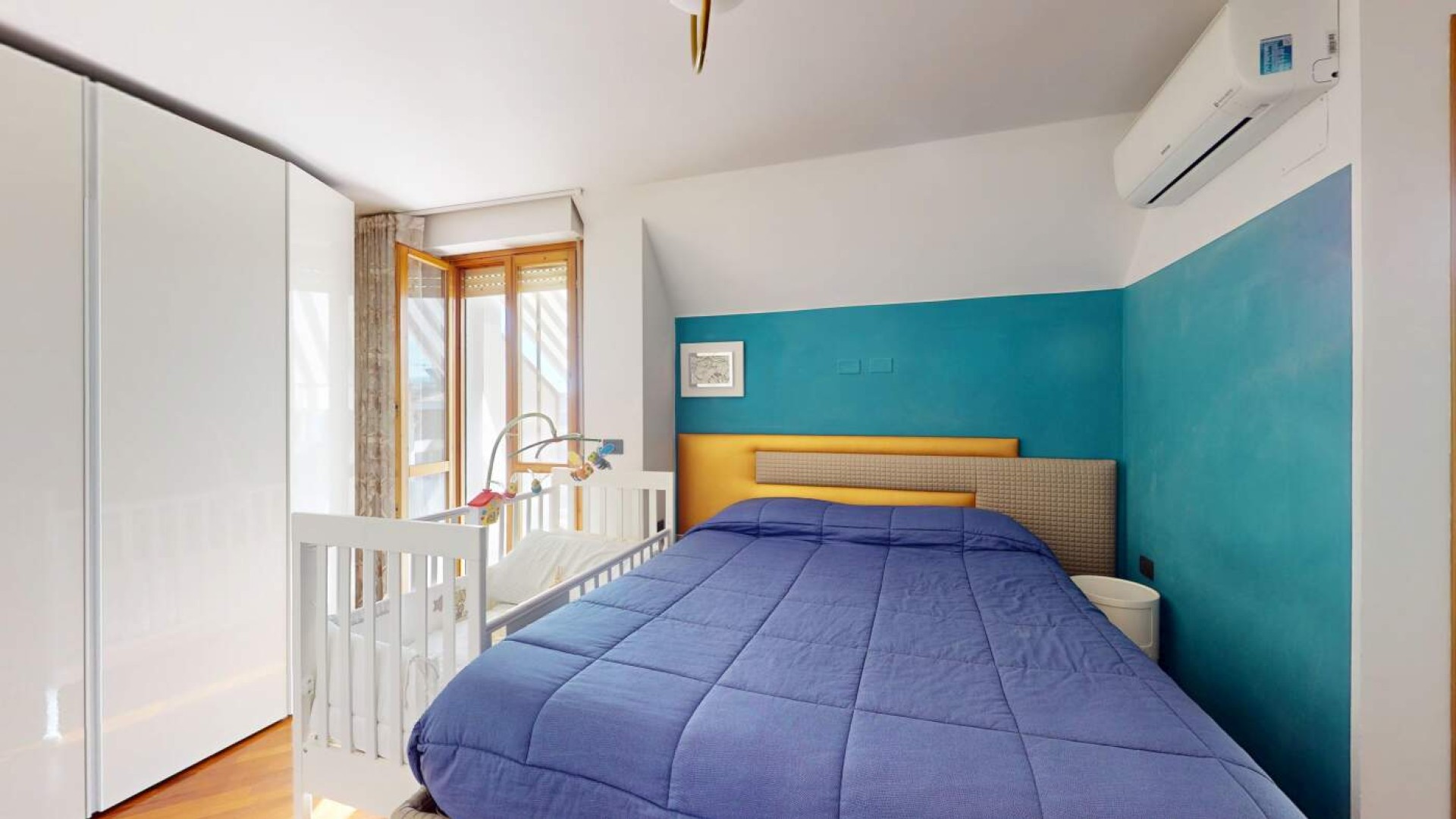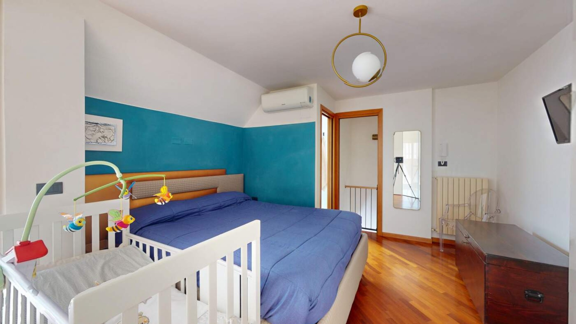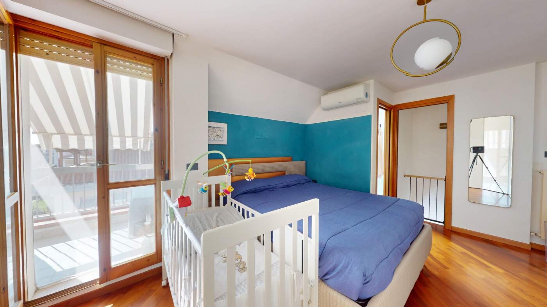 Una scala interna collega al piano superiore, conferendo all’abitazione carattere e versatilità; Qui troviamo una seconda camera matrimoniale con balcone e un bagno finestrato con box doccia, uno spazio ideale come suite riservata, zona ospiti o ambiente indipendente per un membro della famiglia.