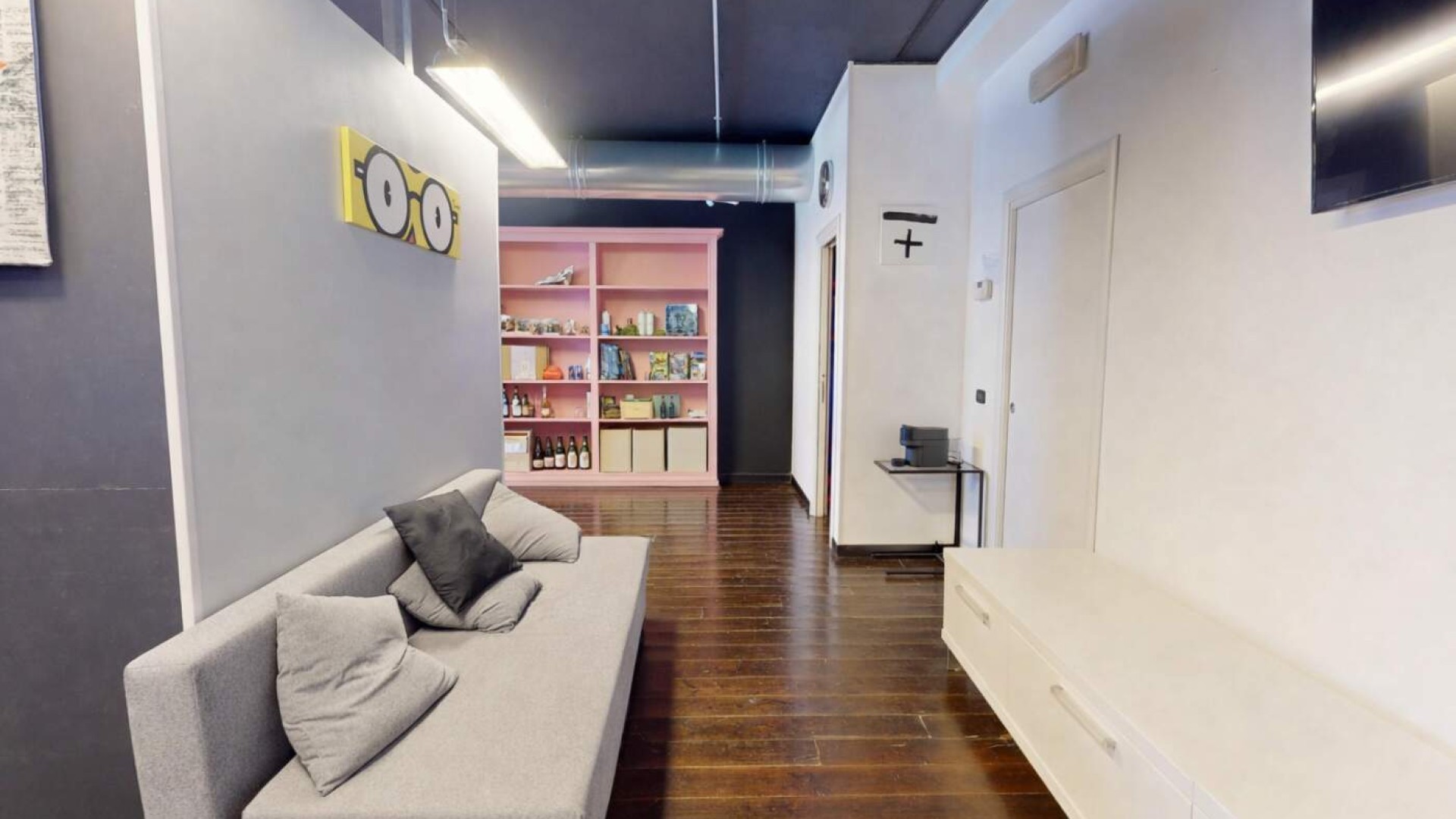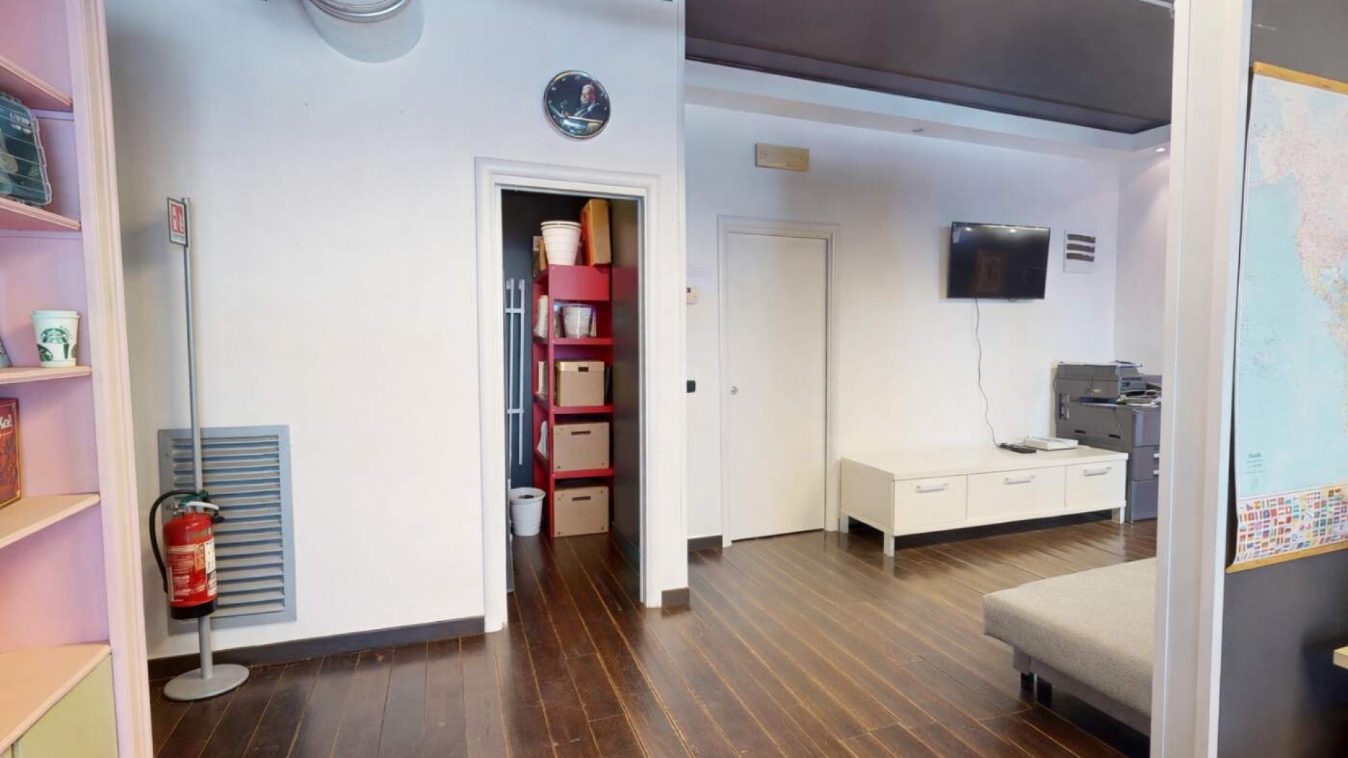 L’ingresso introduce in un ambiente accogliente che si apre su un grande salone, già predisposto per essere organizzato in più postazioni operative grazie alla presenza di numerosi punti rete, prese elettriche e telefoniche, rendendolo ideale per studi professionali, uffici direzionali o spazi coworking di rappresentanza.