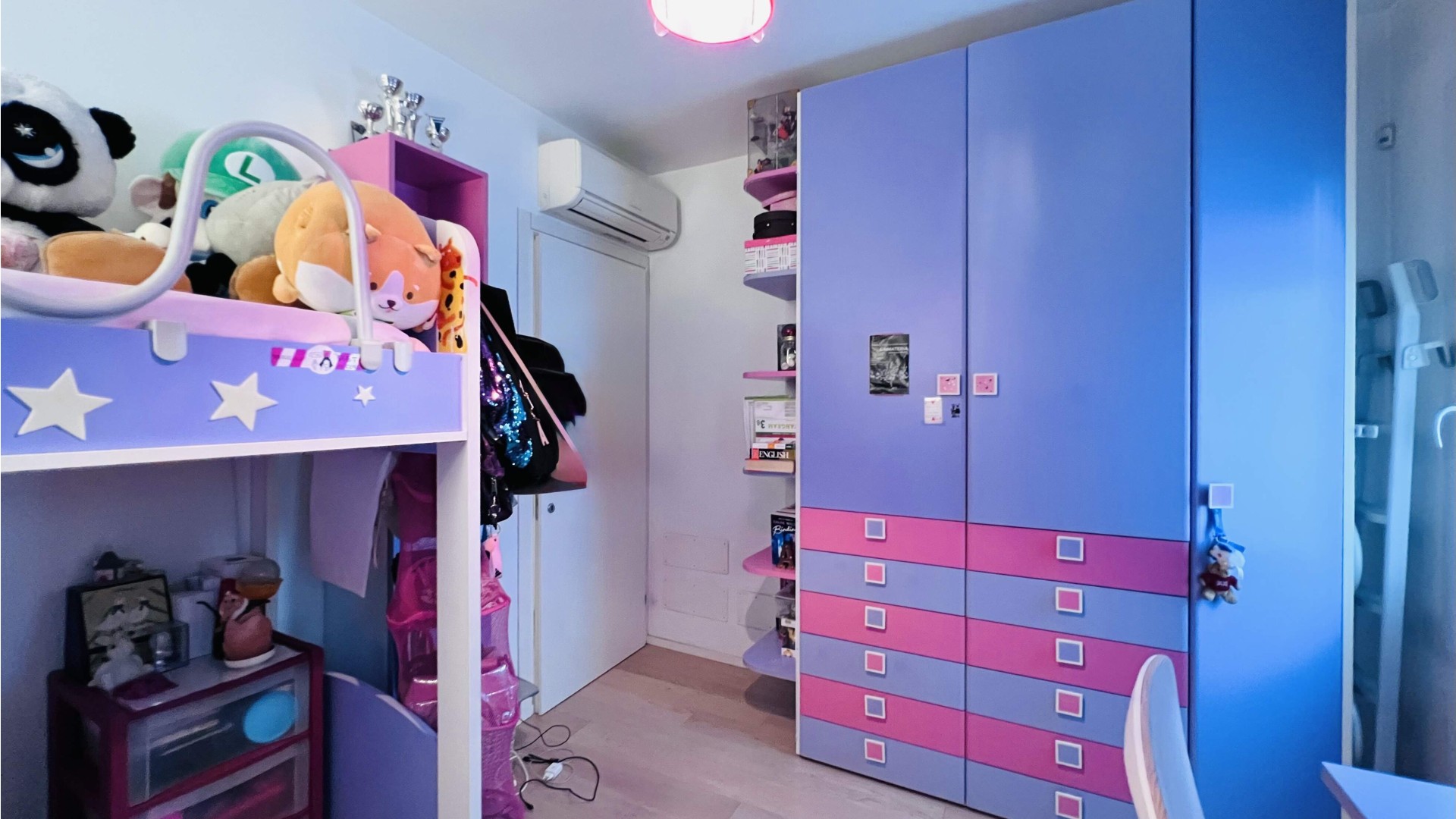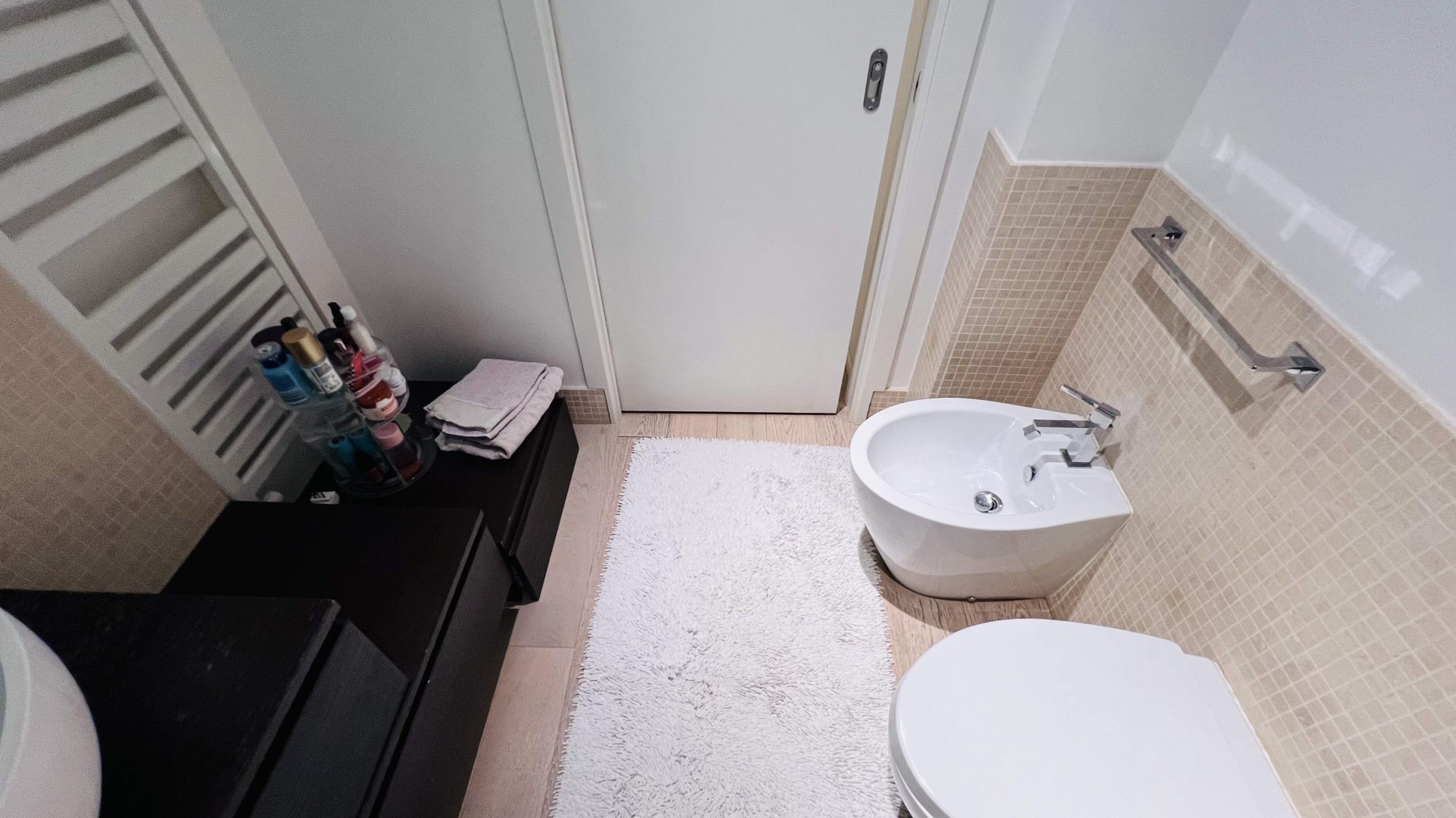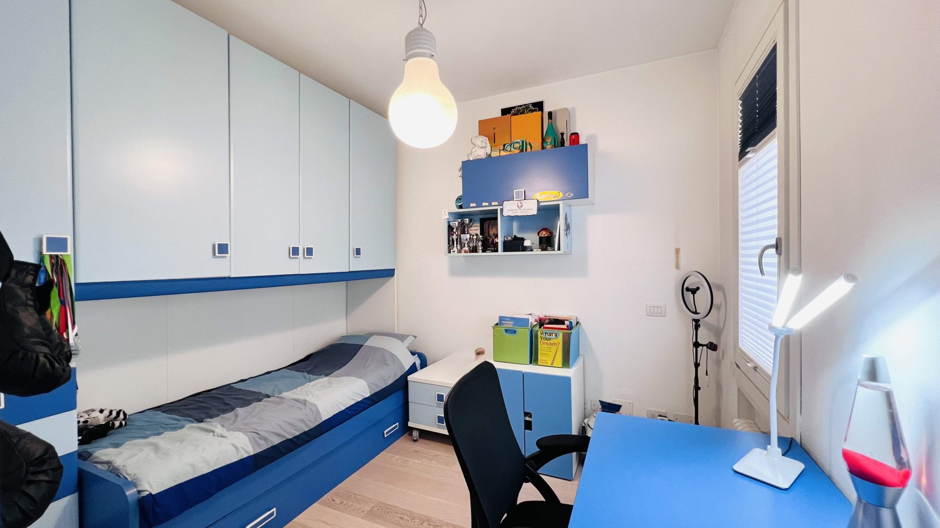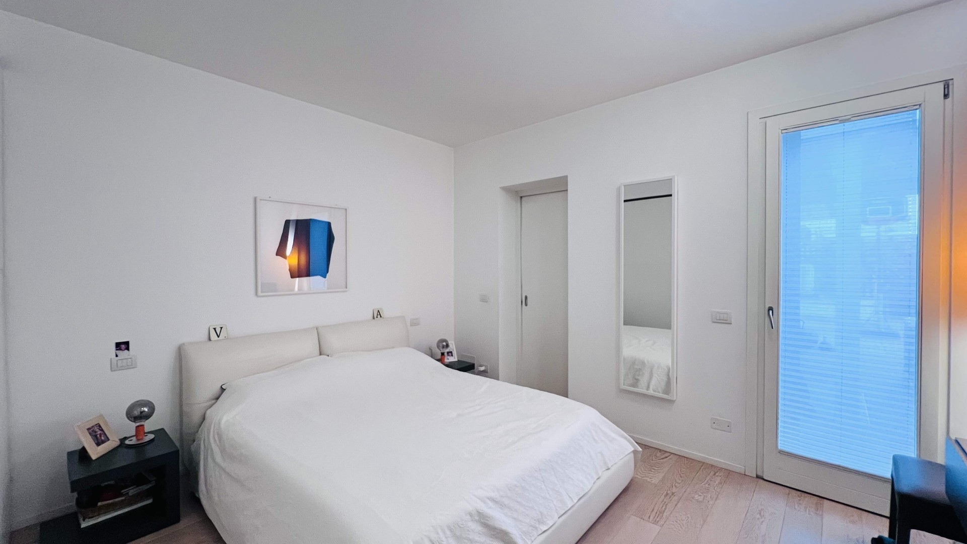 La zona notte presenta tre camere da letto, di cui una matrimoniale con bagno finestrato con box doccia, e due singole.