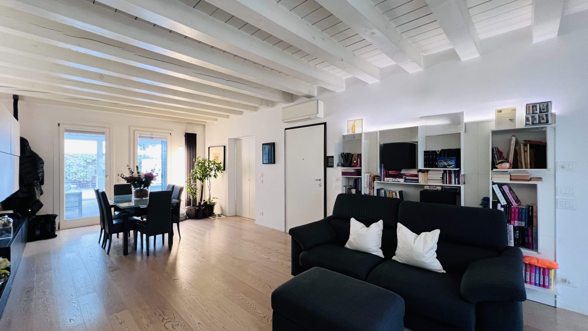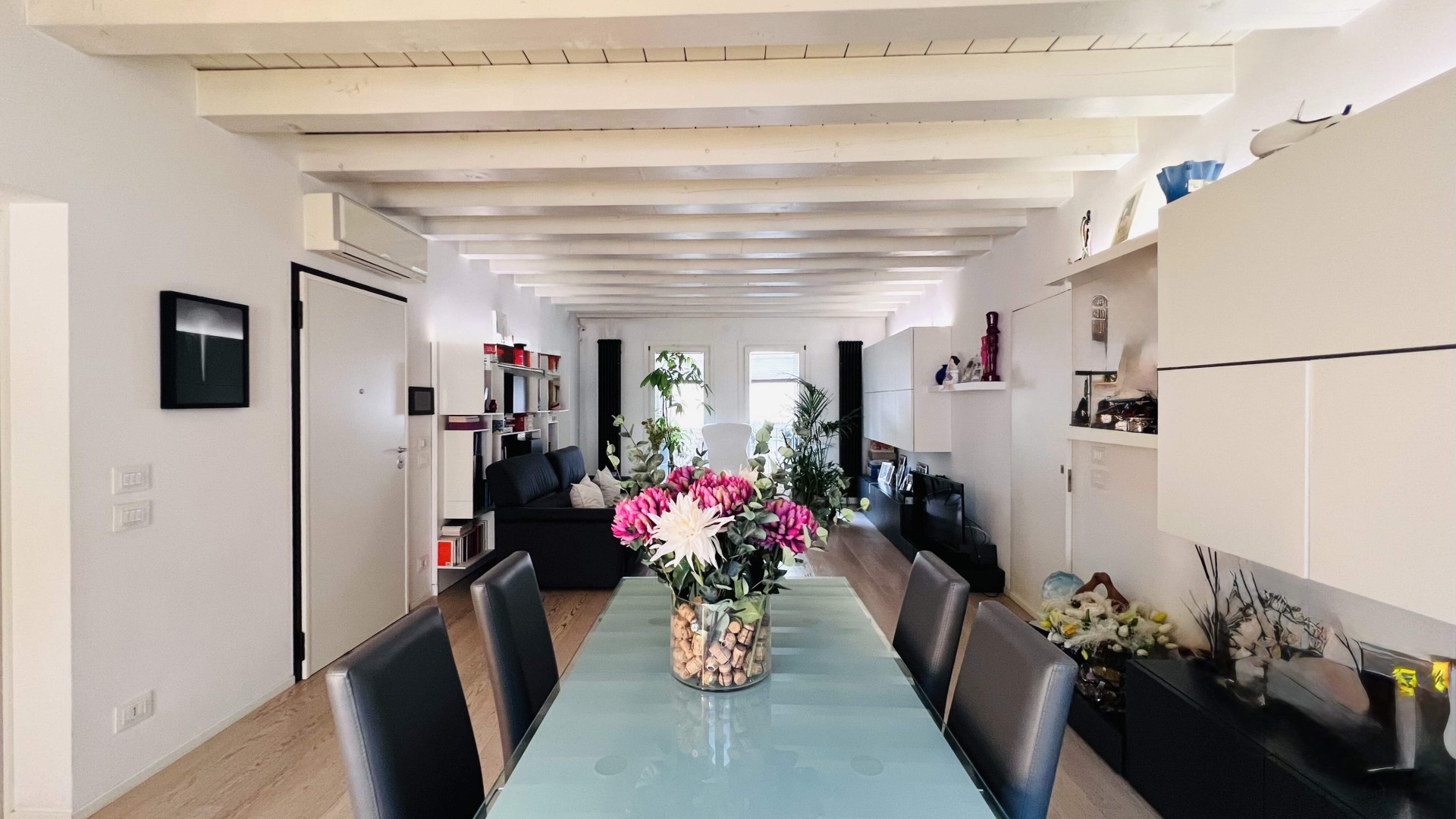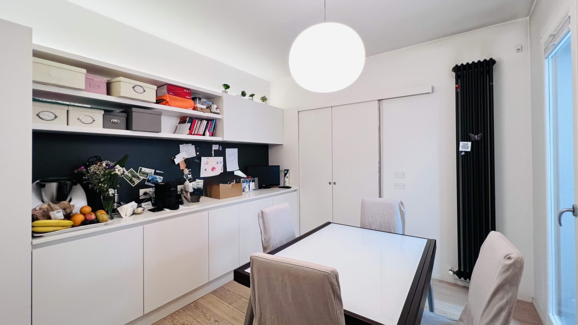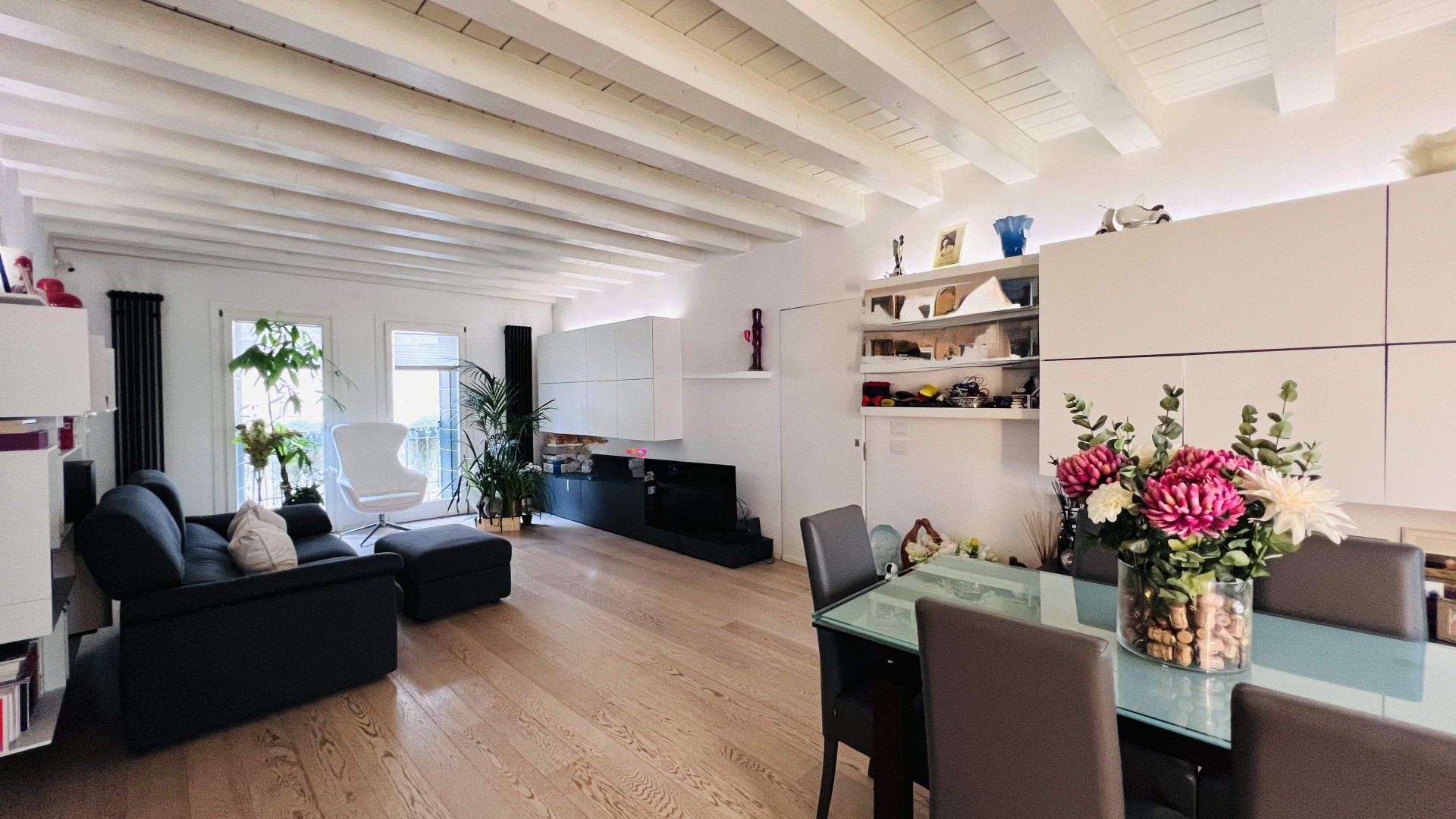 L'immobile, ristrutturato nel 2020, si apre su un ampio soggiorno di ca. 40 mq calpestabili, molto luminoso grazie alle porte finestre che accedono al poggiolo ed al terrazzo.