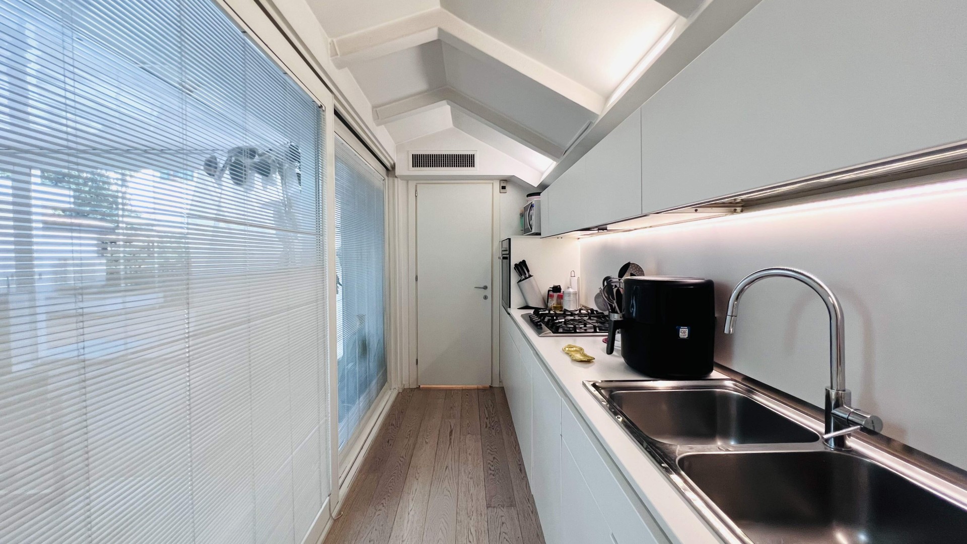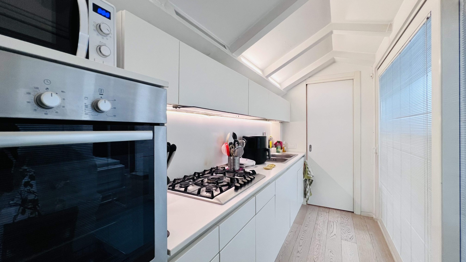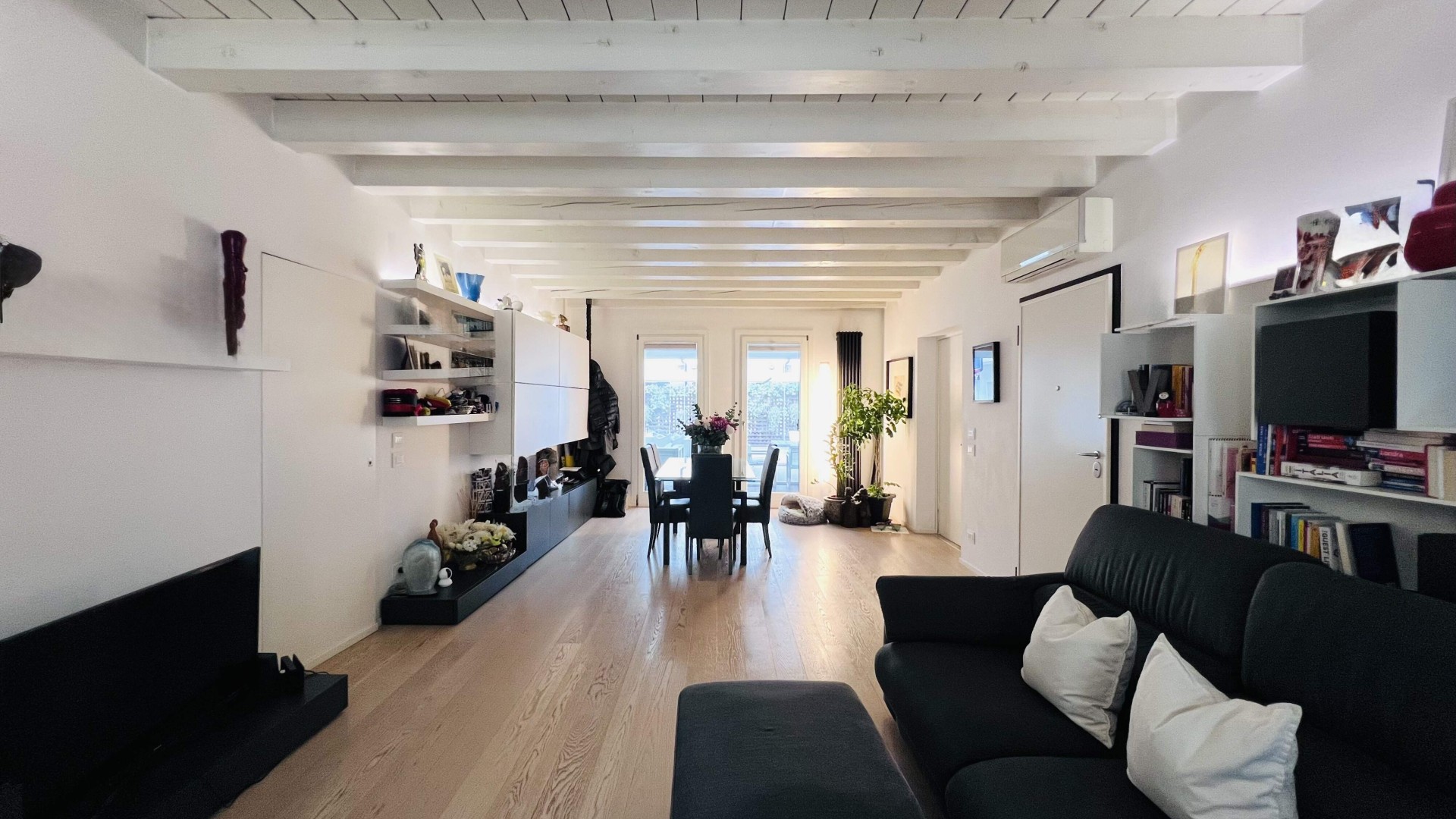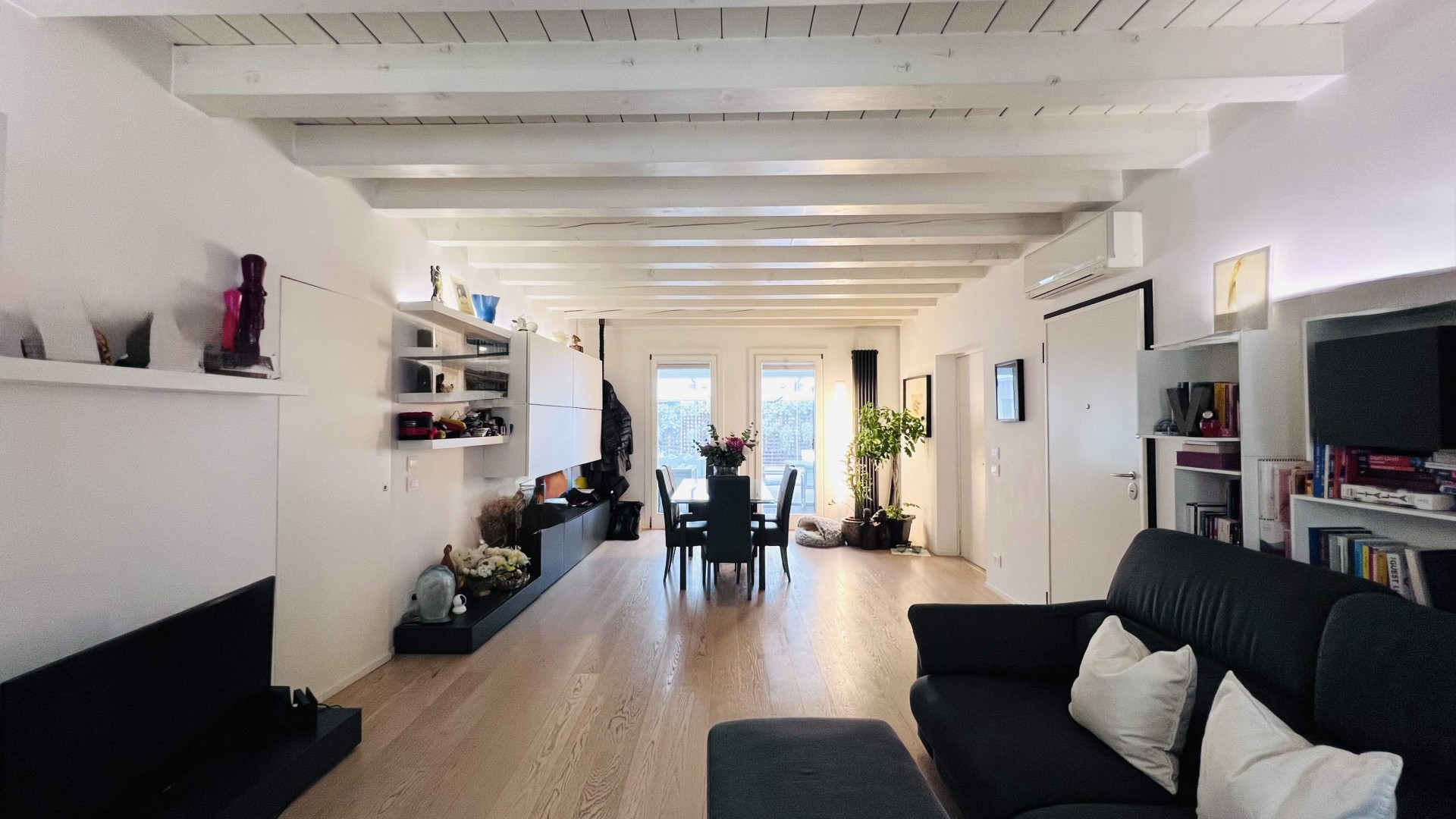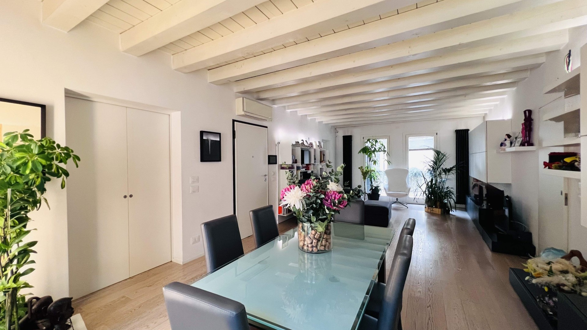 L'immobile, ristrutturato nel 2020, si apre su un ampio soggiorno di ca. 40 mq calpestabili, molto luminoso grazie alle porte finestre che accedono al poggiolo ed al terrazzo.