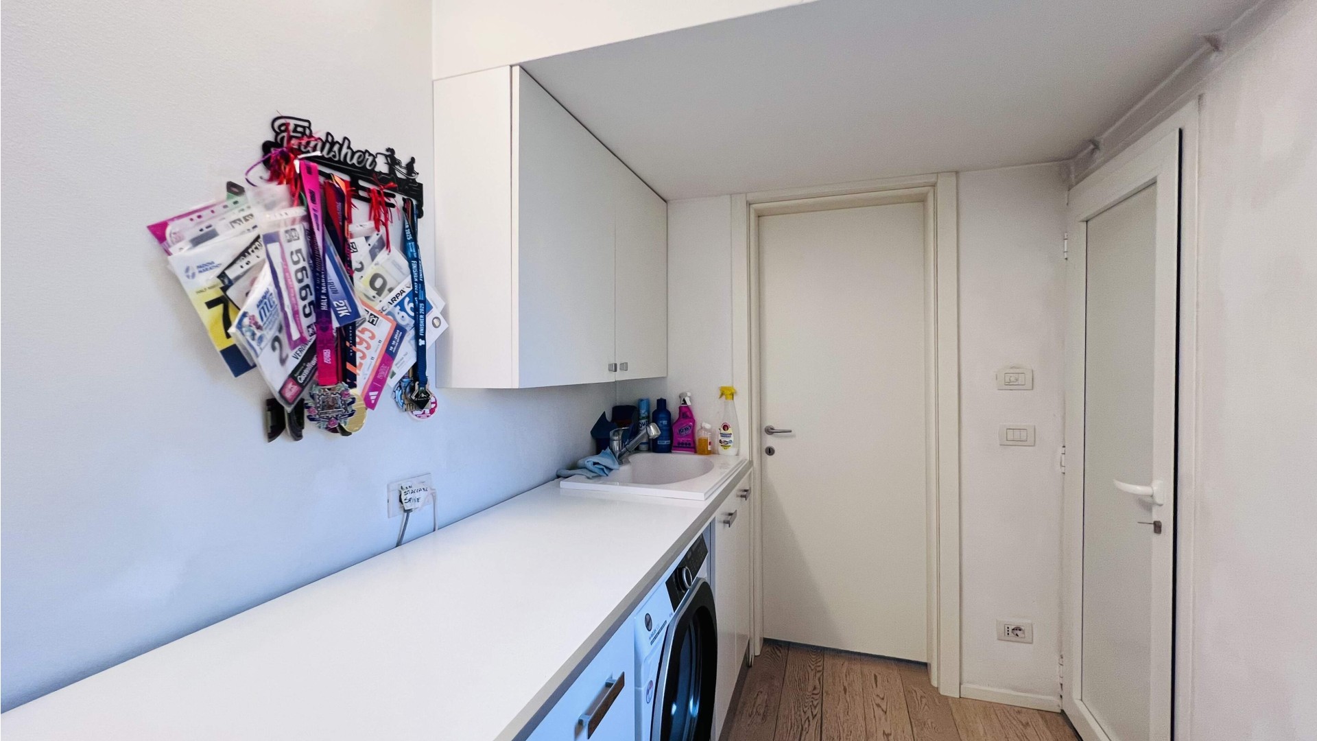 La zona giorno continua poi con la sala da pranzo separata, la cucina, anch'essa separata, ed infine la zona lavanderia.