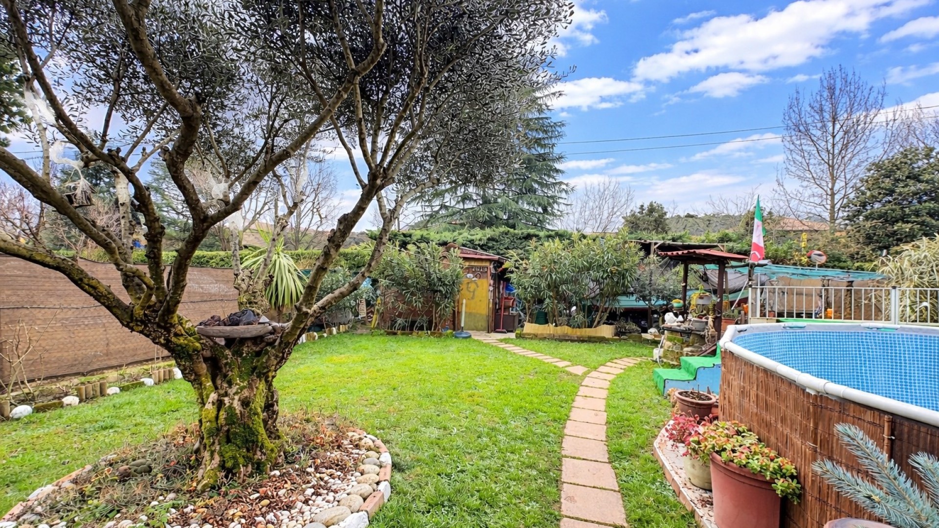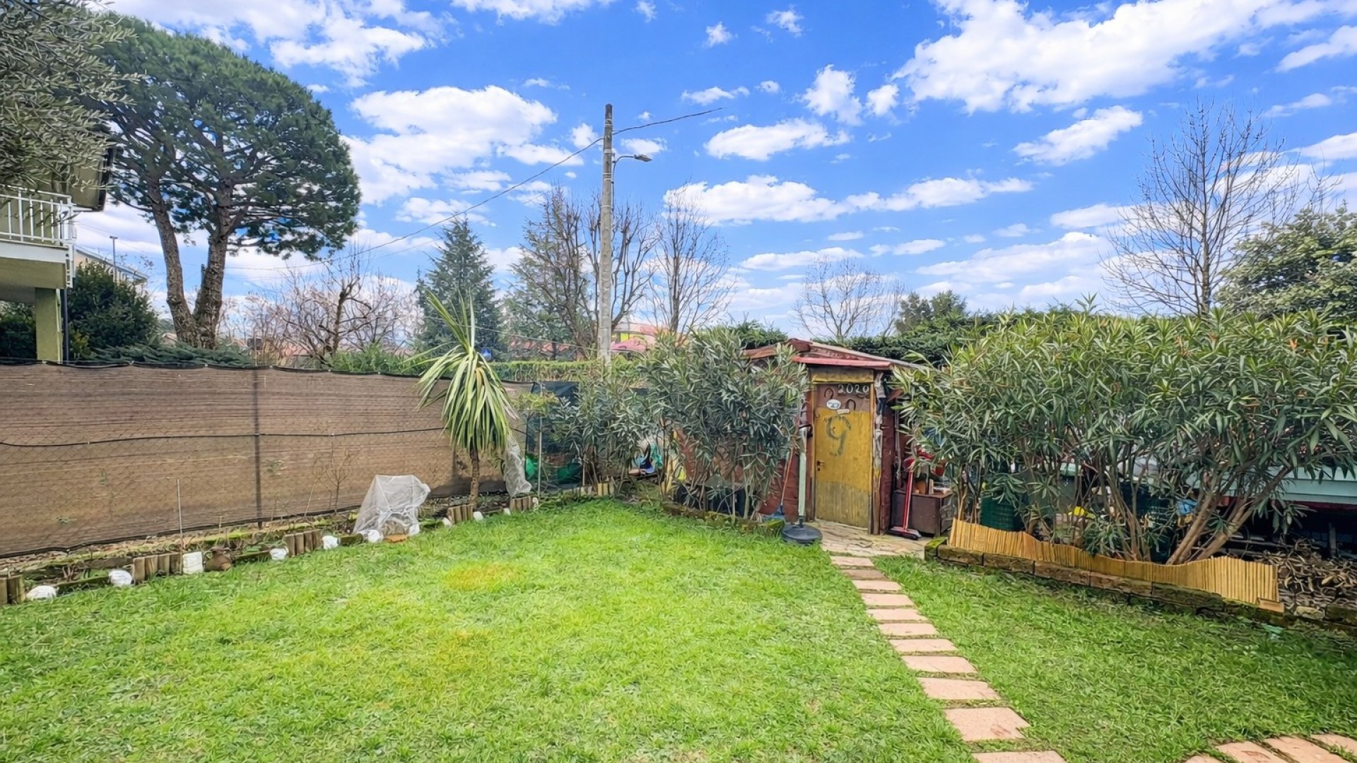 perfetta per godersi la bella stagione in totale privacy e relax e un piccolo capanno degli attrezzi utile per conservare tutti gli attrezzi di lavoro per questo spazio.