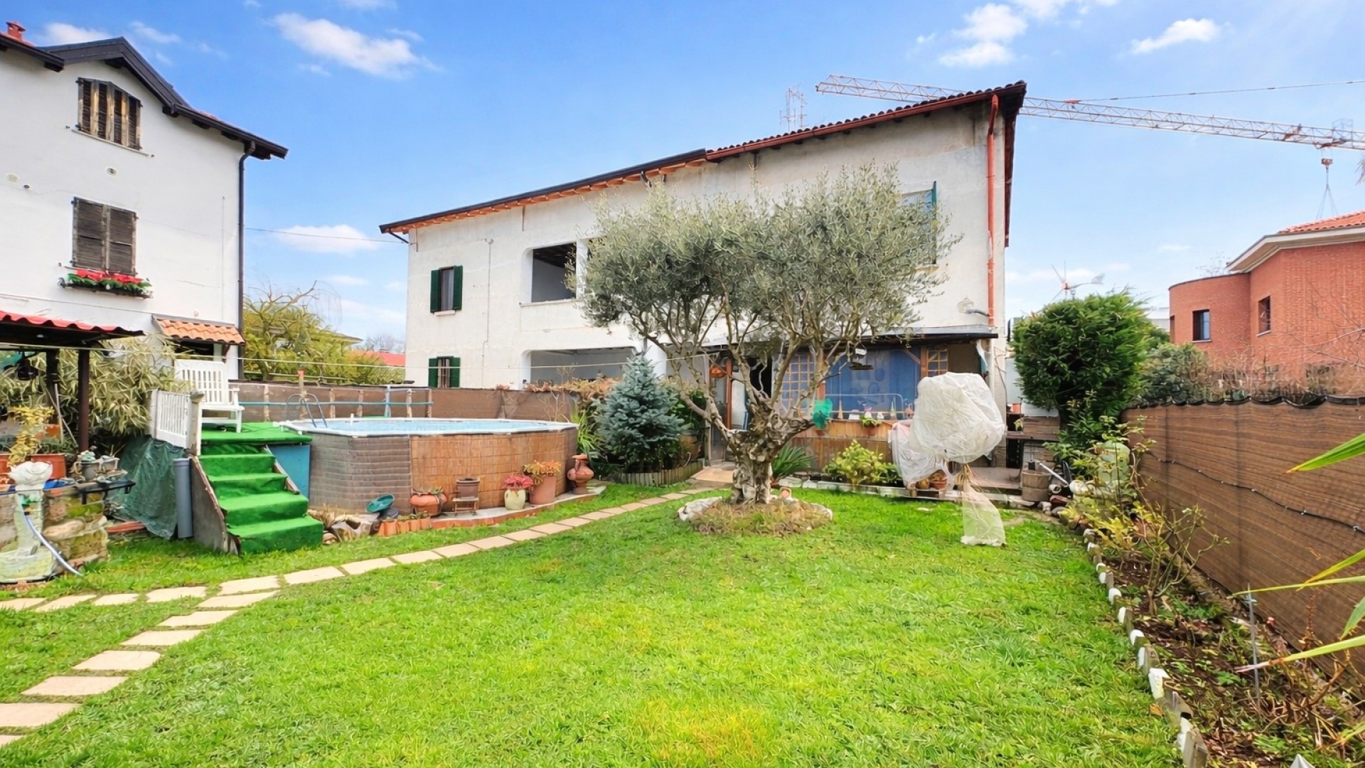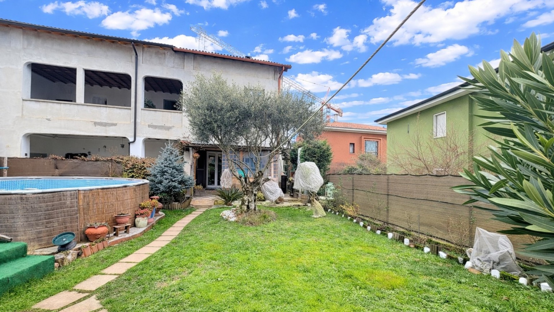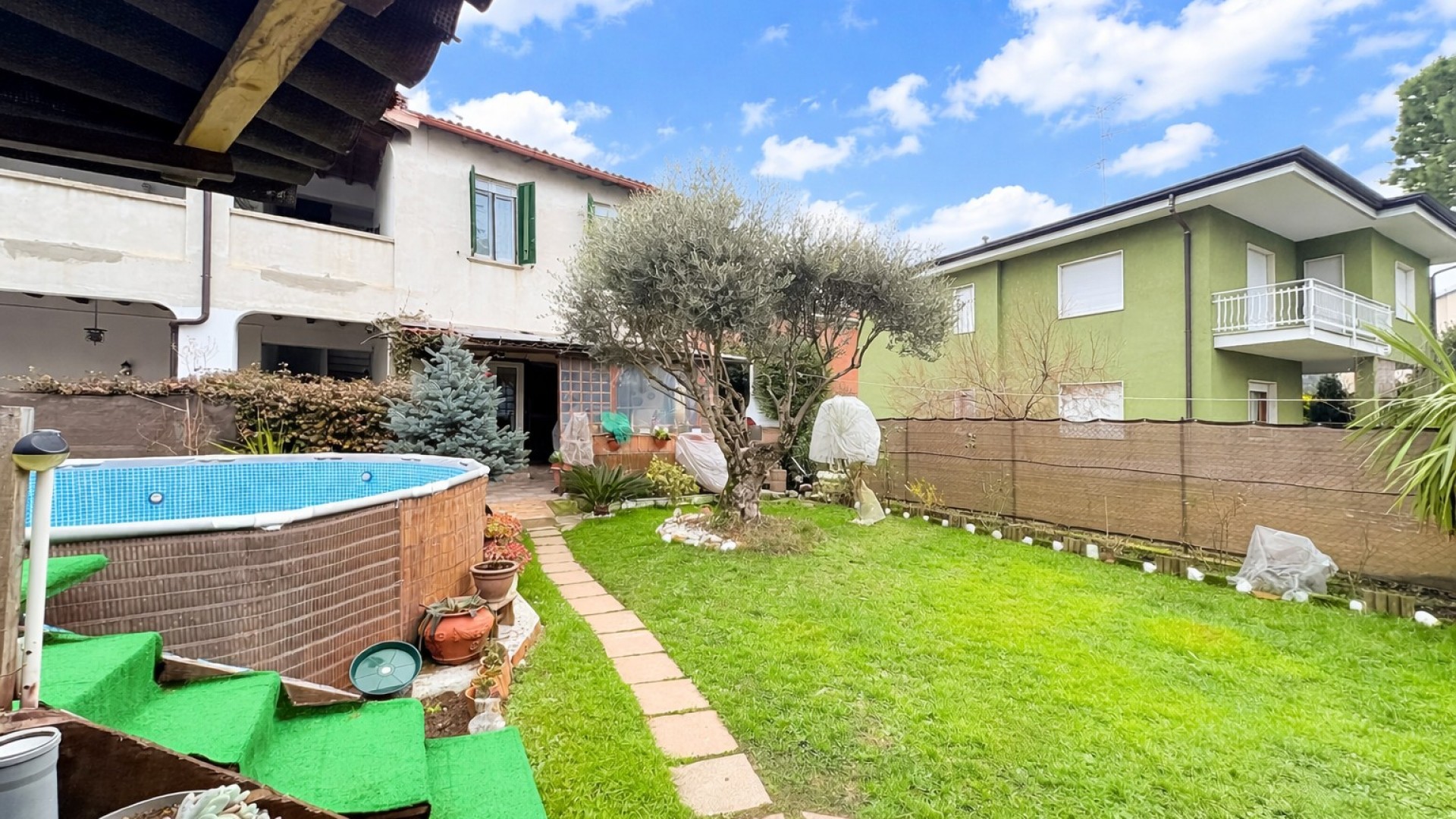 Il vero valore aggiunto della soluzione è il giardino privato, uno spazio verde ben fruibile che ospita anche una piscina,