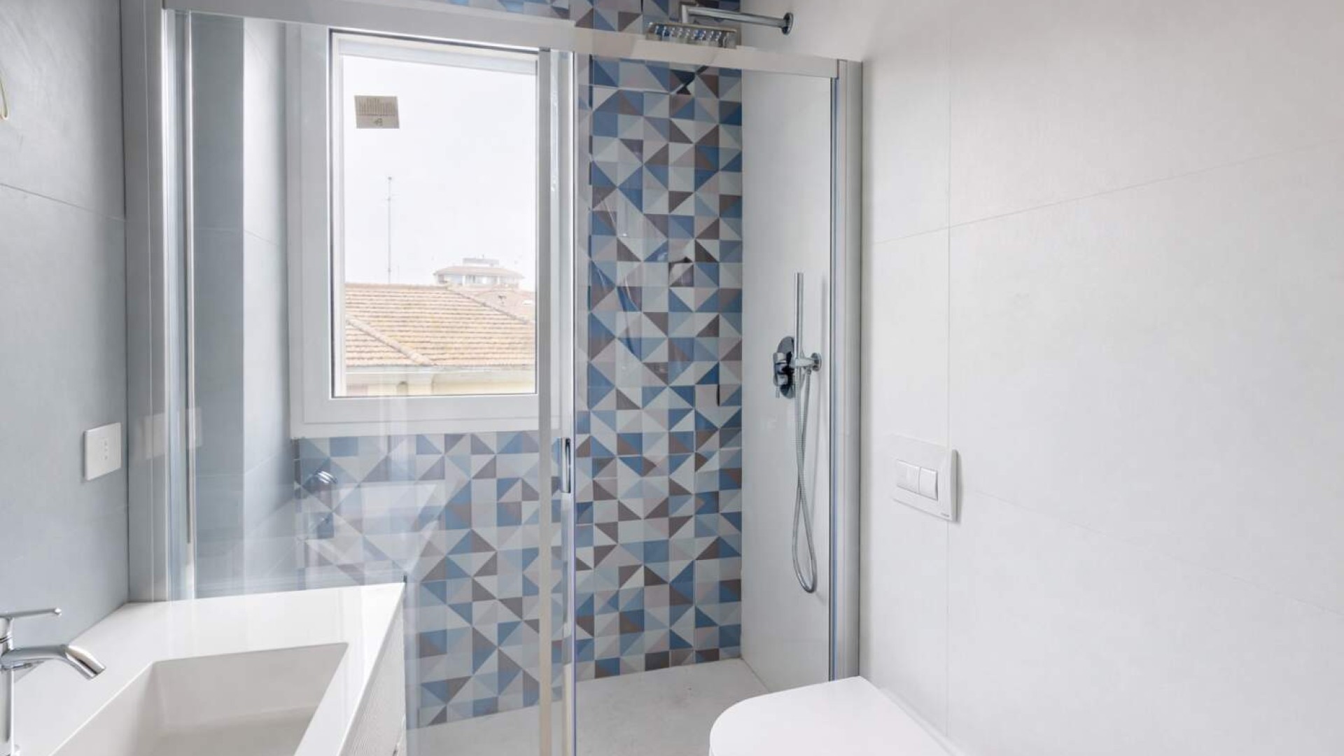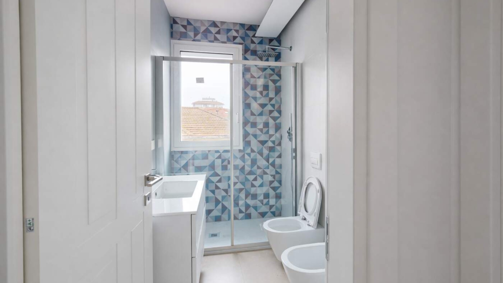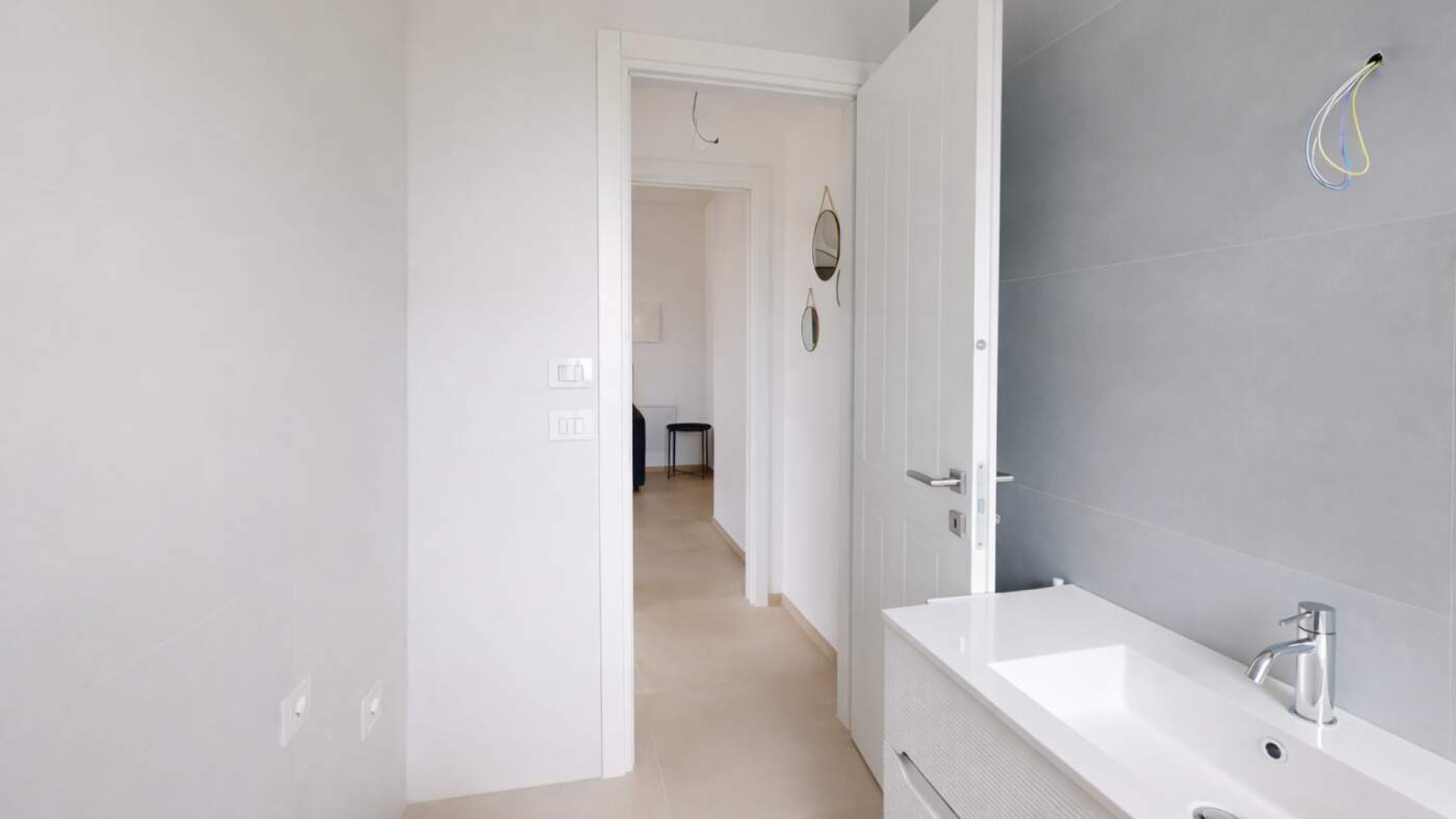 Le finiture moderne e curate, gli infissi in alluminio doppio vetro e con doppia apertura (tradizionale e a vasistas) e la pavimentazione in gres uniforme conferiscono un’immagine contemporanea ed elegante all’intera abitazione.