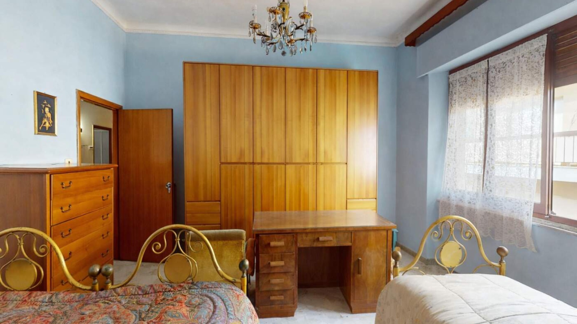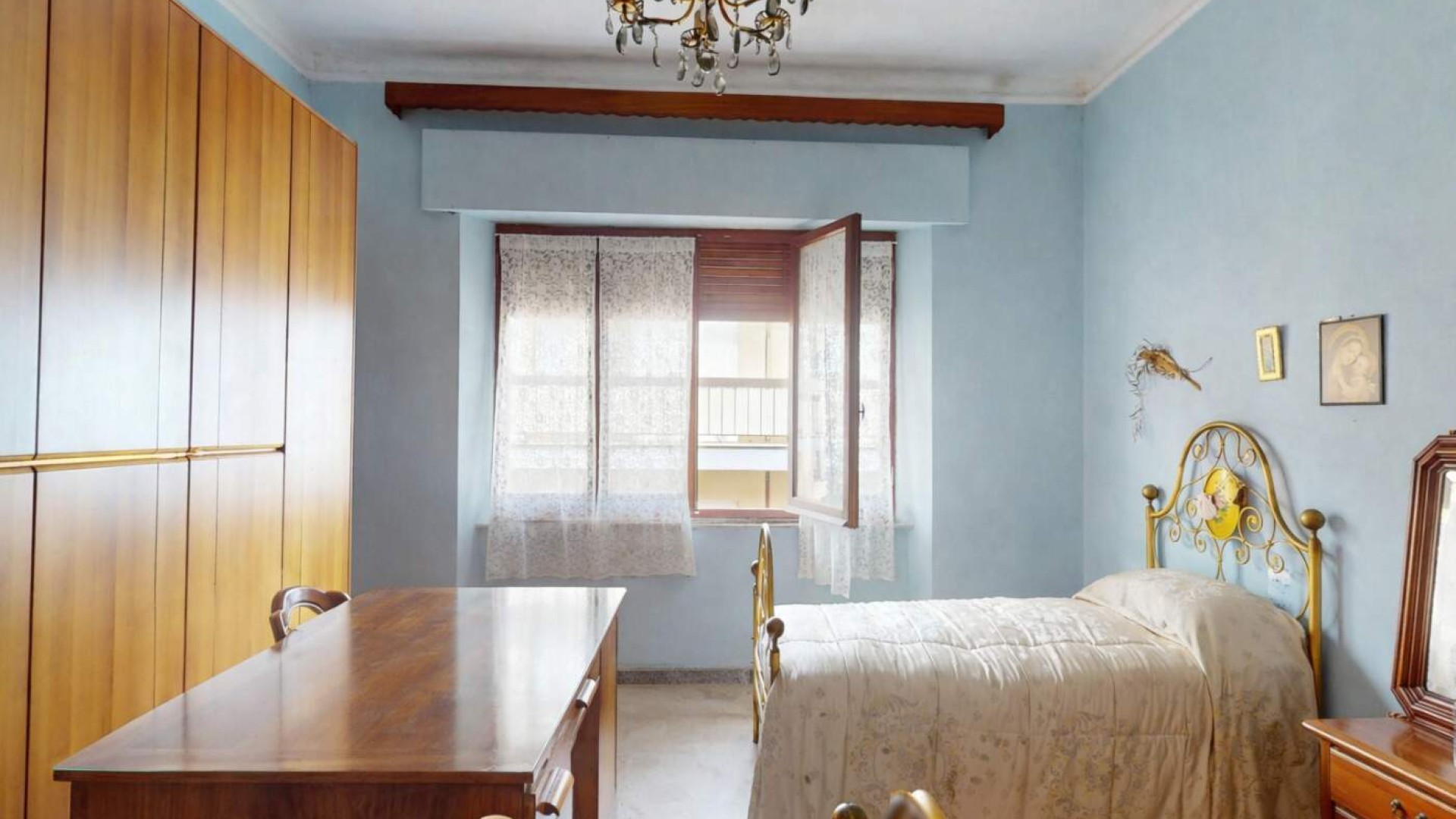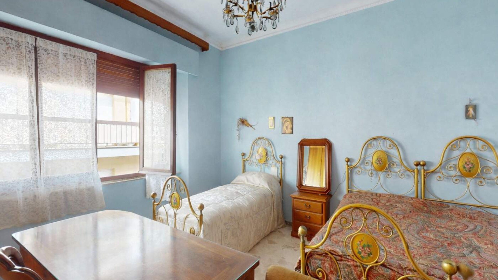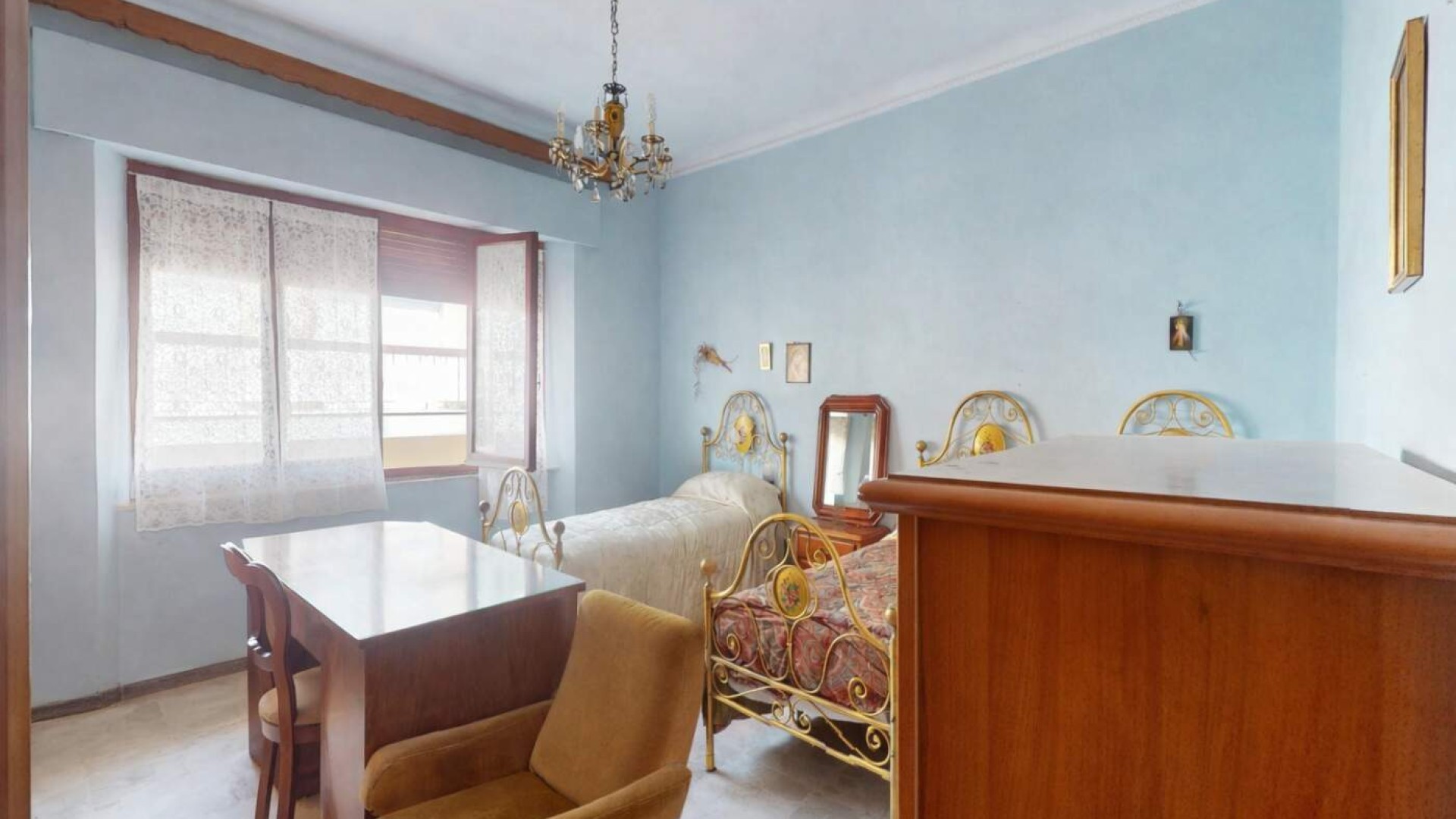 Una di queste gode di un balcone con affaccio su Via XX Settembre, mentre la terza camera, di dimensioni singole, dispone anch’essa di accesso al balcone con affaccio su Via Crispi.