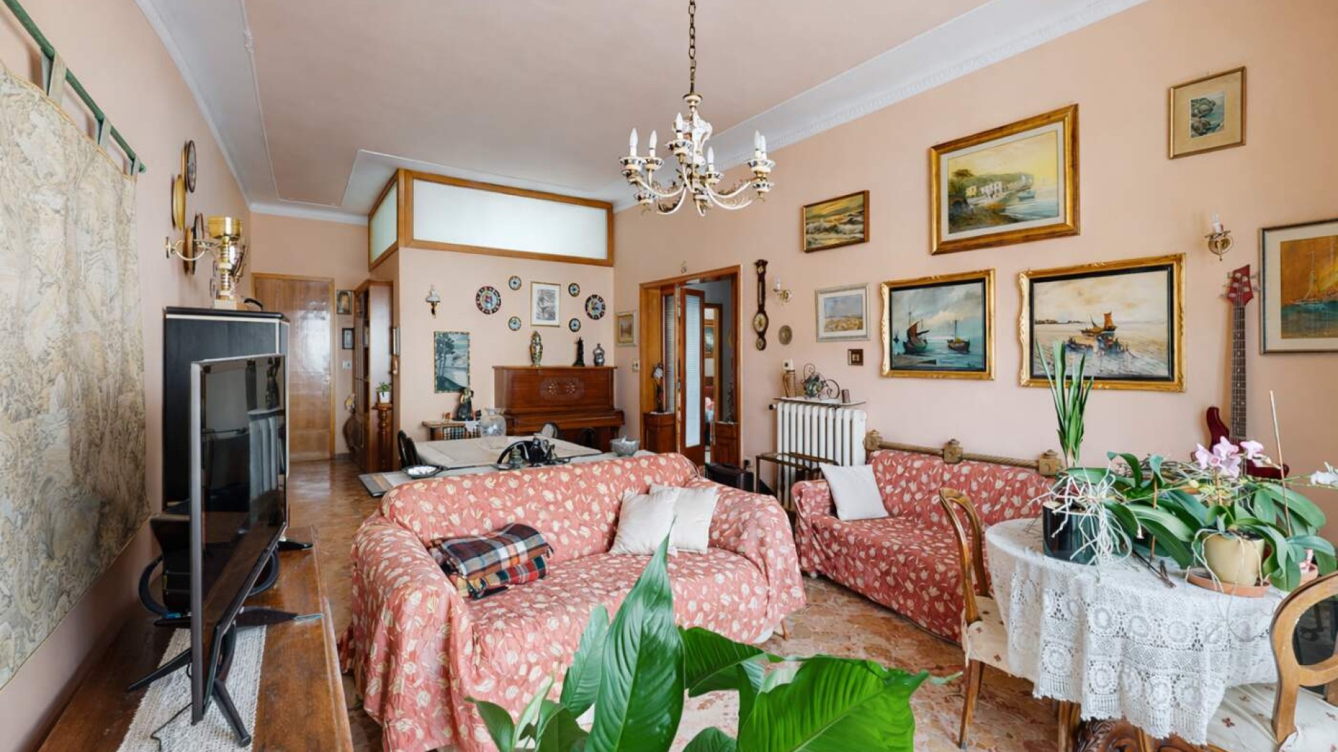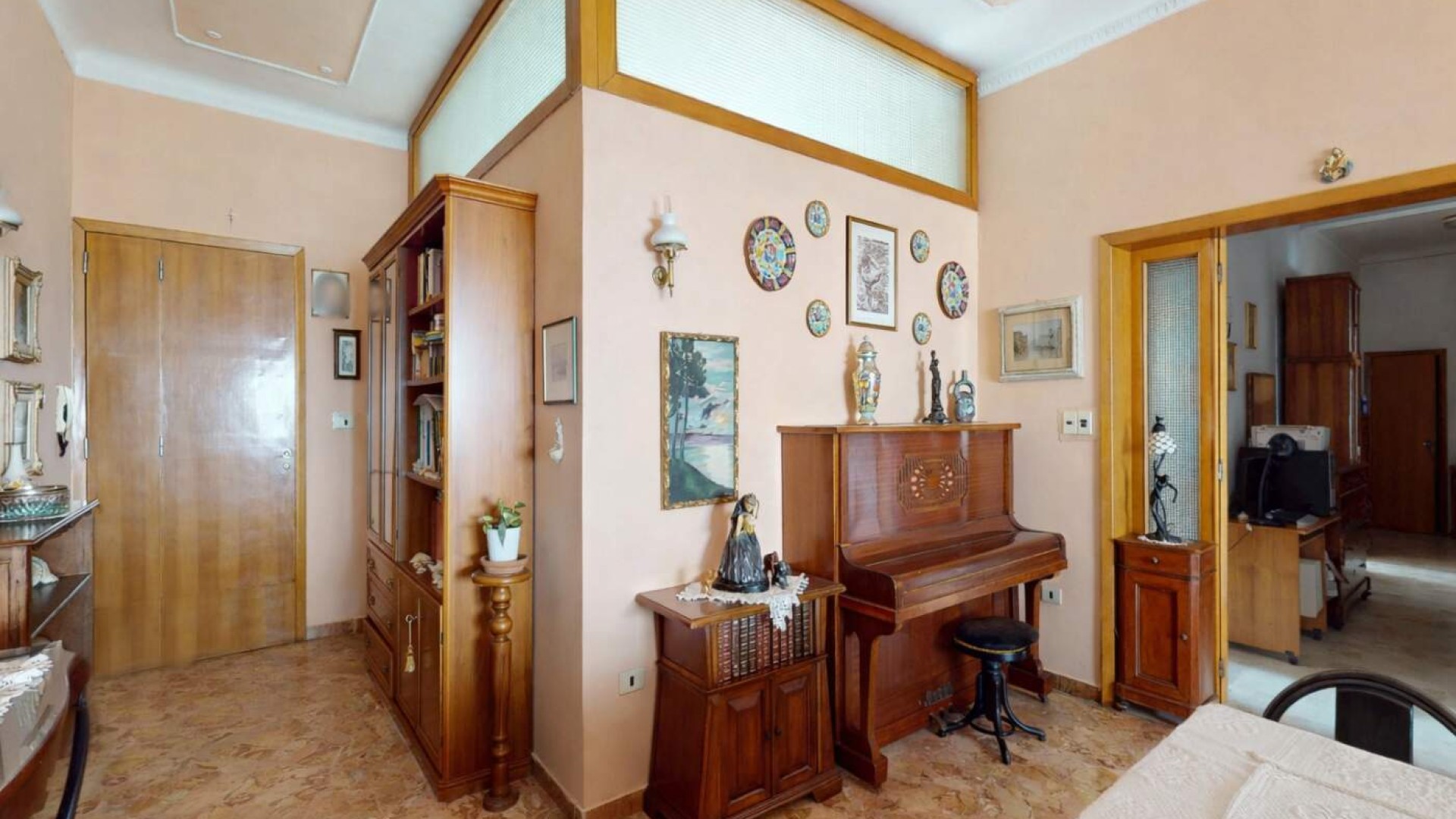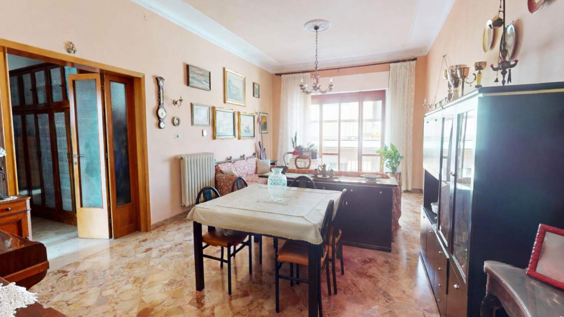 L’immobile presenta riscaldamento autonomo, pavimentazione in marmo e infissi in legno con vetro singolo, caratteristiche tipiche dell’epoca costruttiva che rappresentano una solida base per un intervento di rinnovamento e valorizzazione degli ambienti.