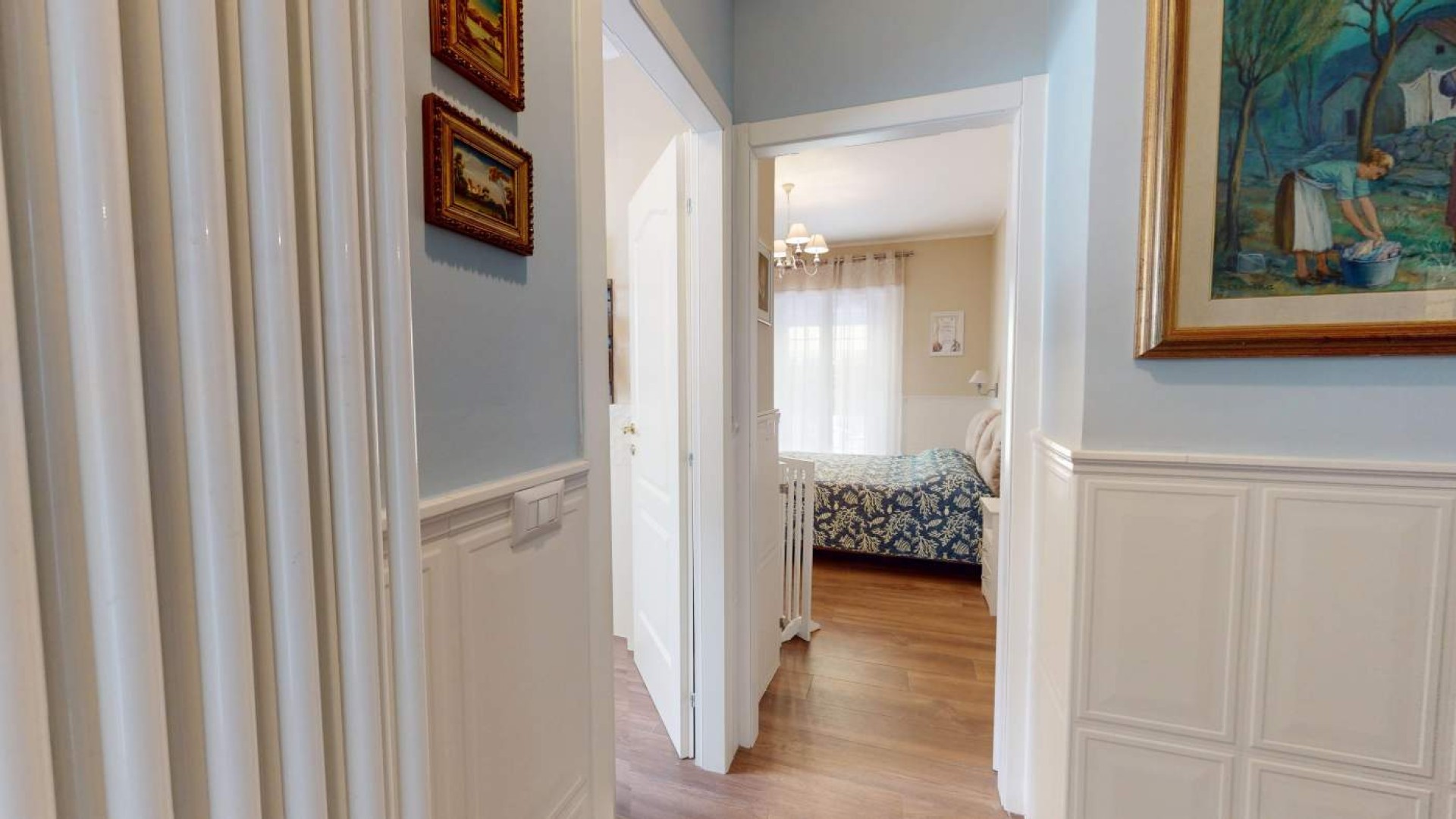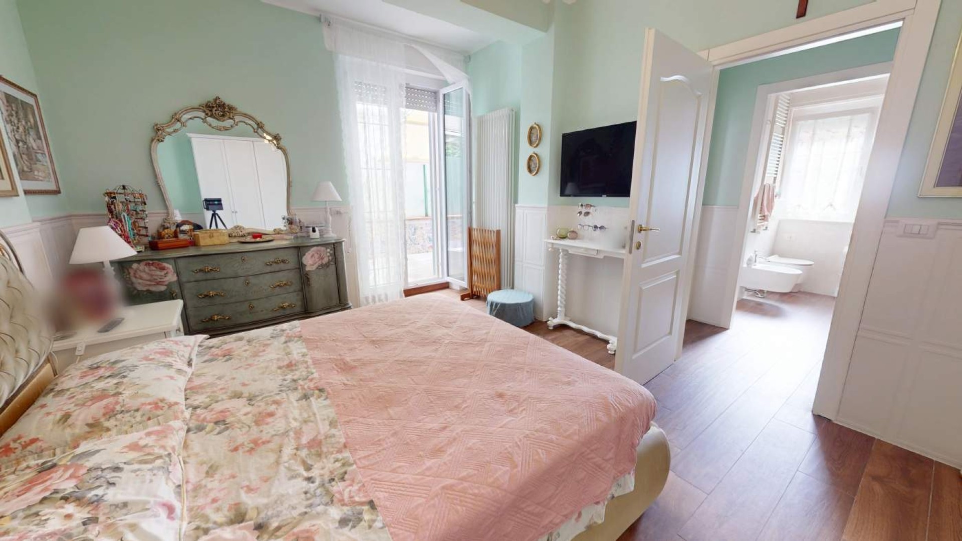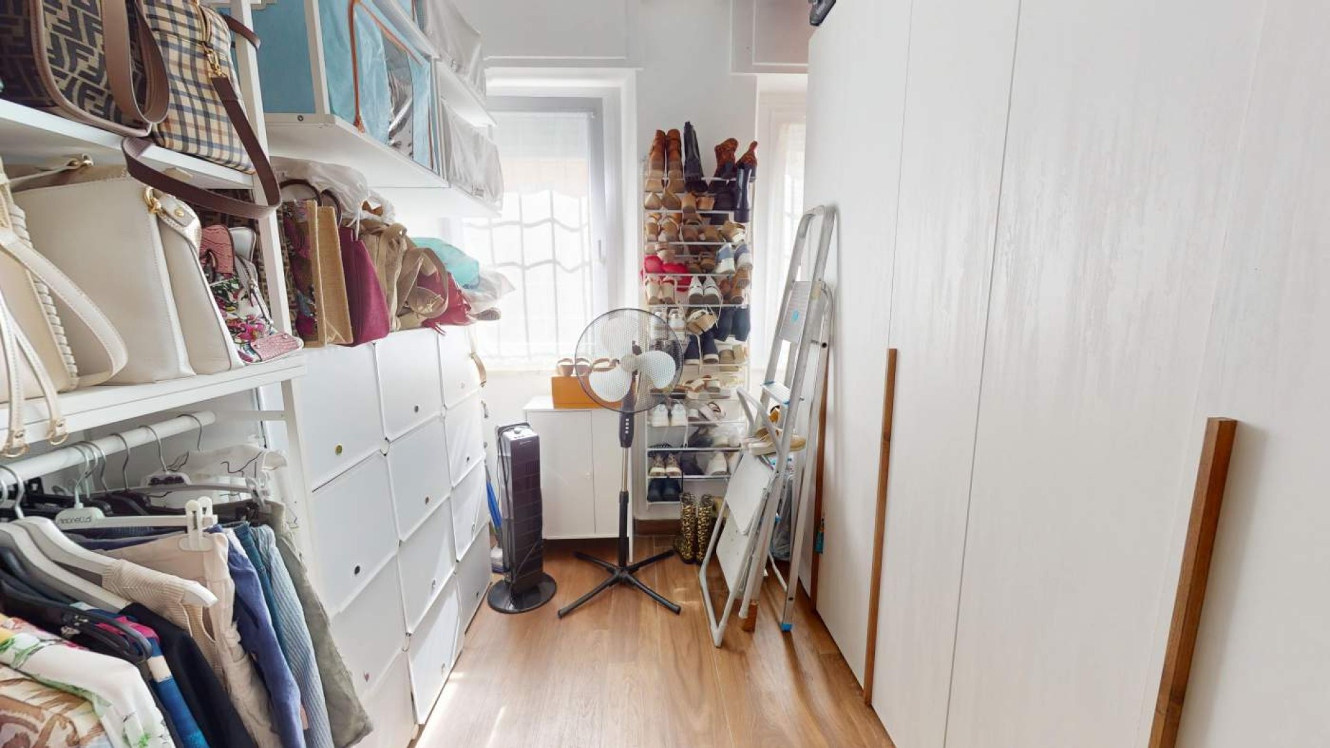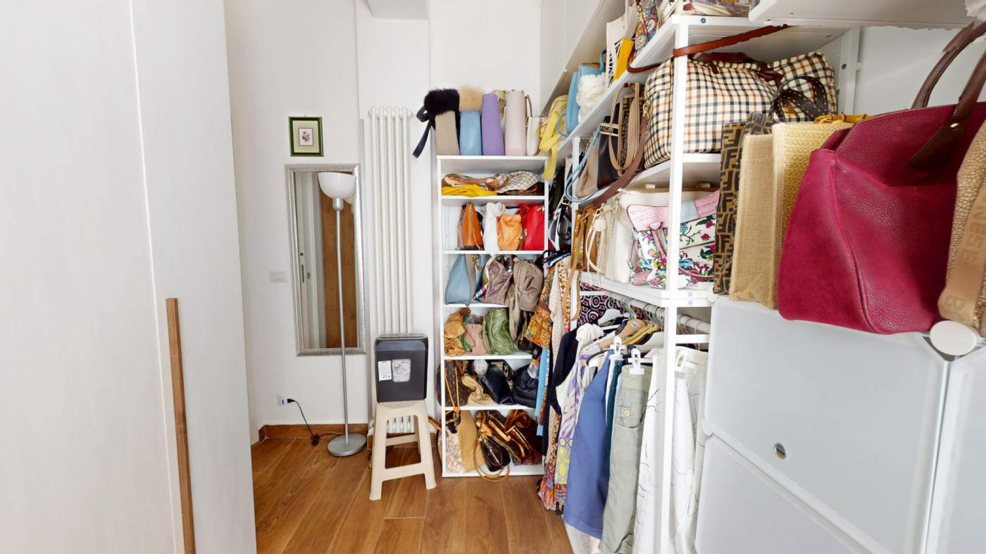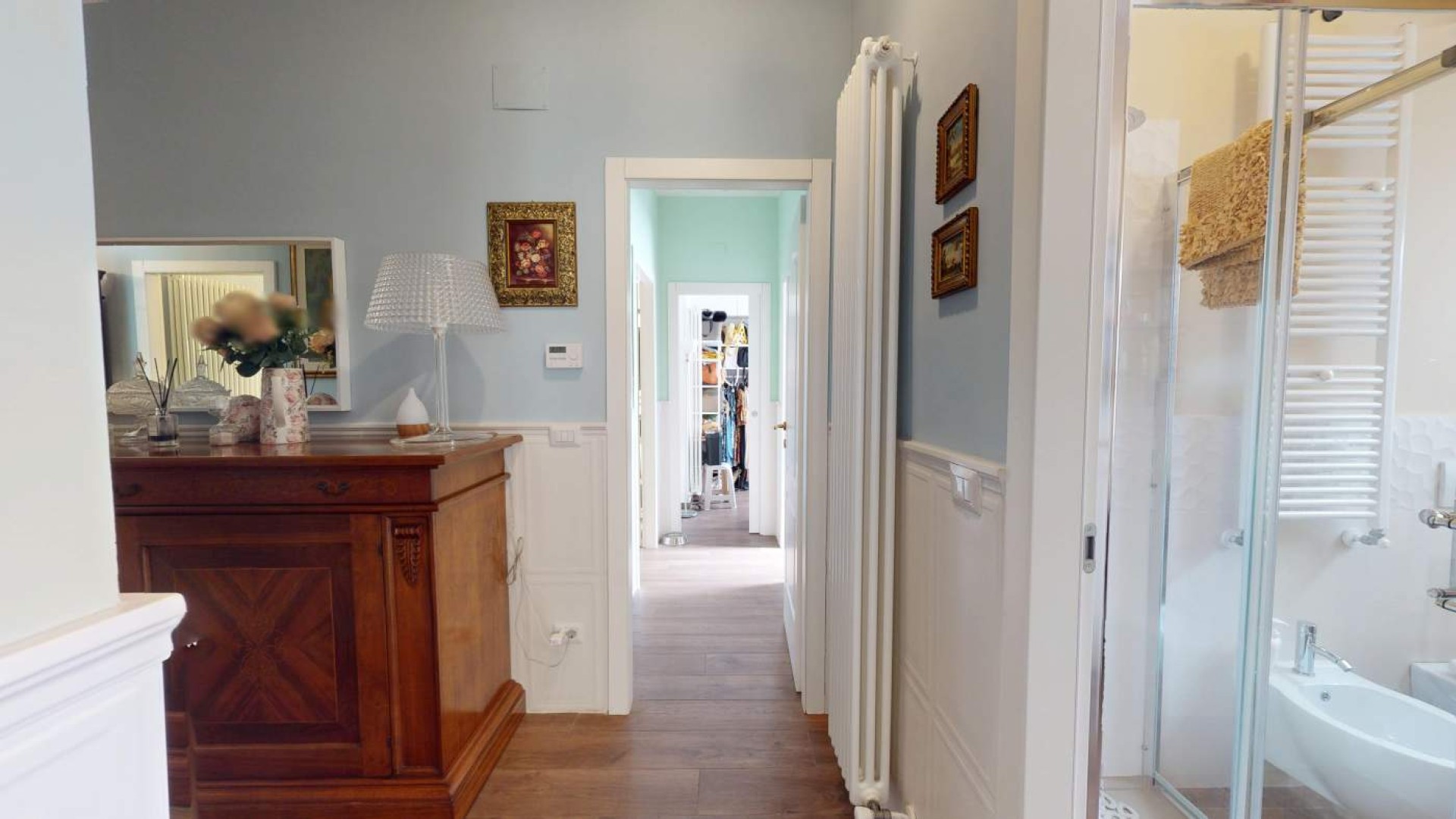 La zona notte, ben separata dalla zona giorno, comprende due spaziose camere matrimoniali con affaccio sul terrazzo e una terza stanza attualmente adibita a cabina armadio, ma facilmente utilizzabile come cameretta o studio.