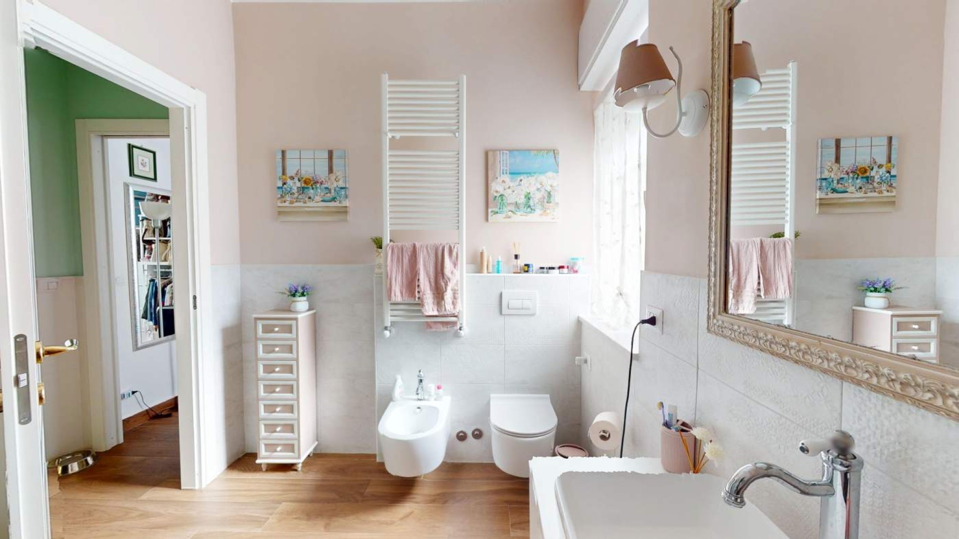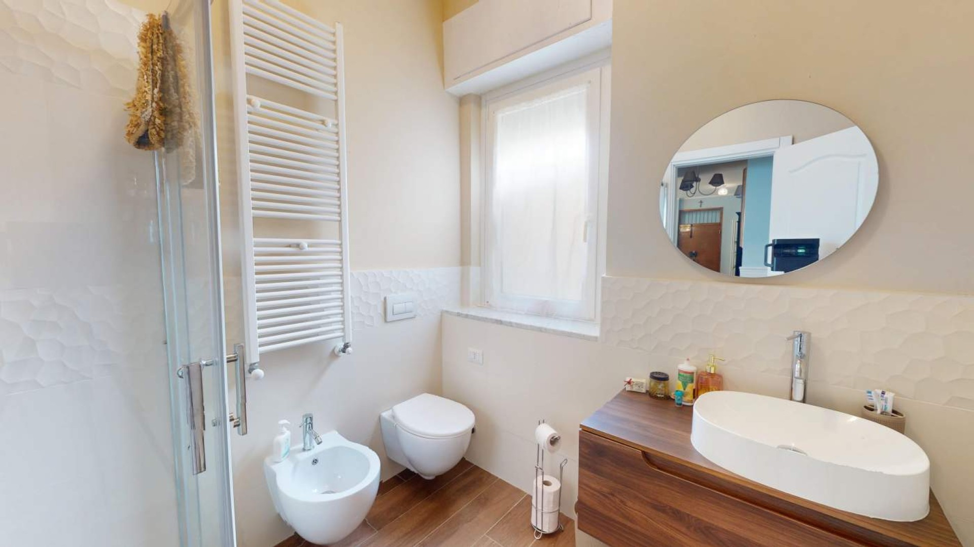 Completano la proprietà due bagni, entrambi finestrati e modernamente rifiniti, dotati di box doccia.
