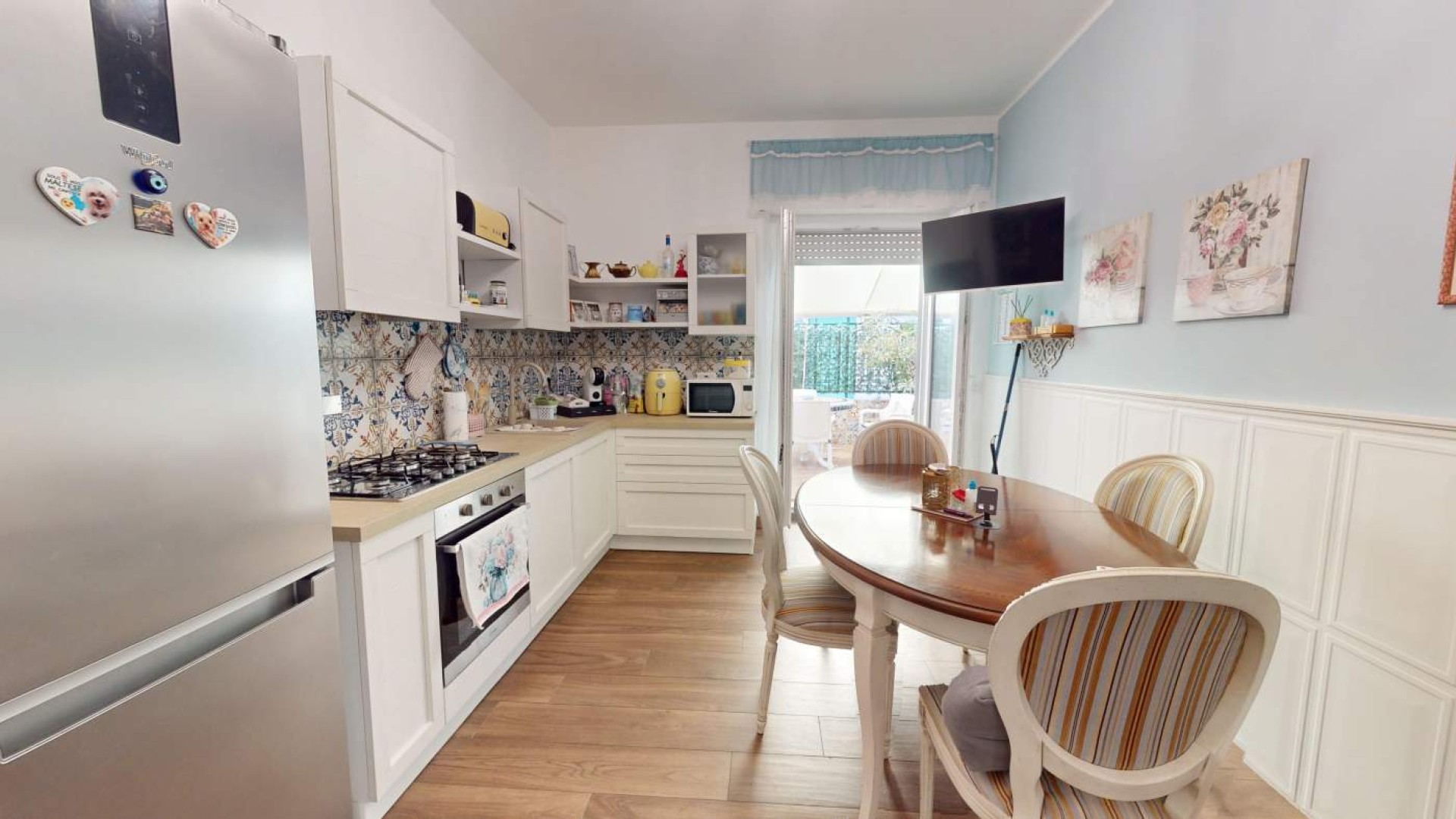 La cucina, separata e abitabile, dispone anch'essa di accesso al terrazzo.