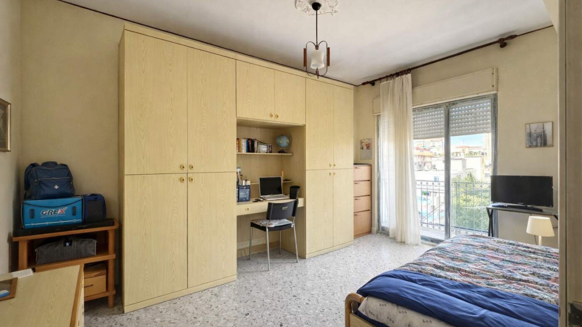 Il soggiorno, ampio e separato, gode di accesso diretto al balcone, regalando ariosità e luce naturale agli spazi; la cucina, anch’essa separata e abitabile, offre funzionalità e comfort per la vita quotidiana.