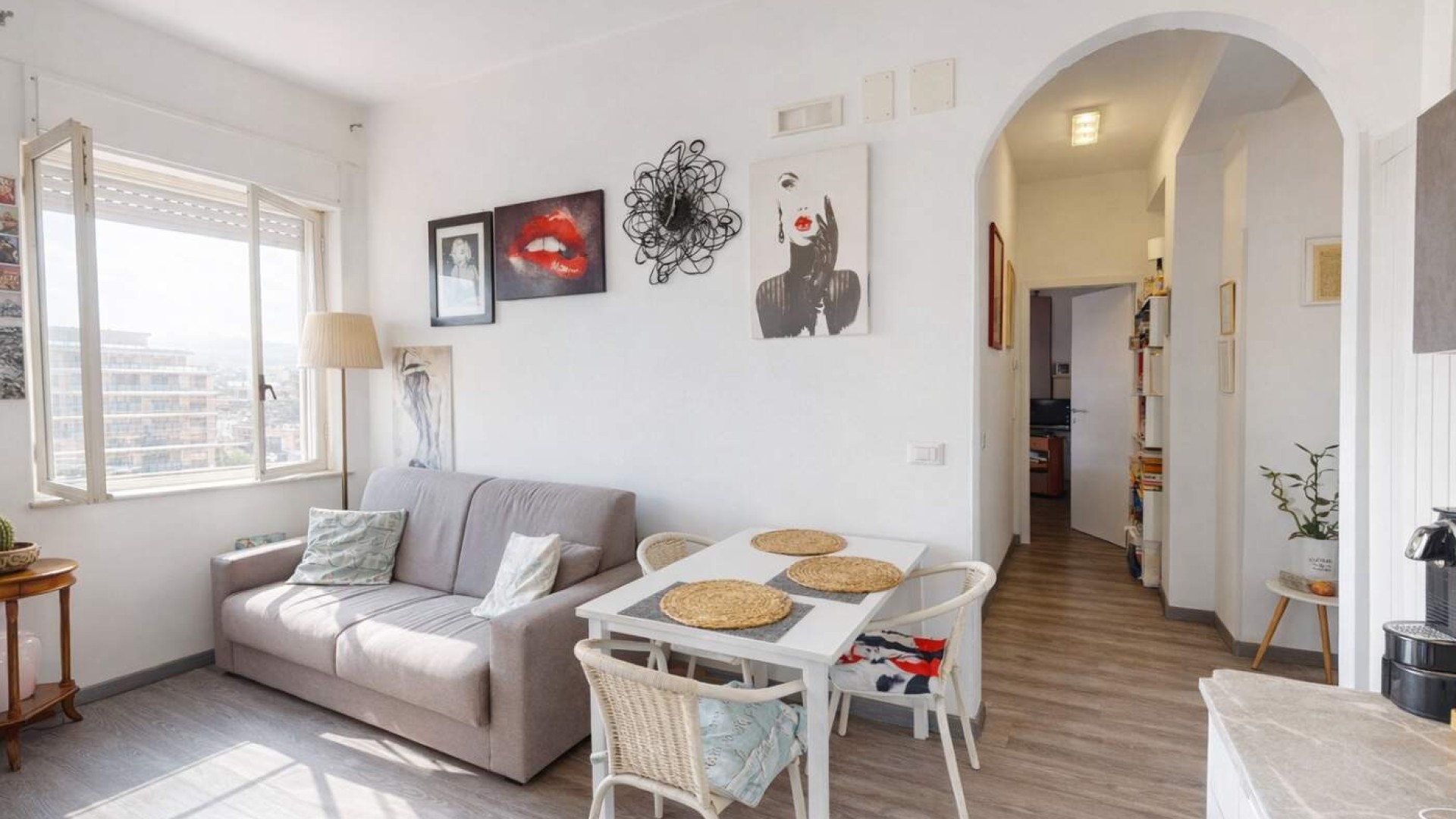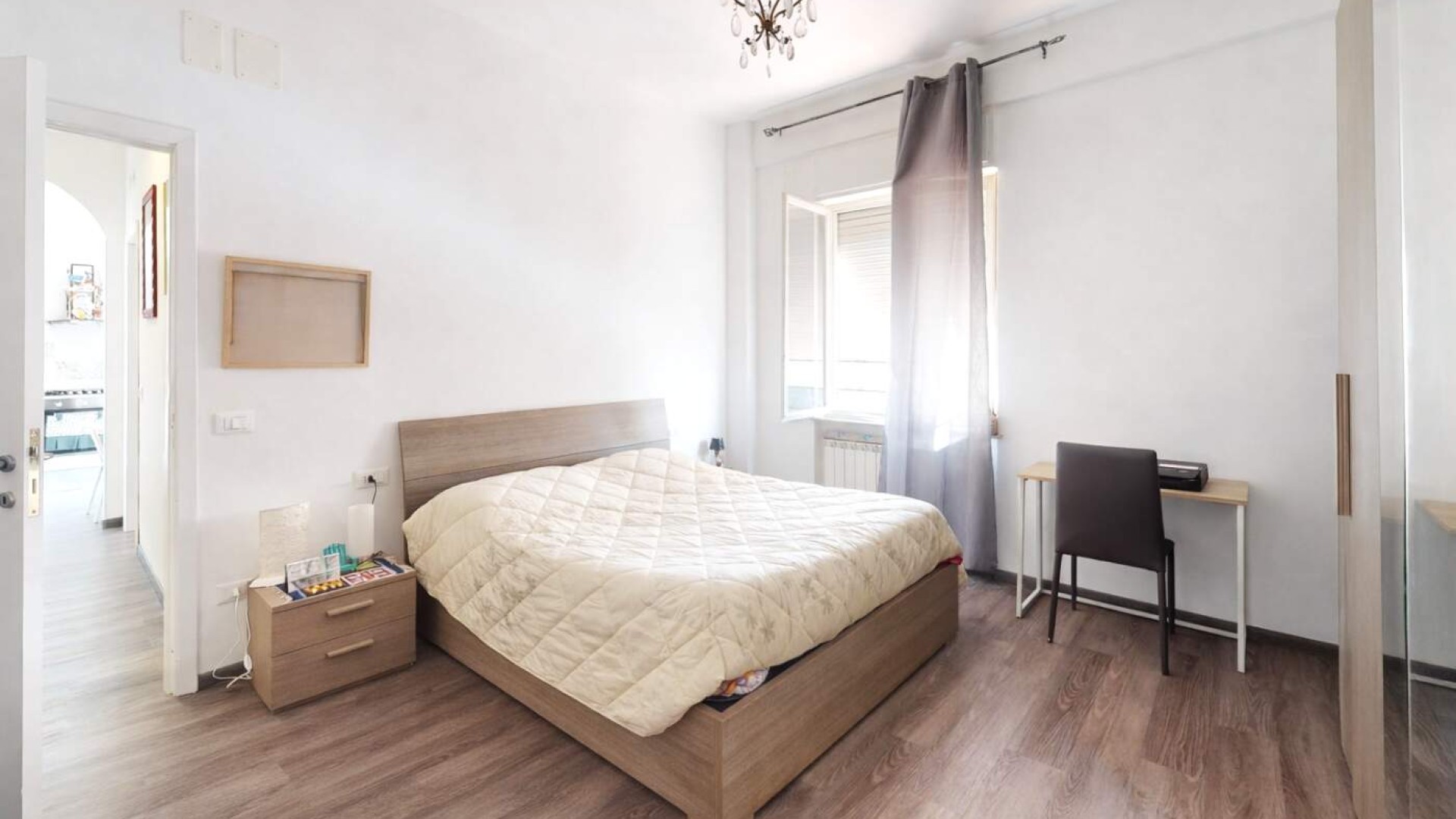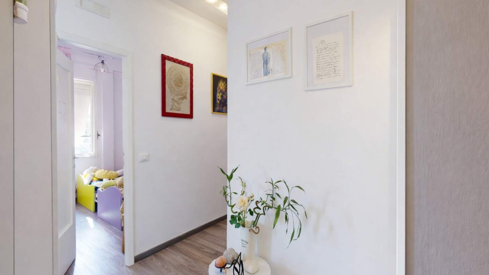 L’appartamento, di circa 80 mq, accoglie con un ingresso su disimpegno che accompagna armoniosamente verso gli ambienti principali della casa, caratterizzati da una distribuzione funzionale e da una naturale luminosità che valorizza ogni spazio.