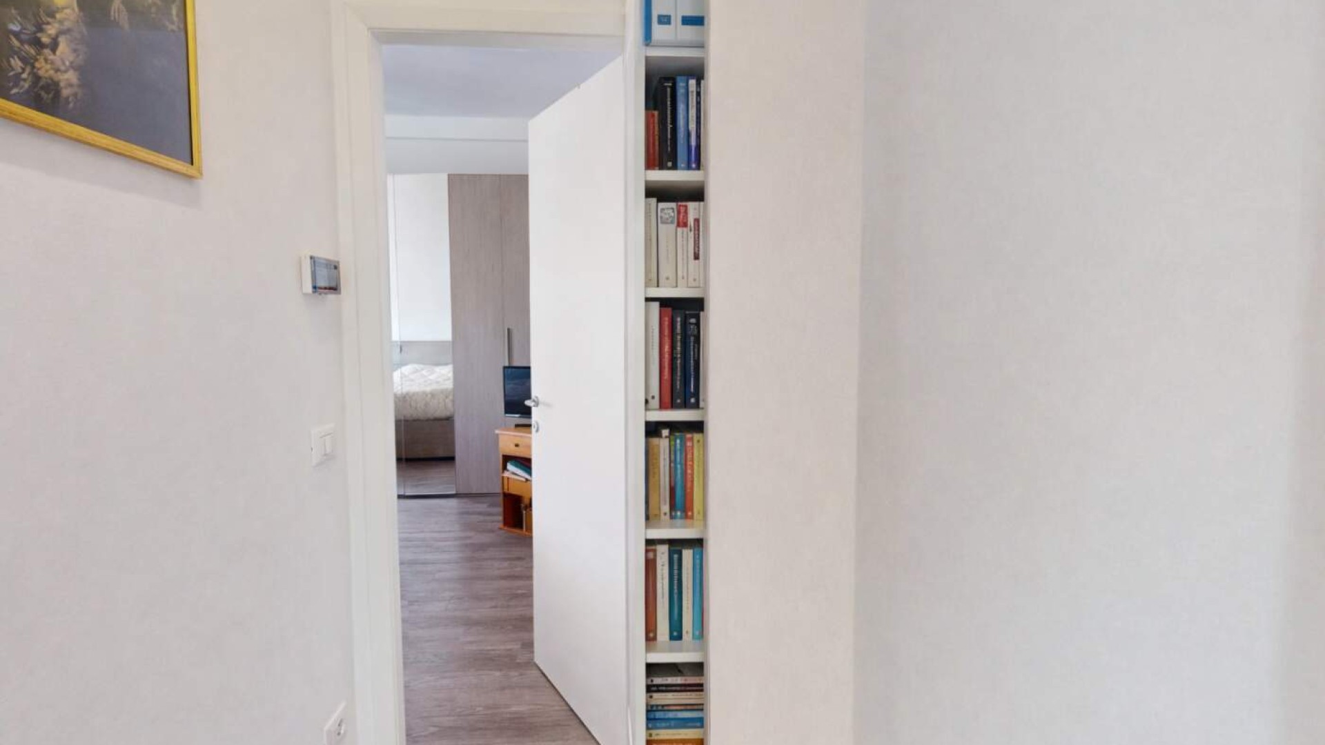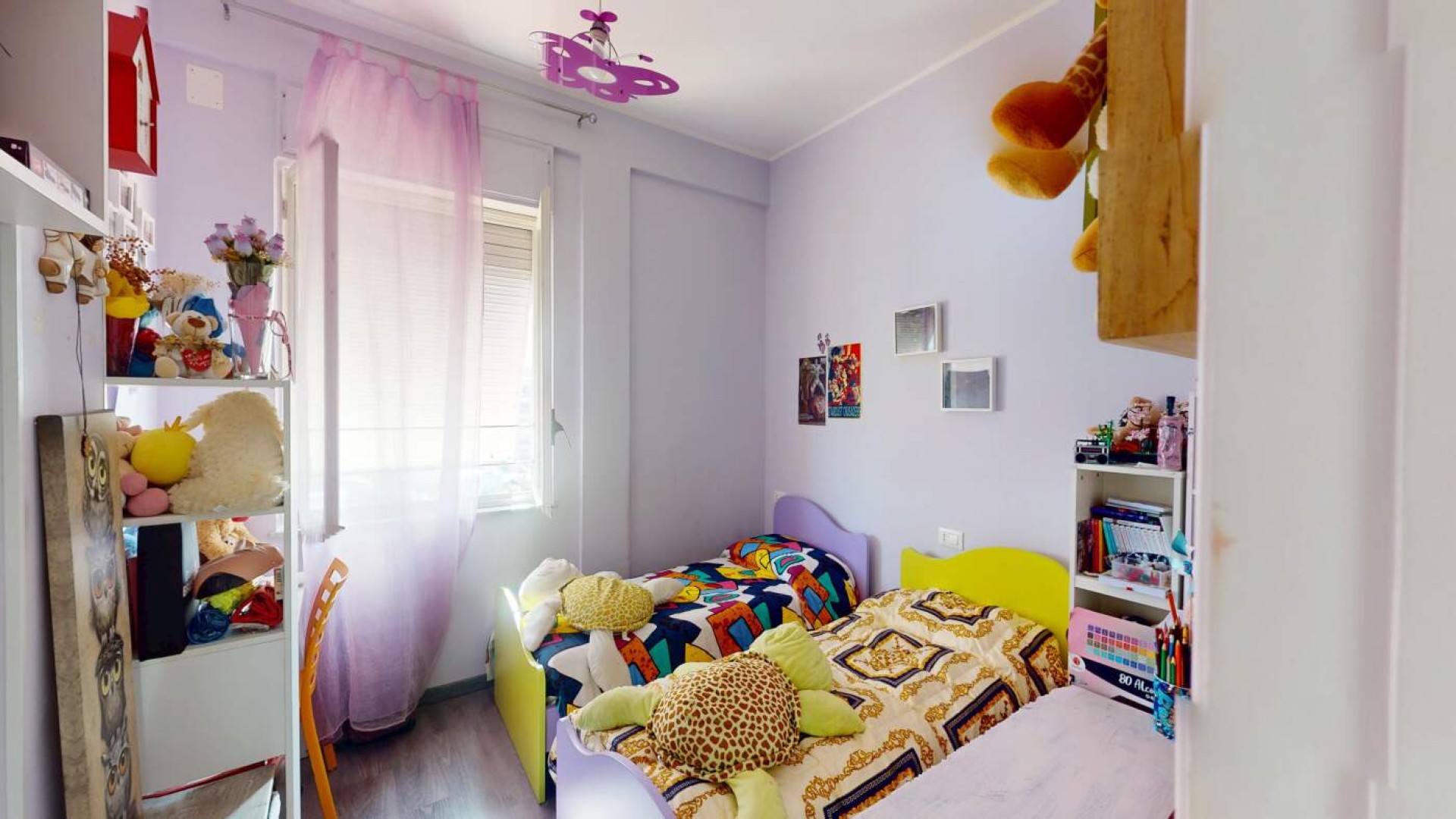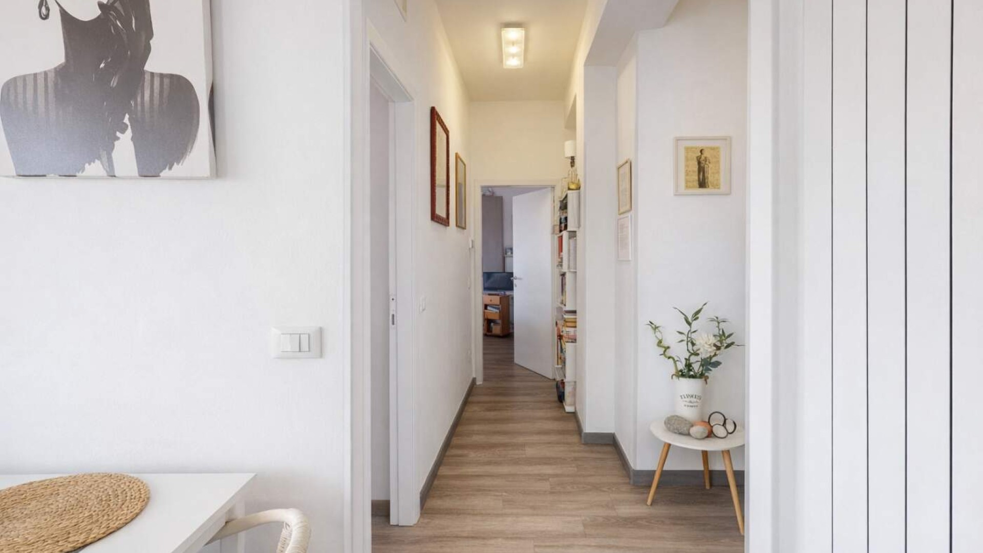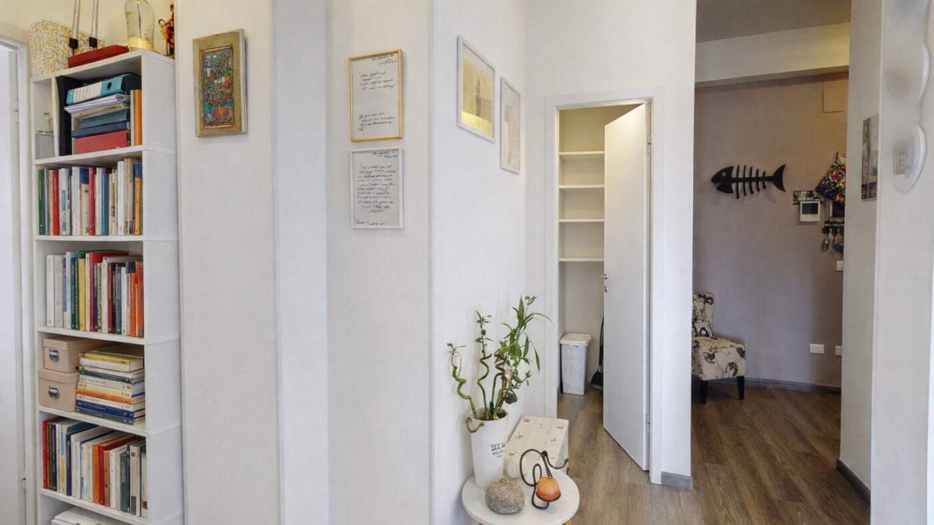 L’appartamento, di circa 80 mq, accoglie con un ingresso su disimpegno che accompagna armoniosamente verso gli ambienti principali della casa, caratterizzati da una distribuzione funzionale e da una naturale luminosità che valorizza ogni spazio.