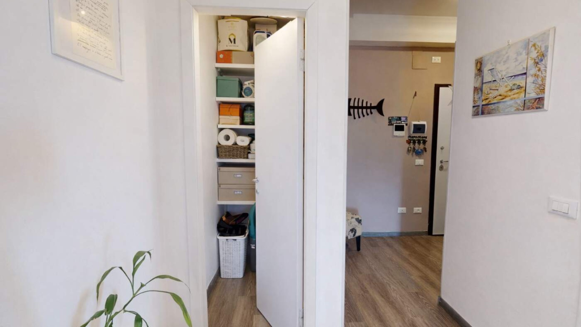 Completa la proprietà un bagno finestrato con box doccia e un comodo ripostiglio, elemento sempre prezioso per organizzare al meglio gli spazi domestici.