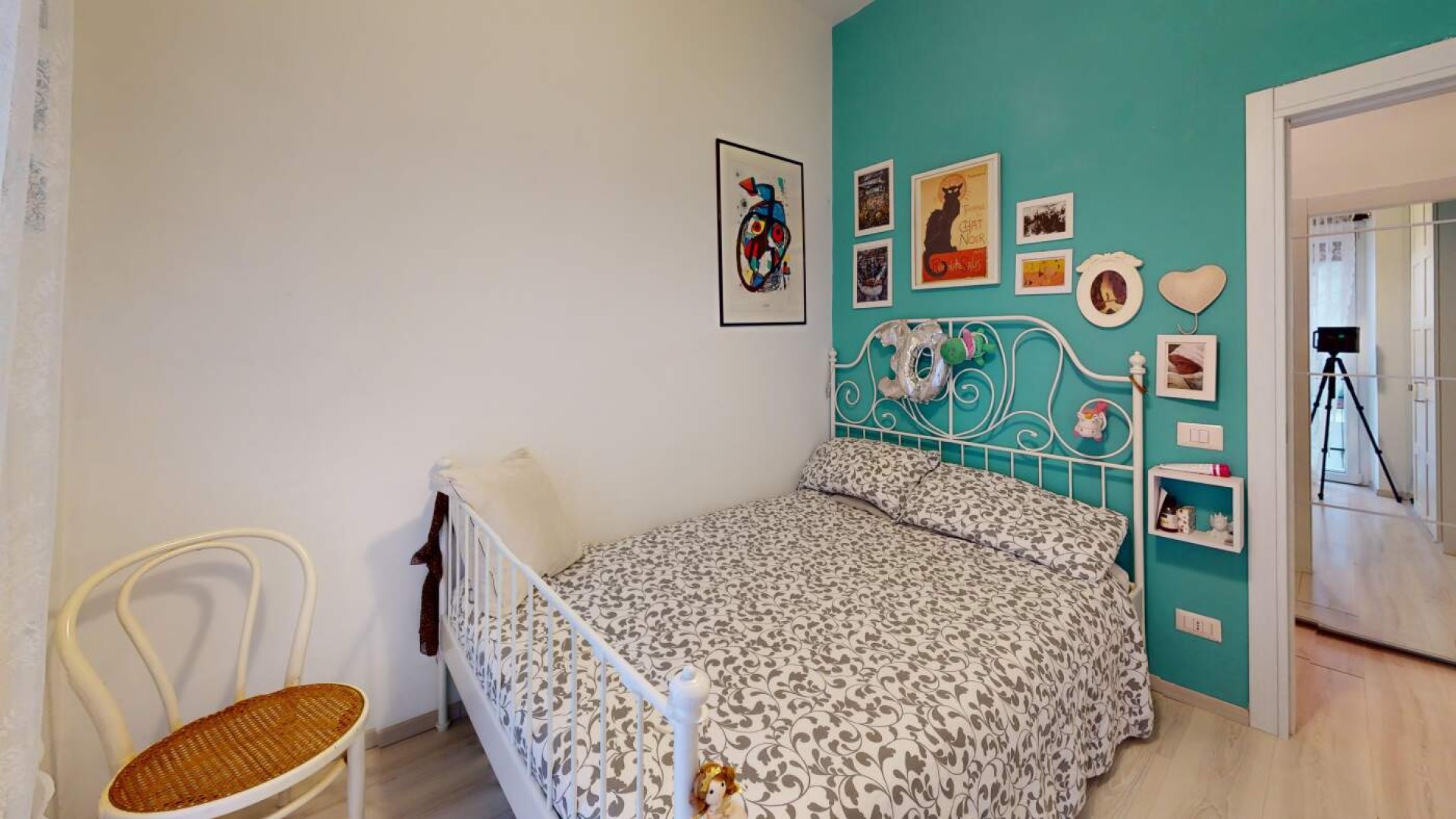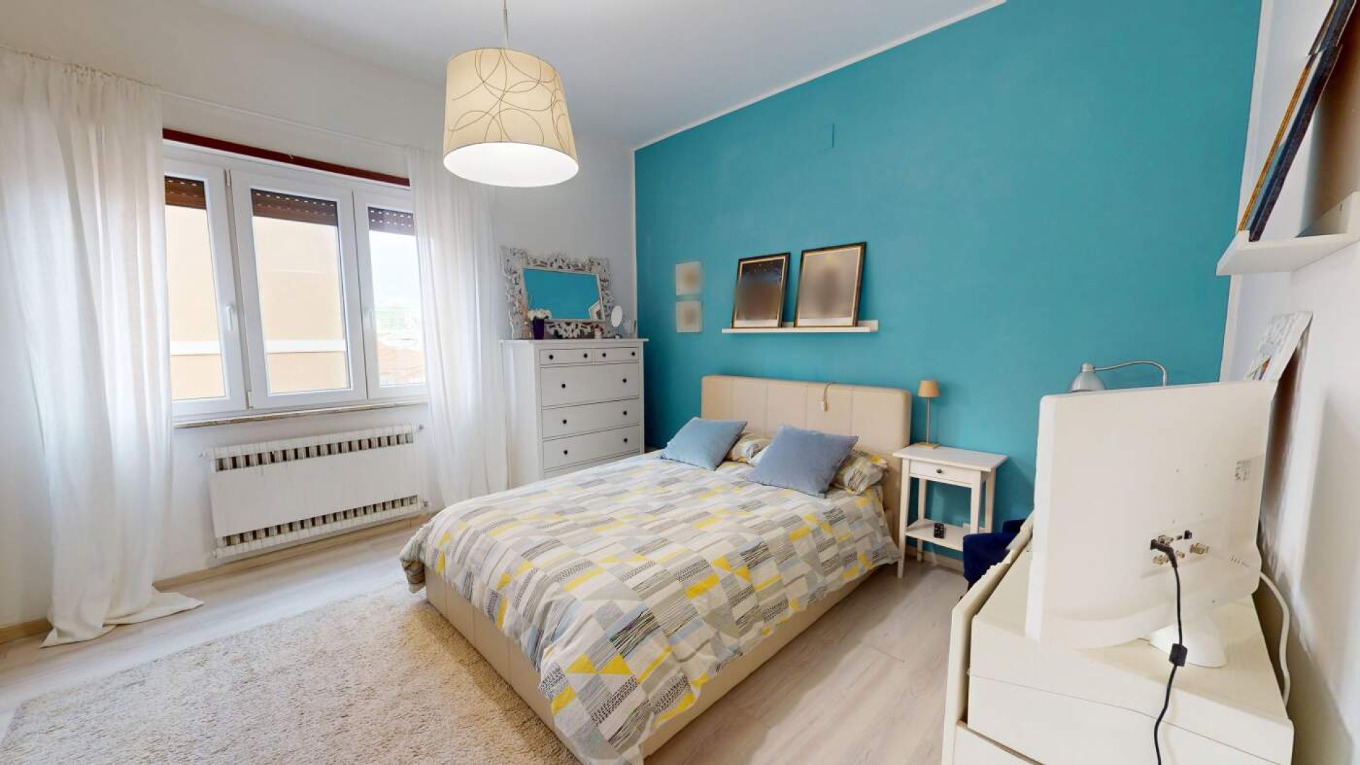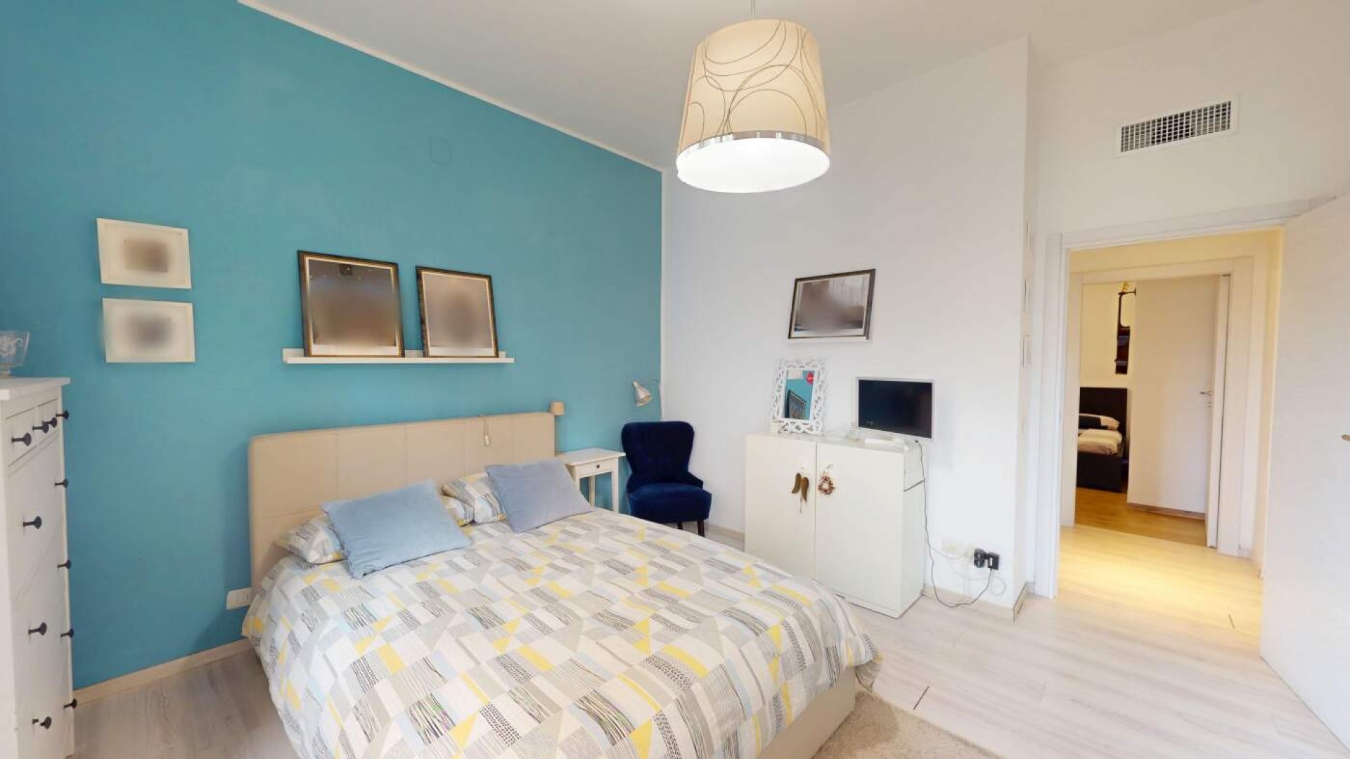 Subito troviamo una camera da letto con accesso diretto al balcone, ideale anche come studio o stanza ospiti.