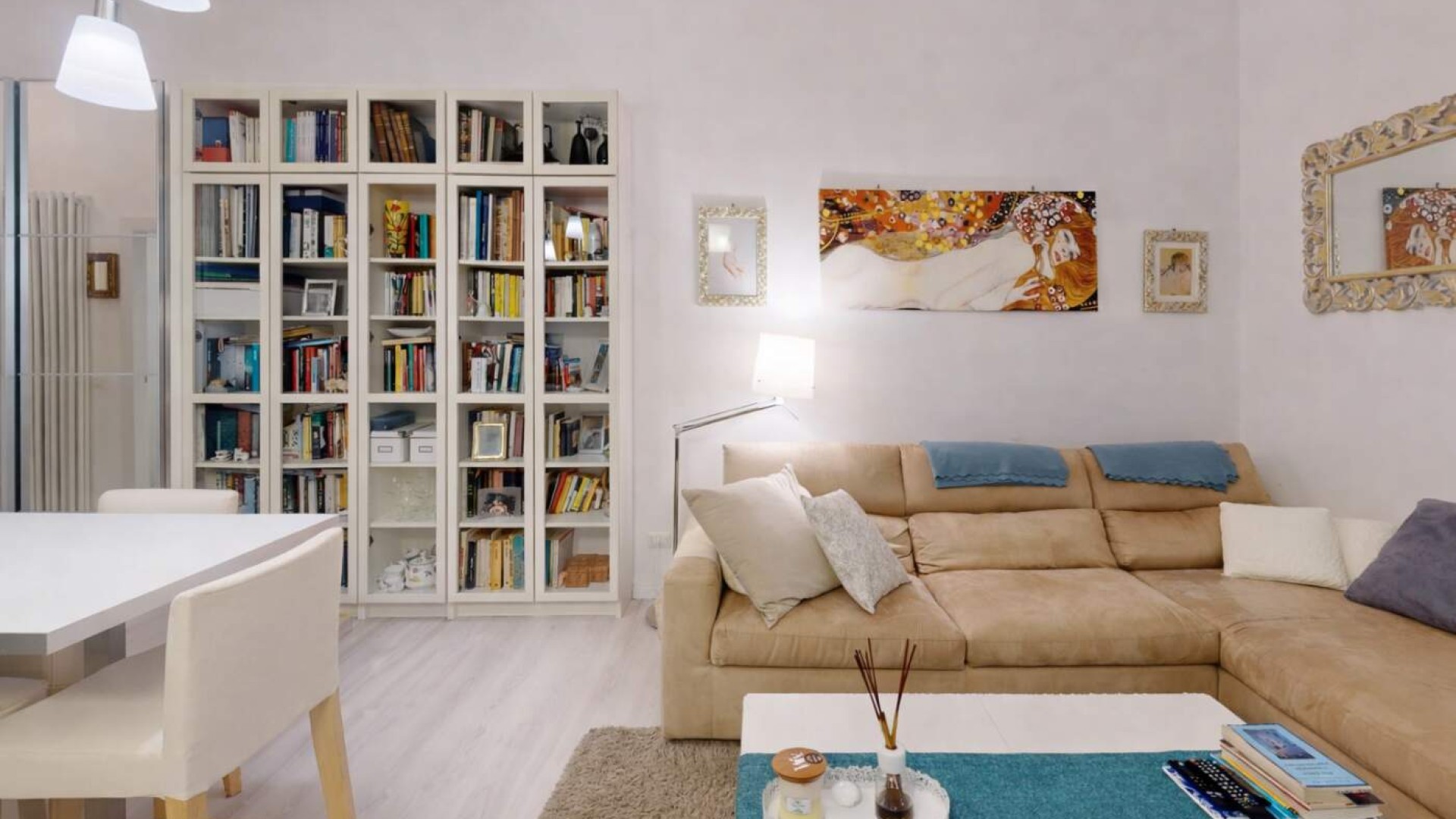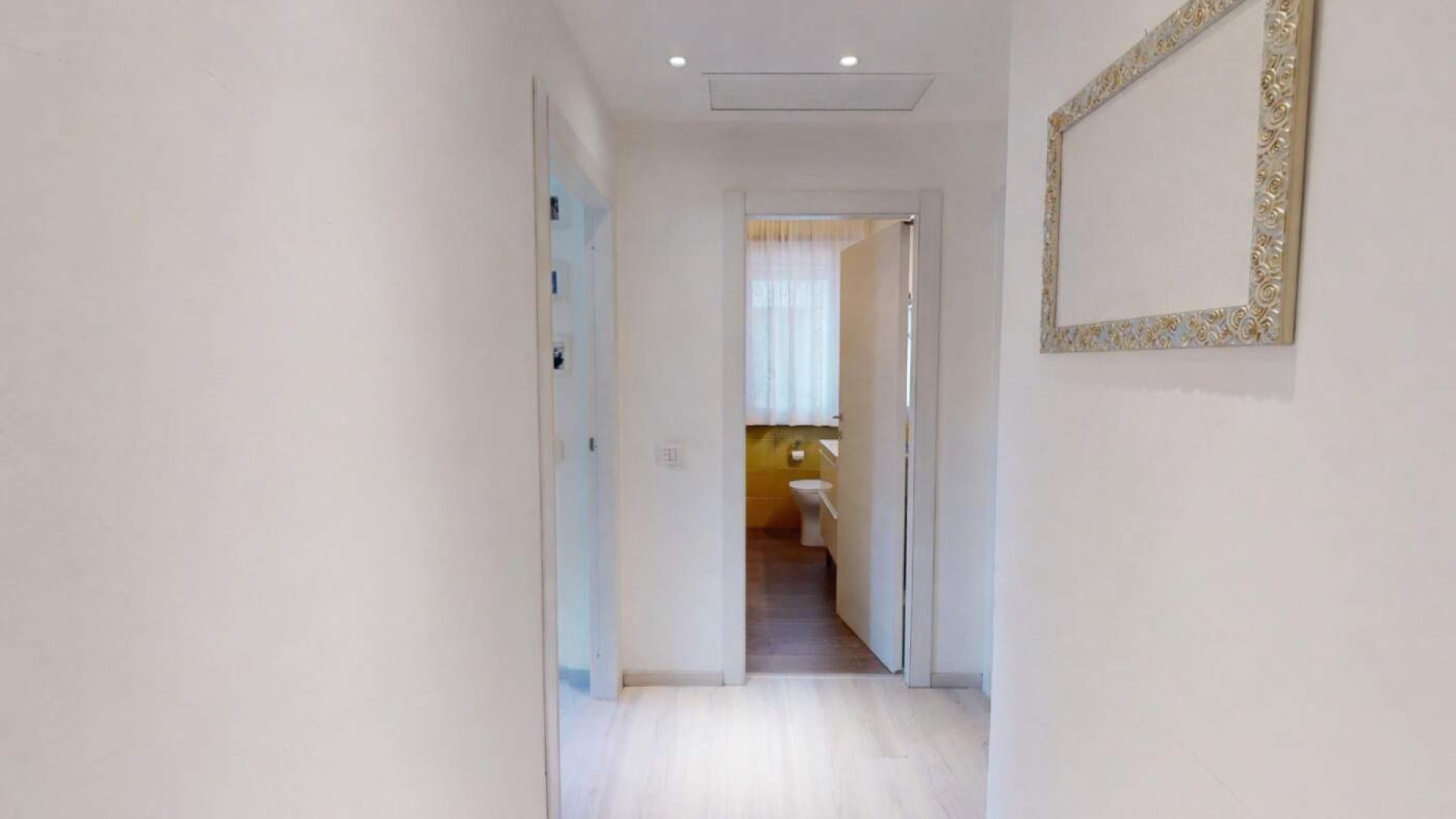 L’appartamento, di circa 90 mq, si apre su un comodo ingresso che introduce a spazi ben distribuiti e armoniosi.