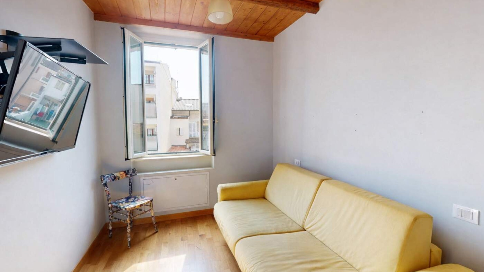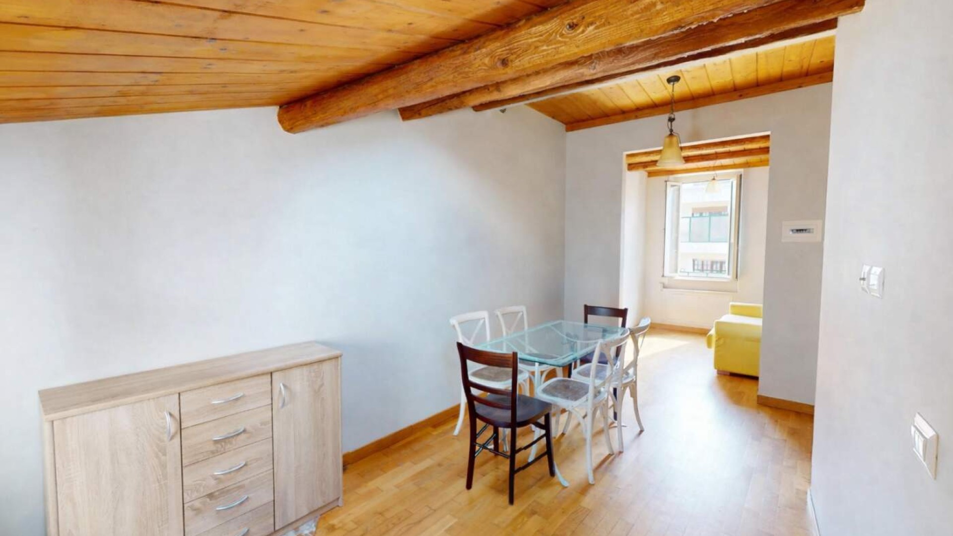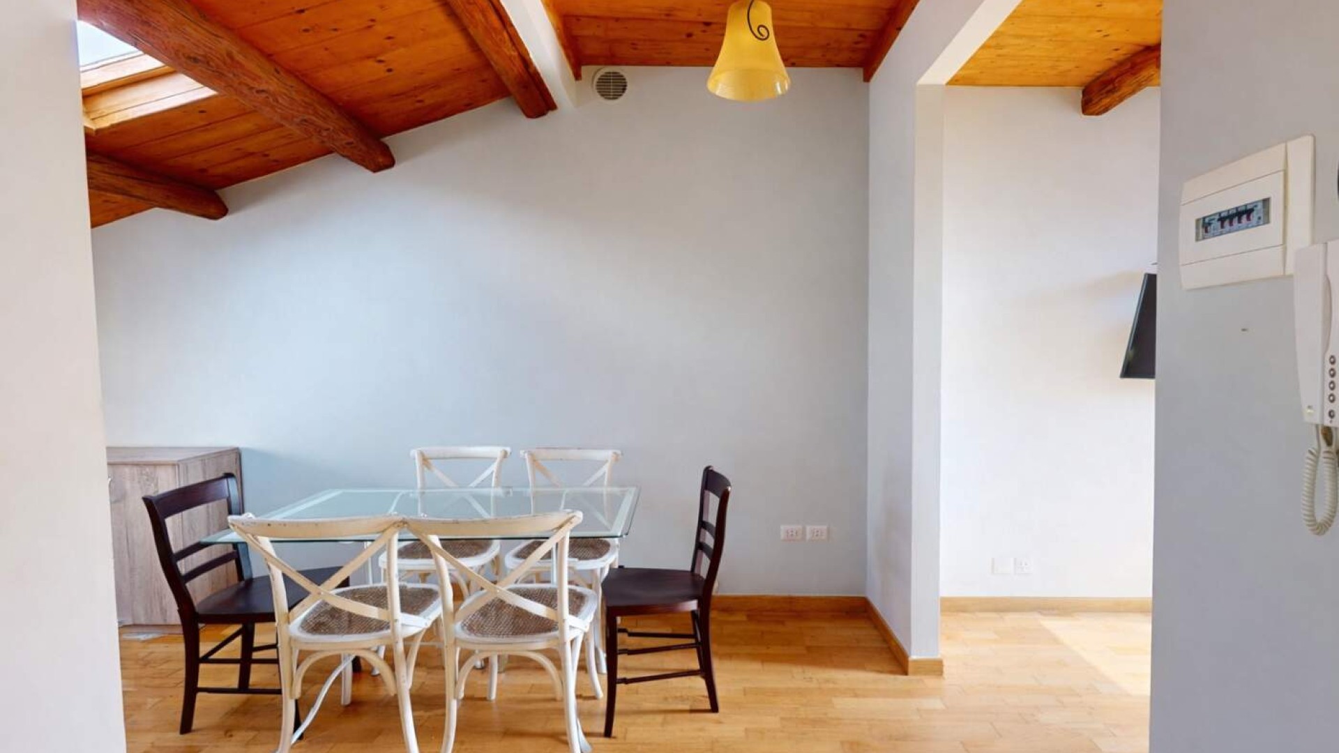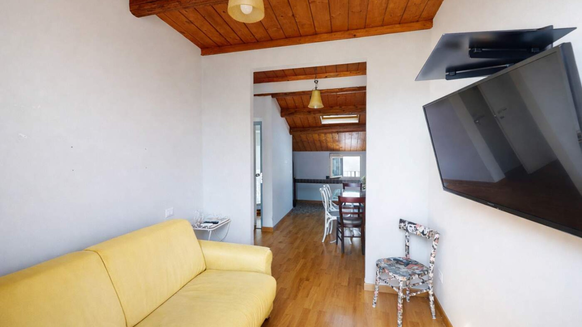 L’appartamento, di circa 55 mq, si sviluppa su più livelli con una distribuzione originale e funzionale degli spazi.