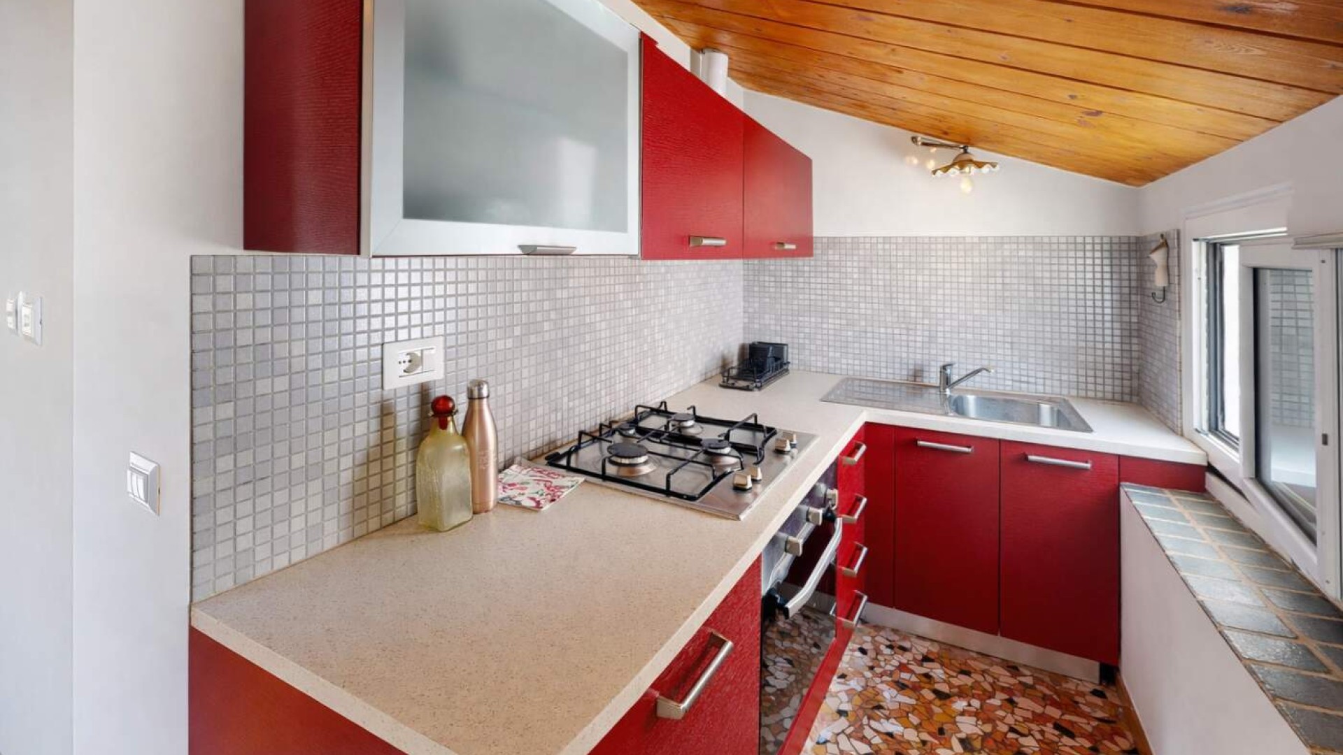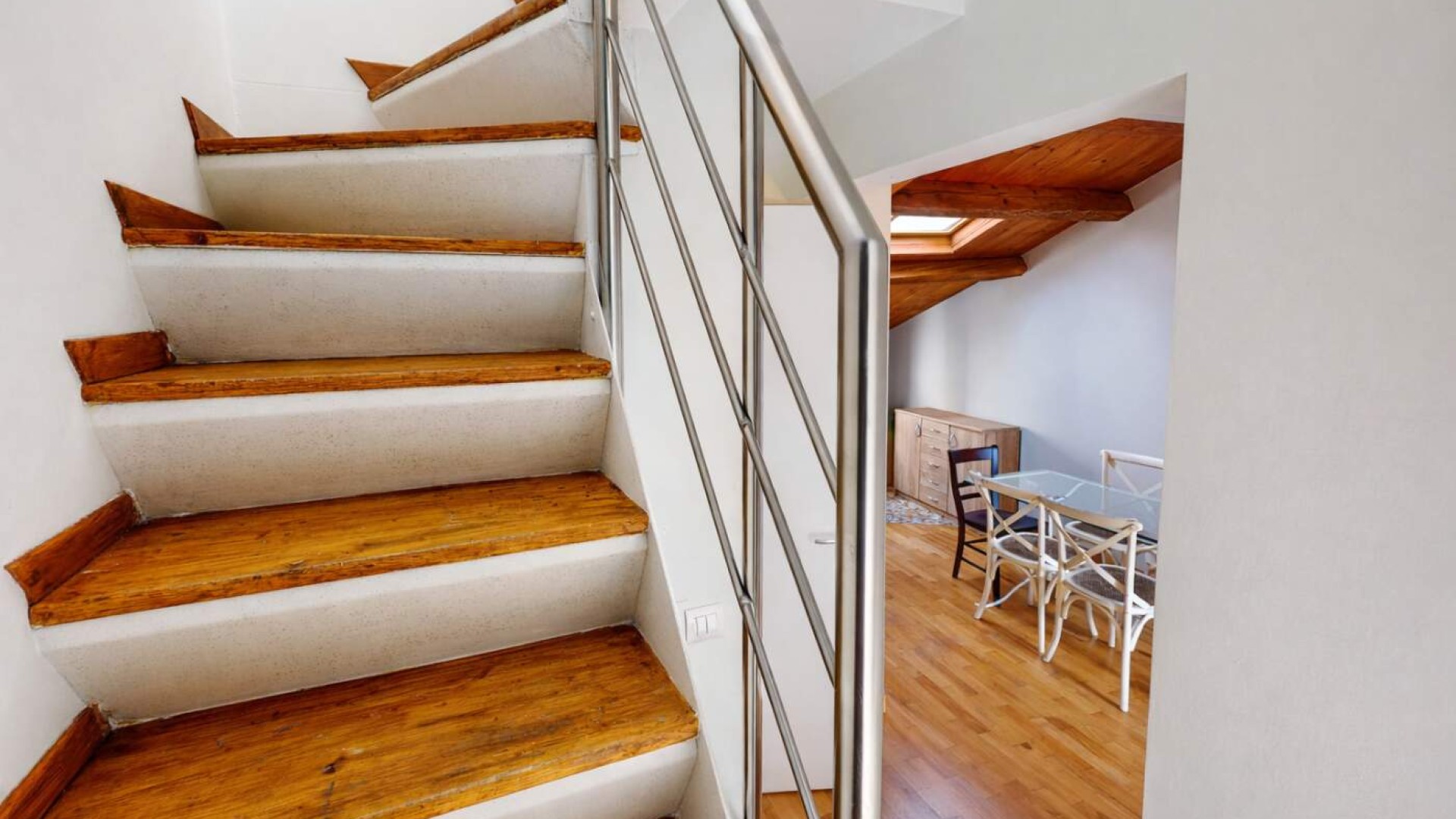 Attraverso una scalinata si accede a un ripostiglio/cabina armadio, mentre un’ulteriore scala conduce alla zona notte, composta da una camera da letto matrimoniale con accesso a un terrazzo abitabile di circa 8 mq e al lastrico solare di proprietà esclusiva, entrambi perfetti per momenti di relax o per essere attrezzato come area solarium.