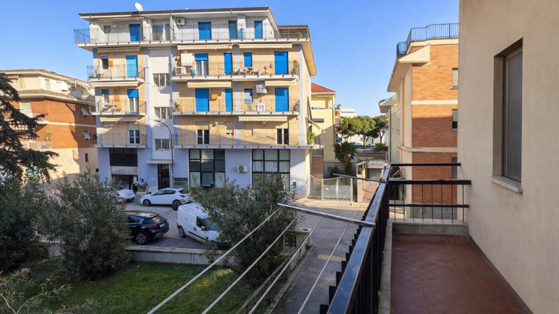 Le finiture sono pensate per garantire comfort abitativo e sicurezza, con pavimentazione uniforme in ceramica, infissi in PVC con doppio vetro, riscaldamento autonomo, porta blindata, videocitofono, zanzariere, tapparelle in PVC e tende da sole, elementi che rendono l’immobile pronto da vivere o da mantenere a reddito senza ulteriori interventi.