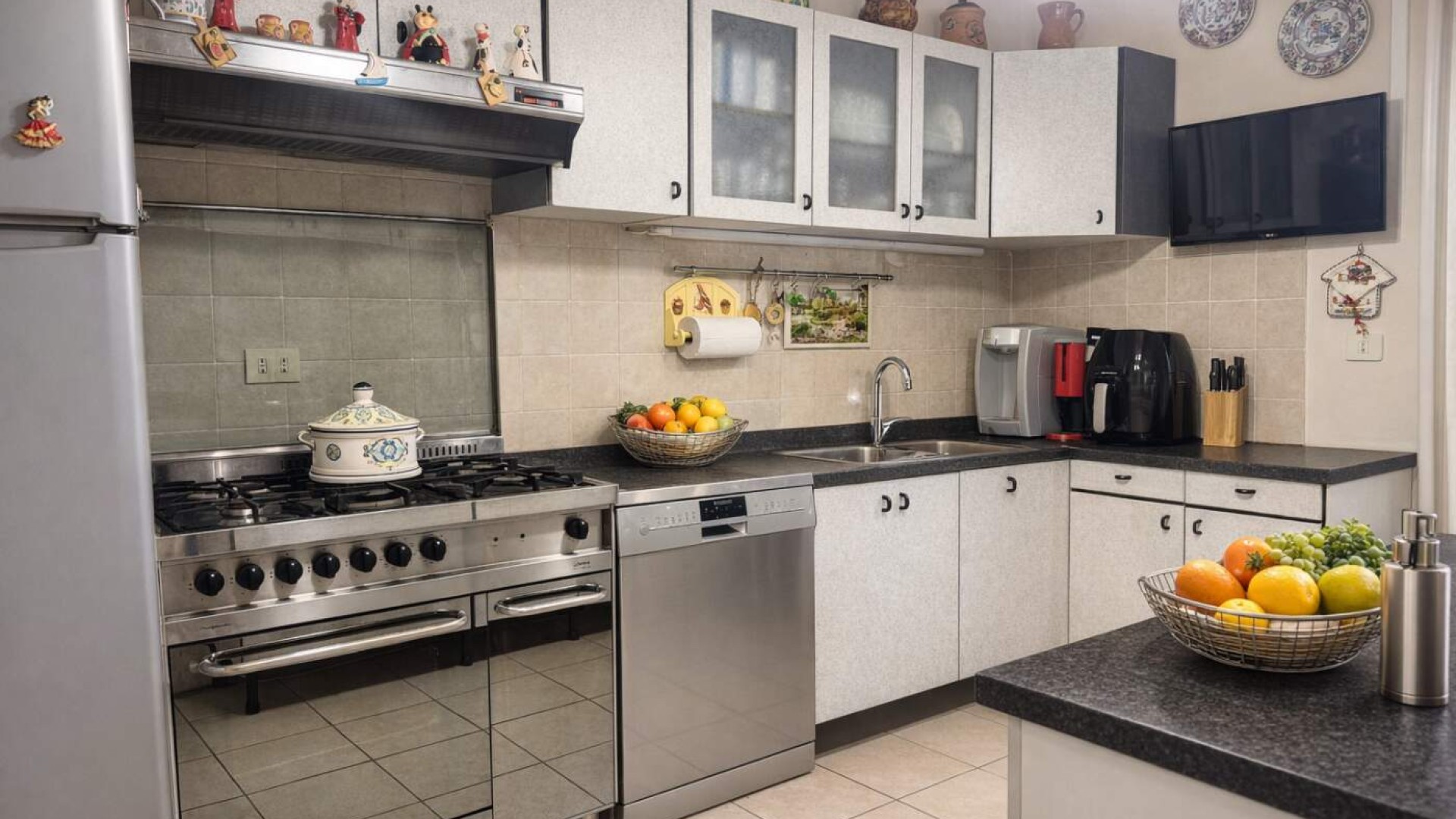 La cucina, separata e abitabile, è perfettamente organizzata e condivide lo stesso sfogo esterno, offrendo continuità e funzionalità agli ambienti giorno.