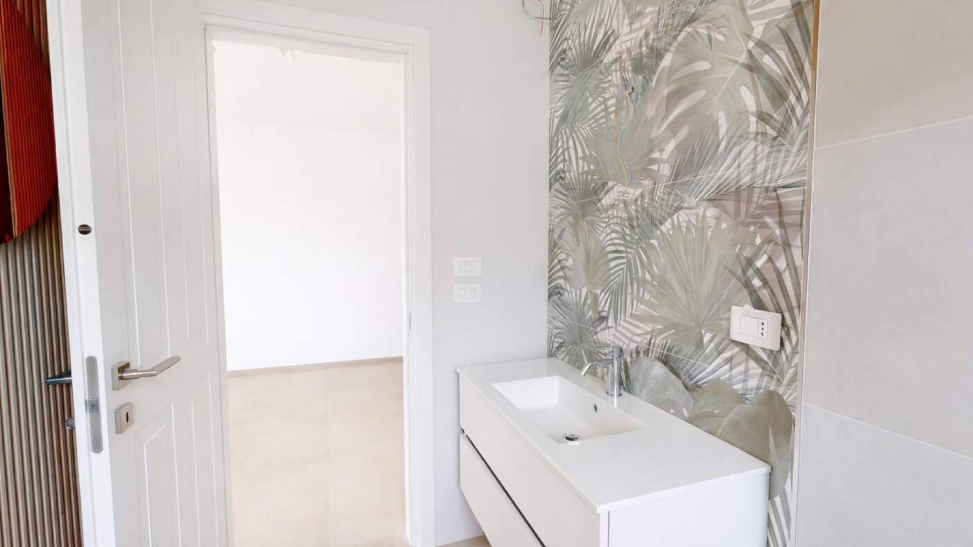 Le finiture moderne, gli infissi in alluminio con doppio vetro e doppia apertura (tradizionale e vasistas) e la pavimentazione in gres uniforme valorizzano ulteriormente l’estetica dell’abitazione, conferendole uno stile elegante e attuale.