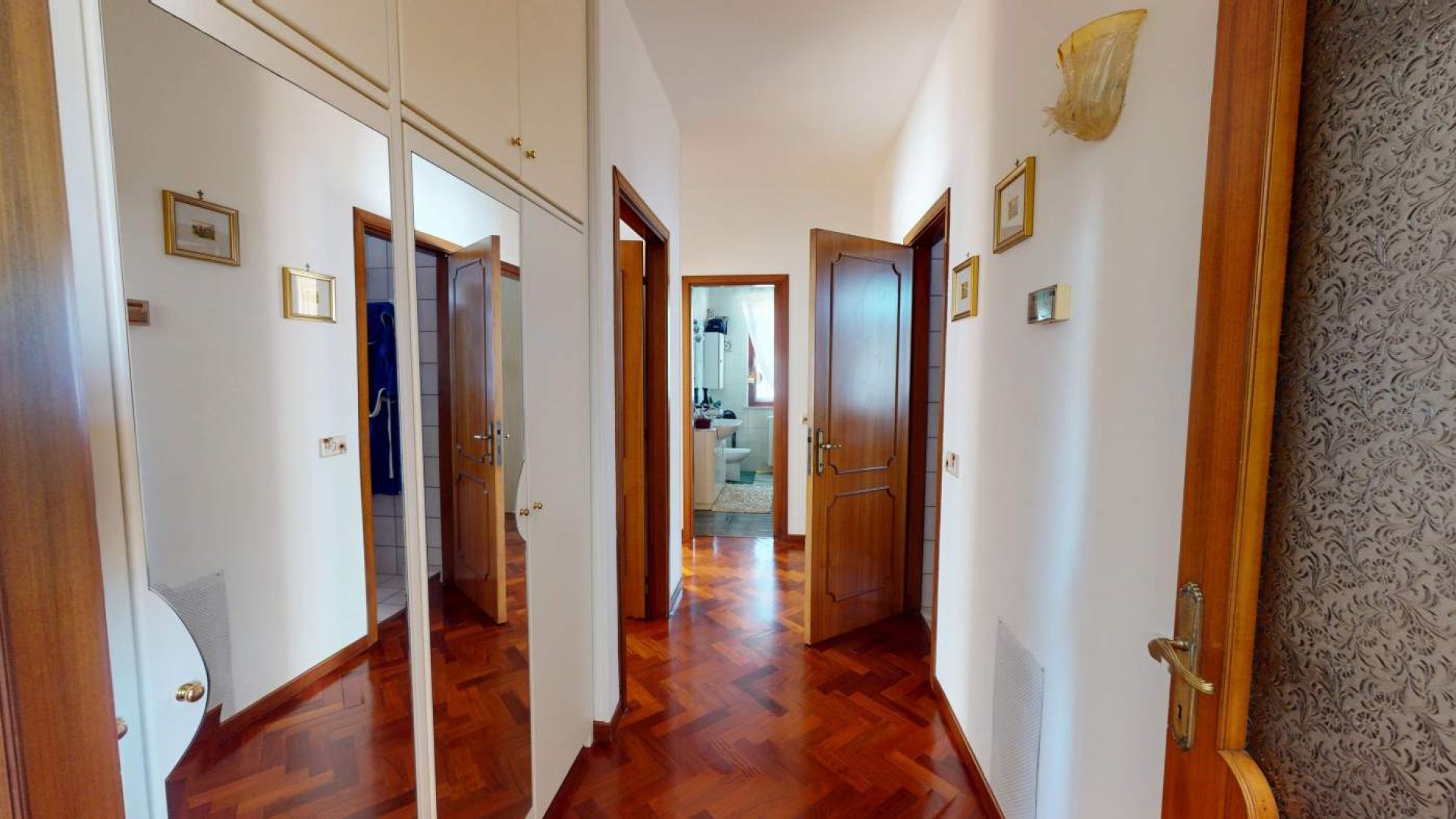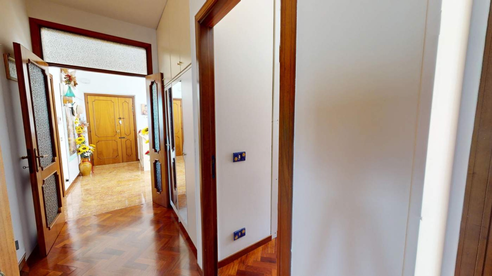 La zona notte, ben separata dal resto dell’abitazione da un disimpegno, ospita due camere matrimoniali con accesso al balcone, una camera doppia e due bagni finestrati: Uno con box doccia, l’altro con comoda vasca, pensati per offrire il massimo comfort a tutta la famiglia.