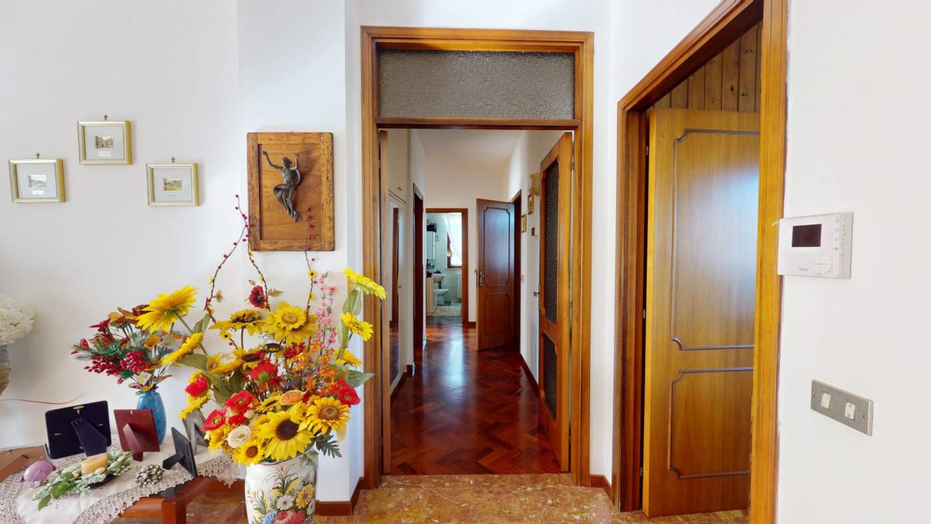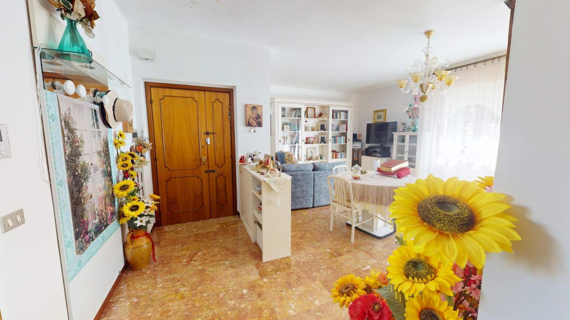 L’ingresso, ampio e accogliente, si apre su un elegante soggiorno che gode di un’ottima esposizione e di accesso diretto al balcone.