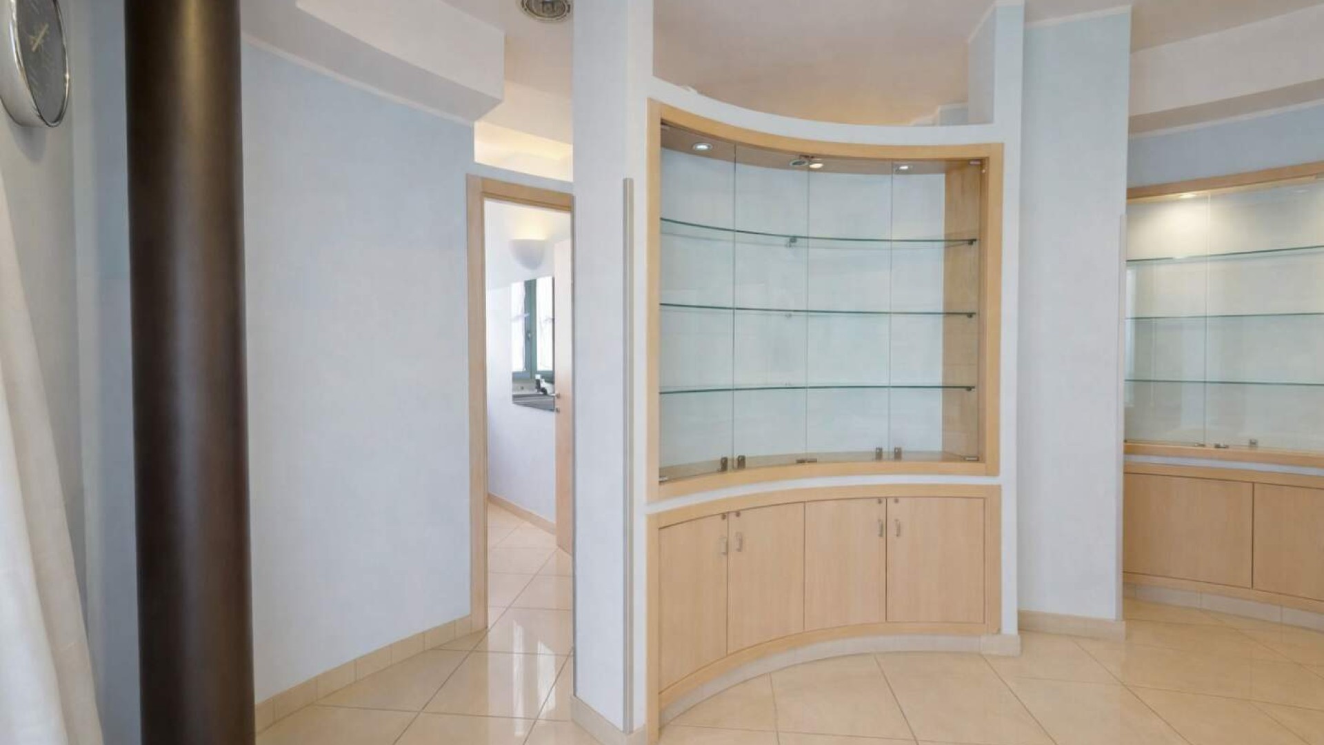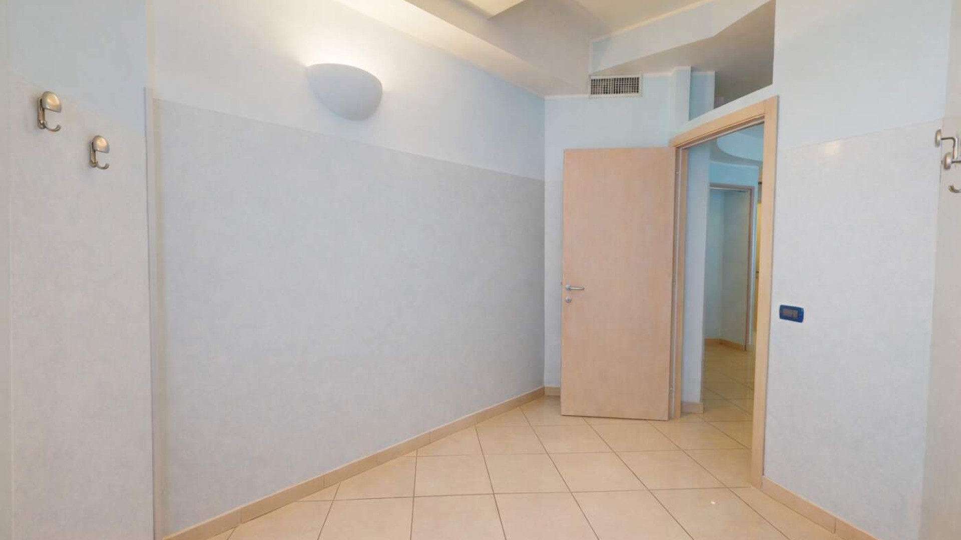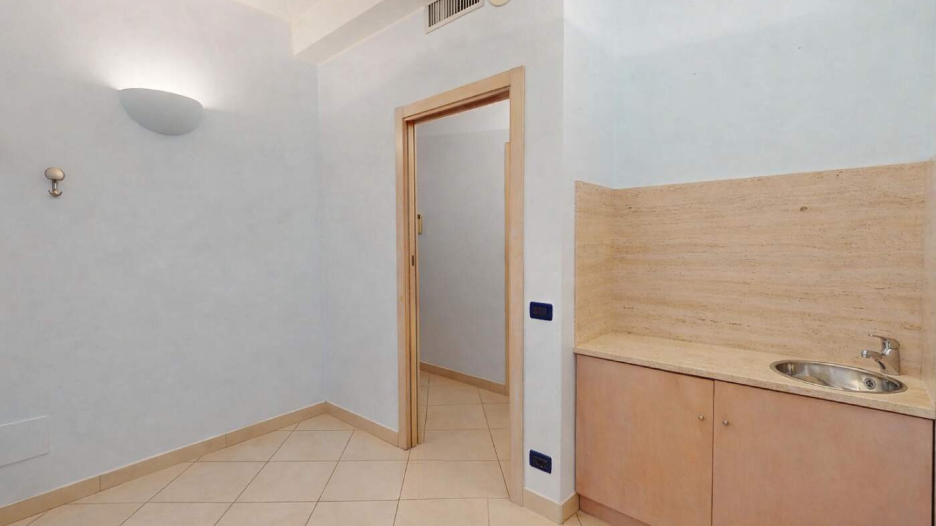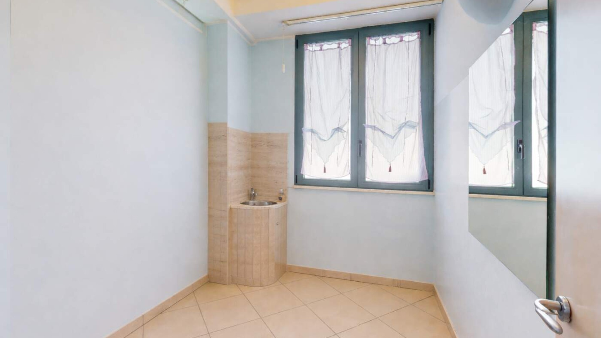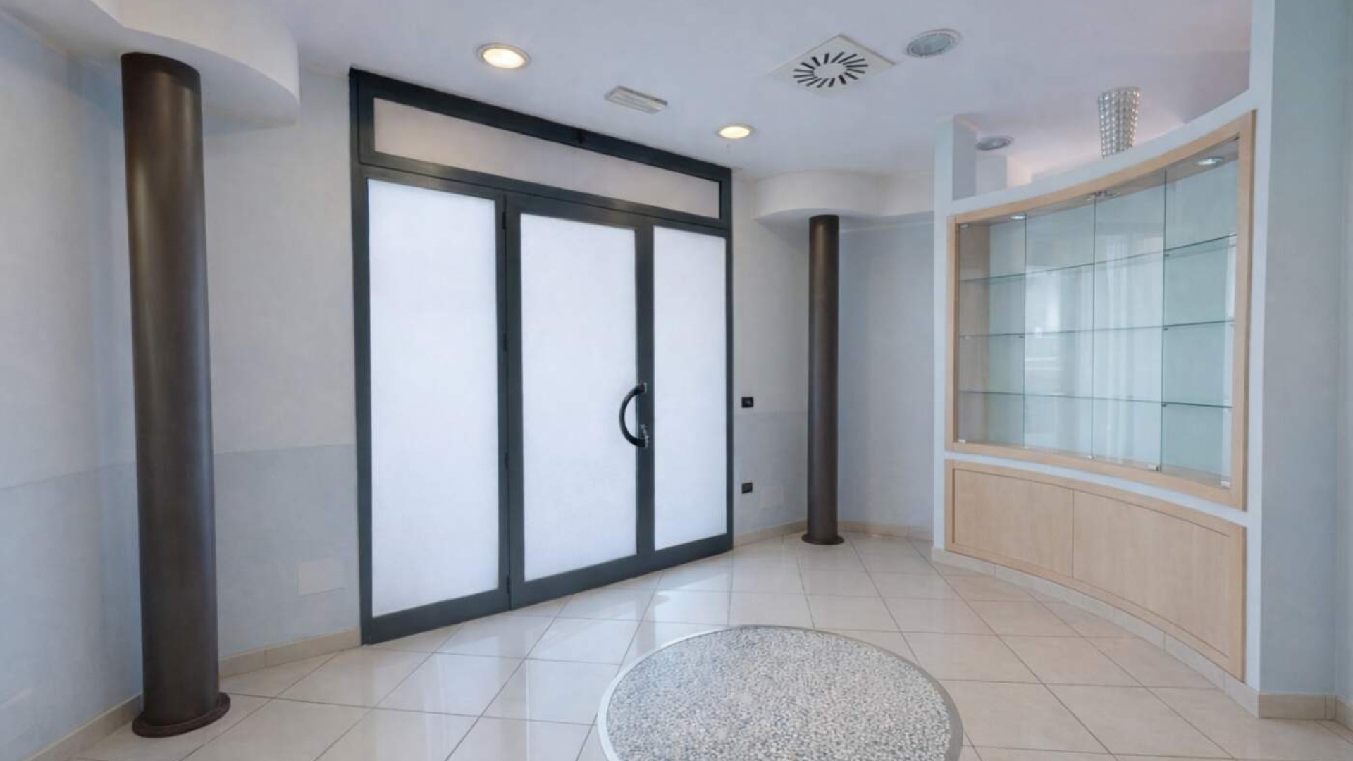 Attualmente adibito a centro estetico ben avviato, il locale ospita otto stanze operative già predisposte per trattamenti estetici e benessere, ciascuna dotata di lavandino con raffinato rivestimento in marmo, dettaglio che coniuga praticità ed eleganza.