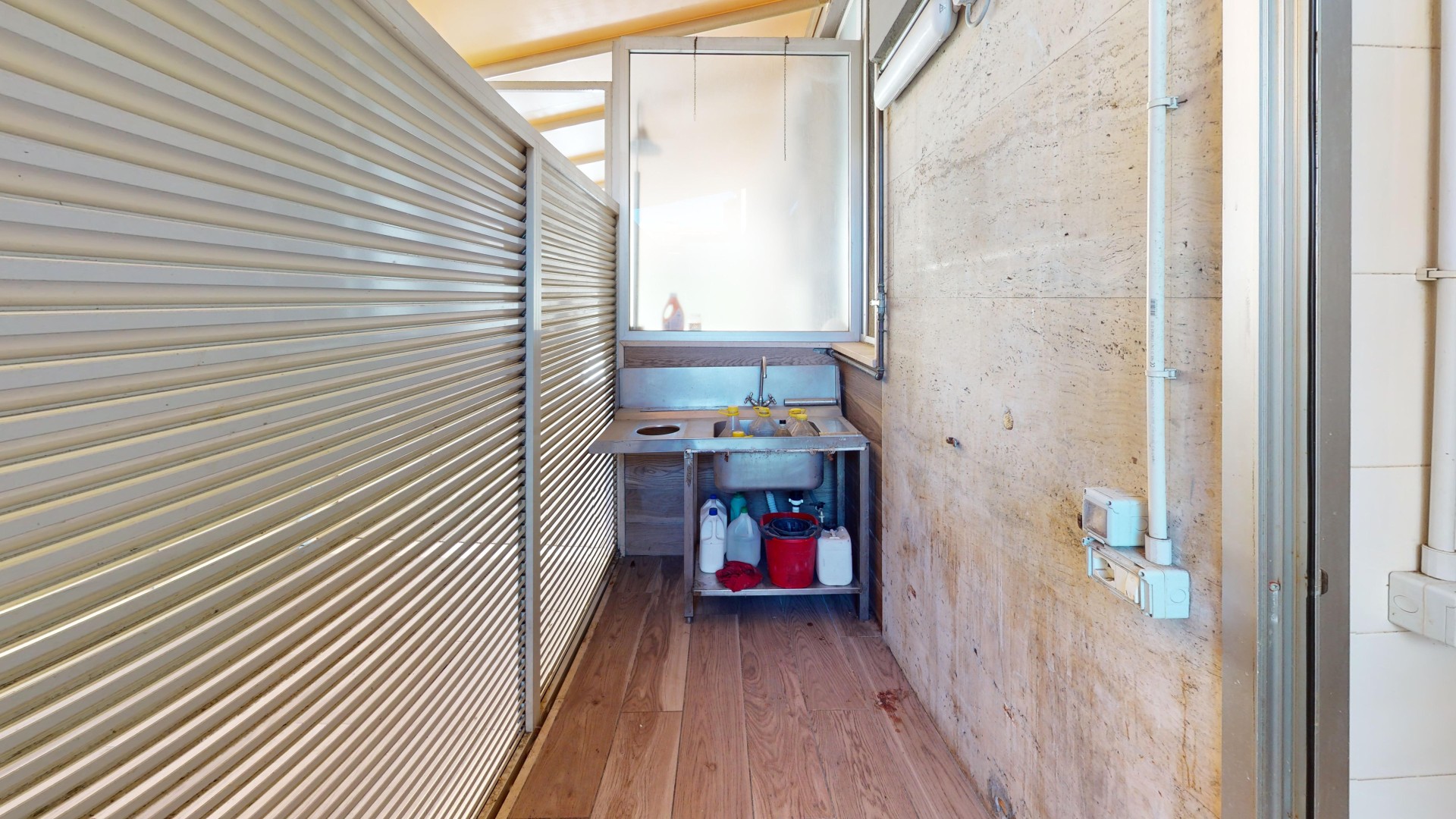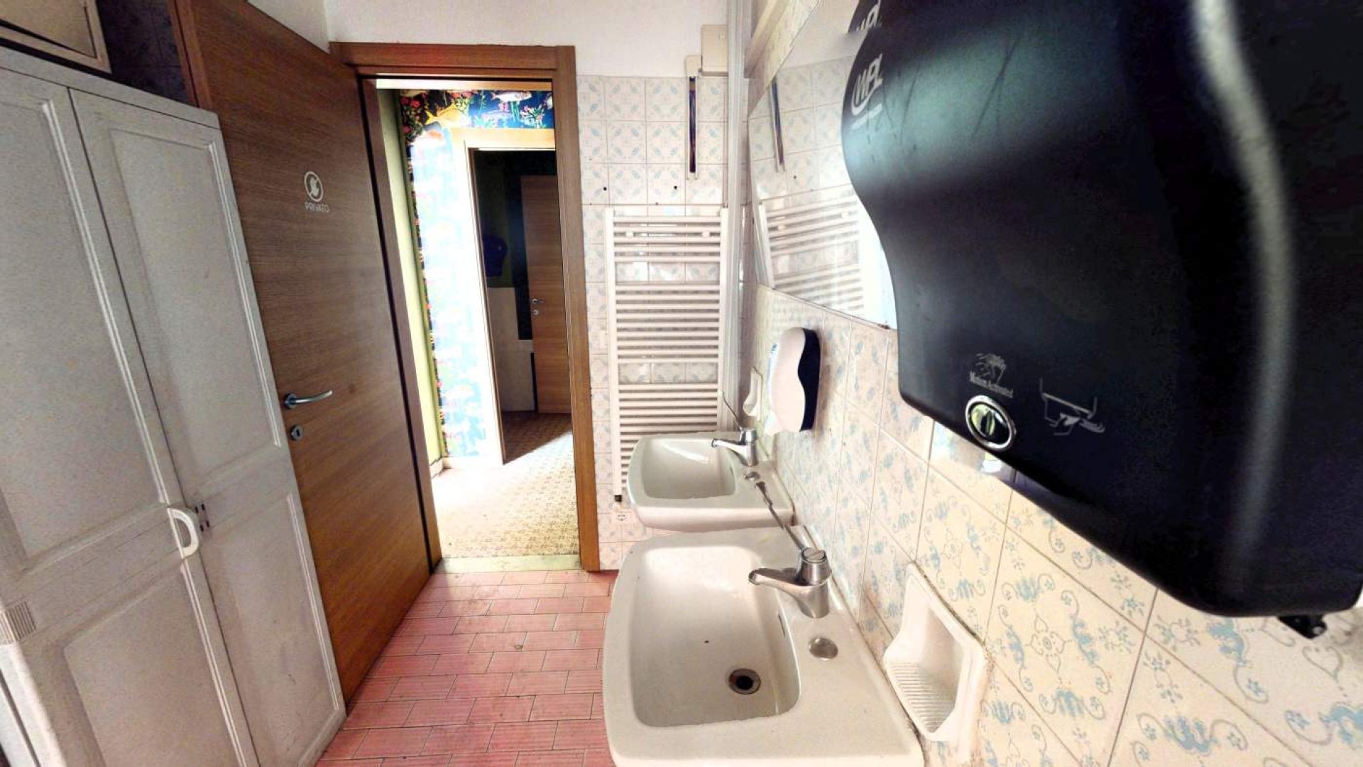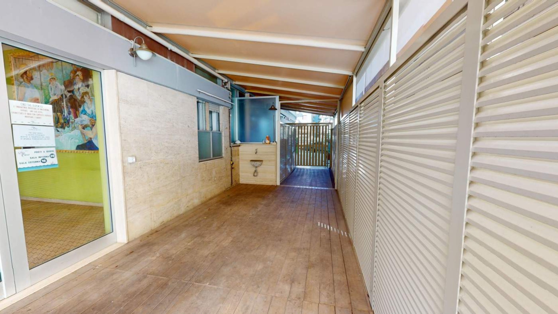 La distribuzione interna è razionale e ben organizzata, con disimpegni funzionali, doppi servizi finestrati, antibagni, un pratico ripostiglio e una cucina separata dotata di cappa nuova e accesso esterno, ideale per attività legate alla ristorazione o servizi che necessitano di aree tecniche dedicate.