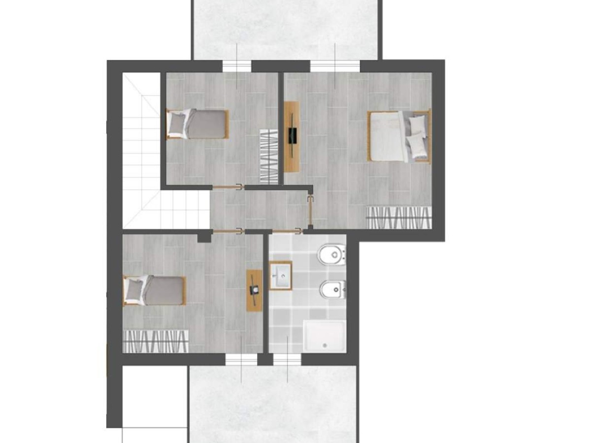 Ingresso su ampio soggiorno luminoso Sala da pranzo Cucina abitabile separata Antibagno e bagno finestratoPiano Primo: