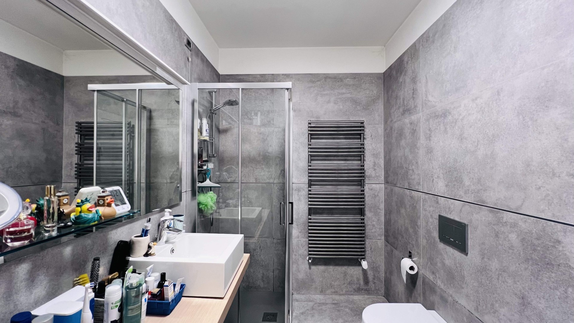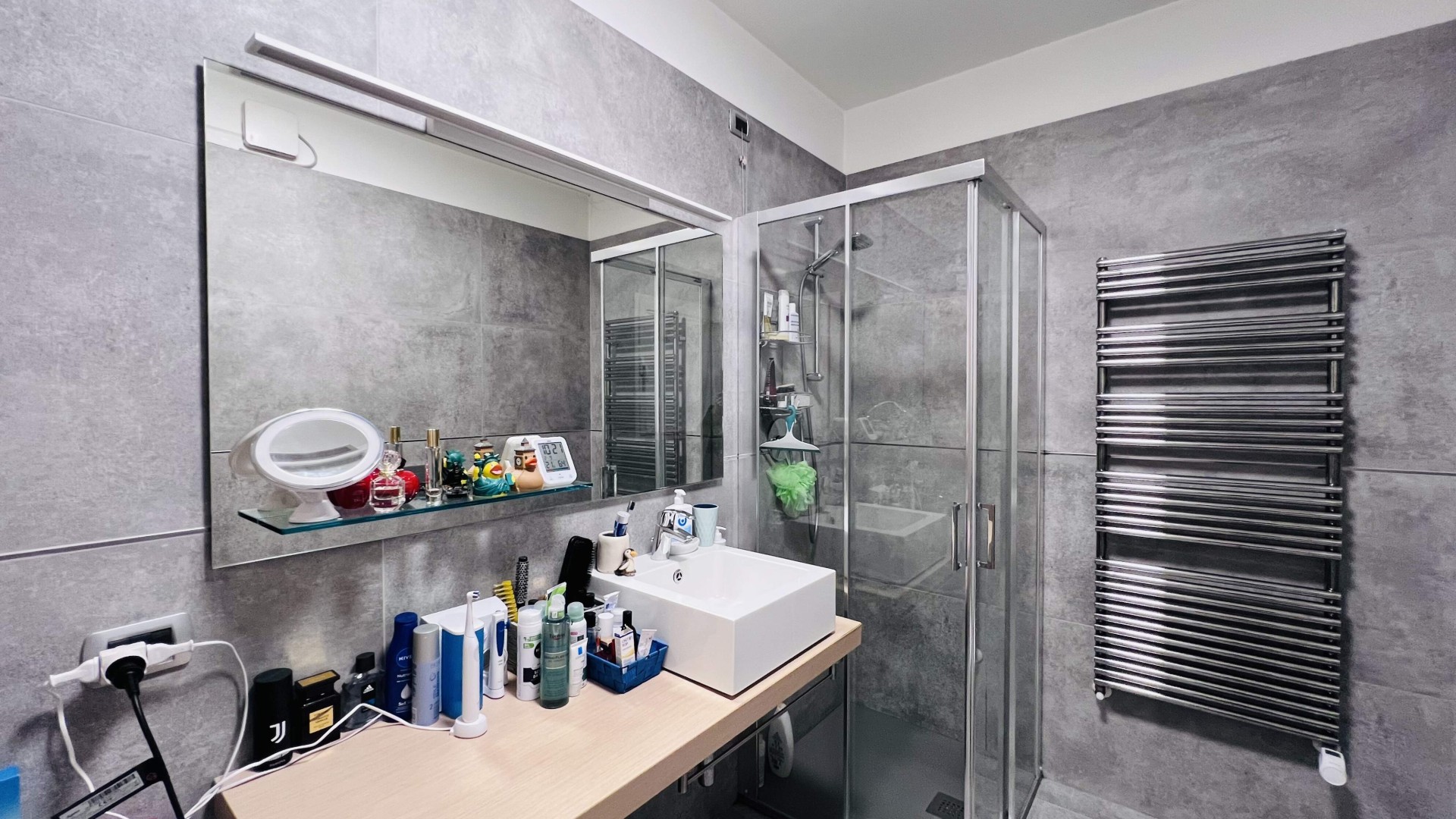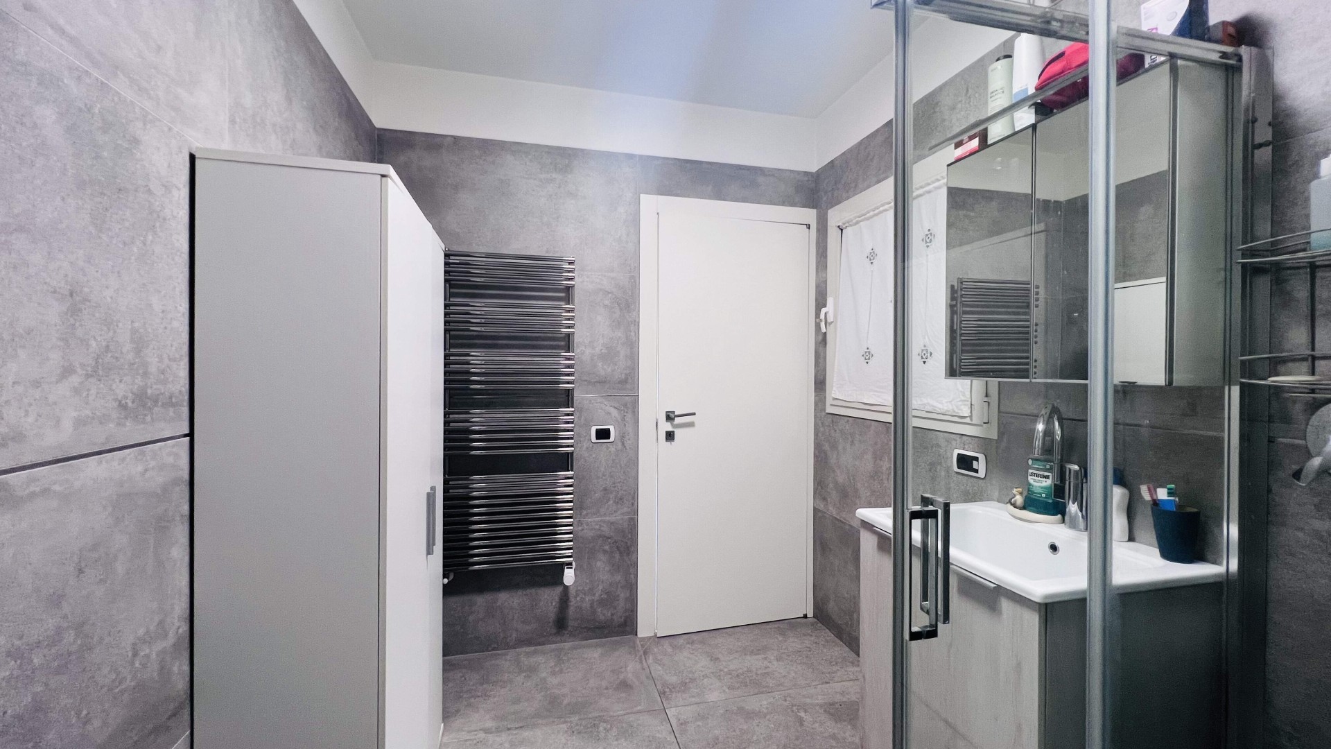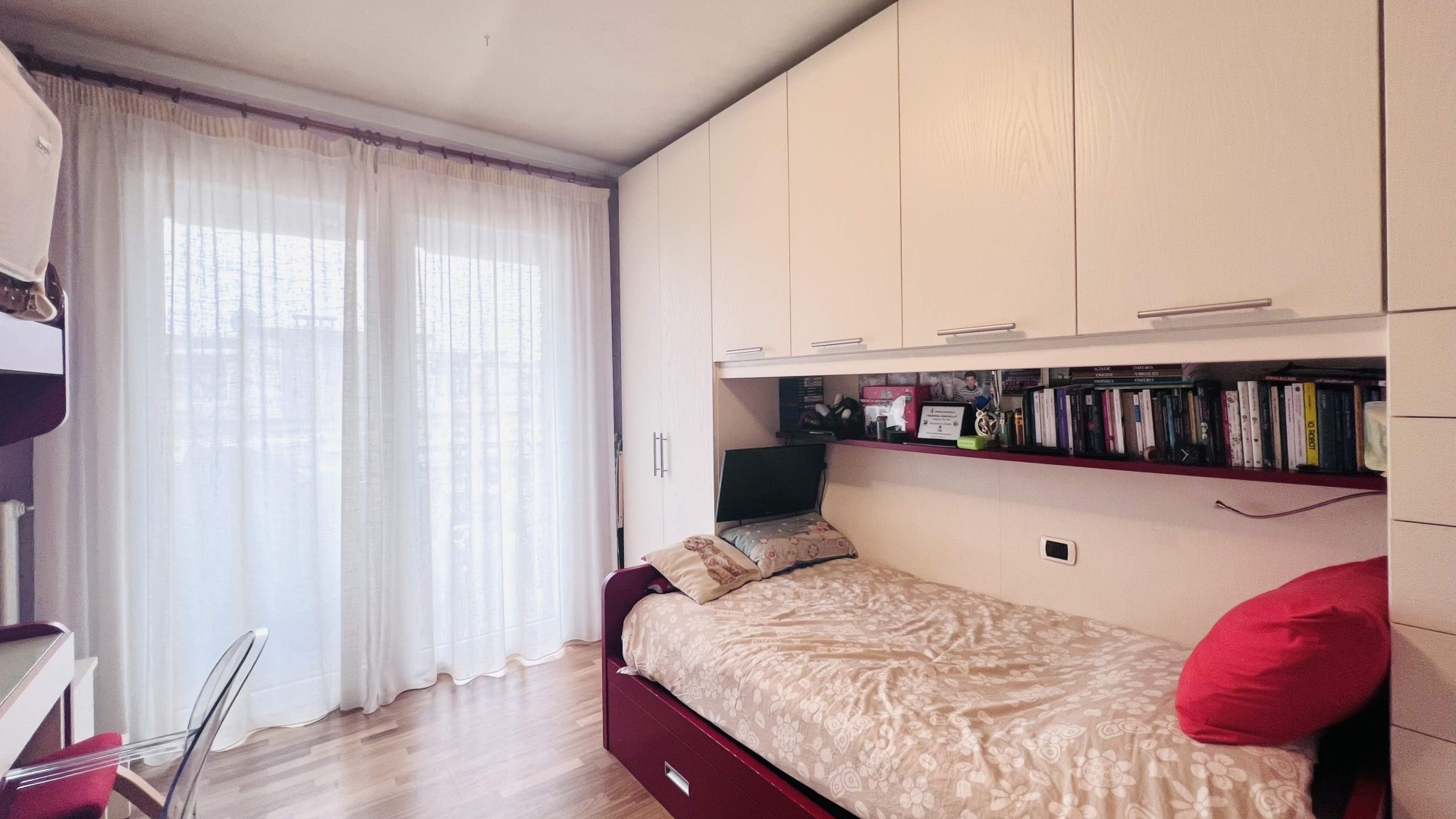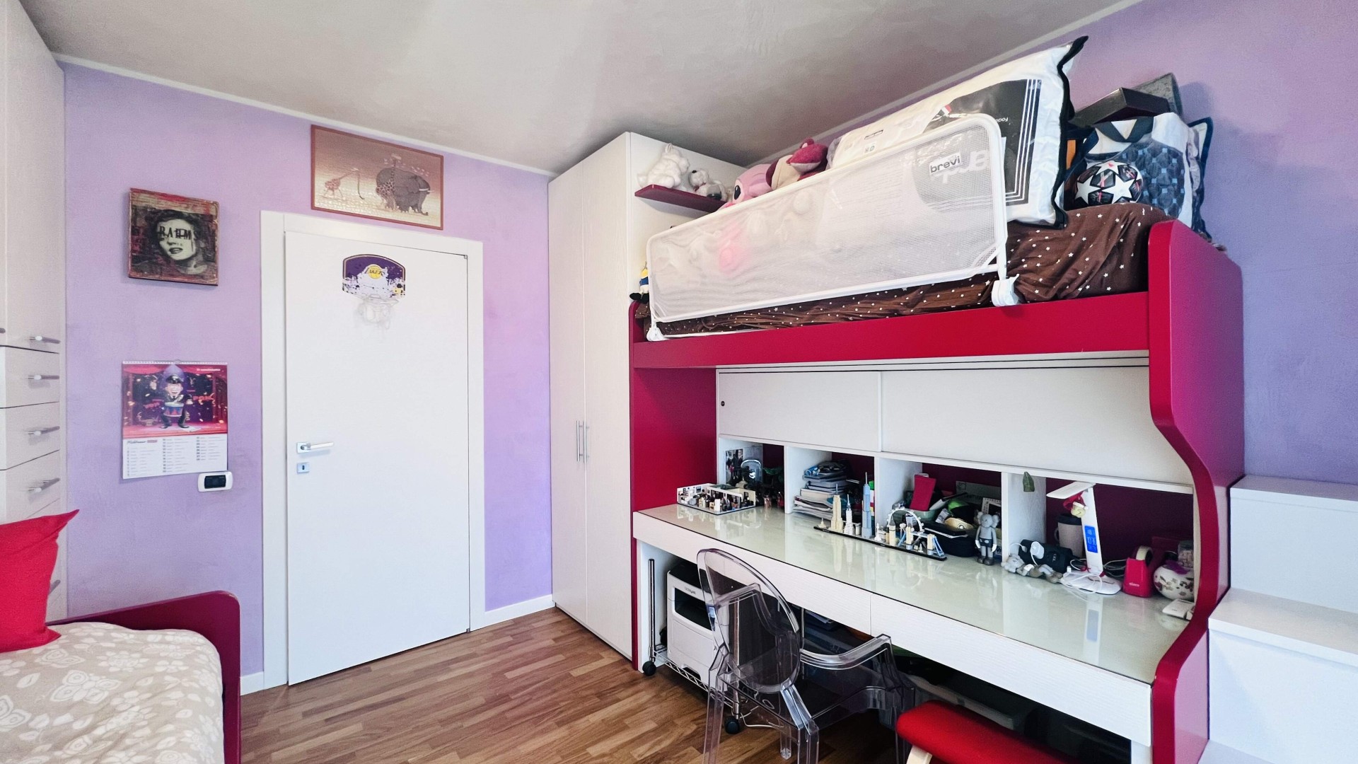 La zona notte si compone di due camere da letto, di cui una matrimoniale ed una doppia, e due bagni finestrati con box doccia.