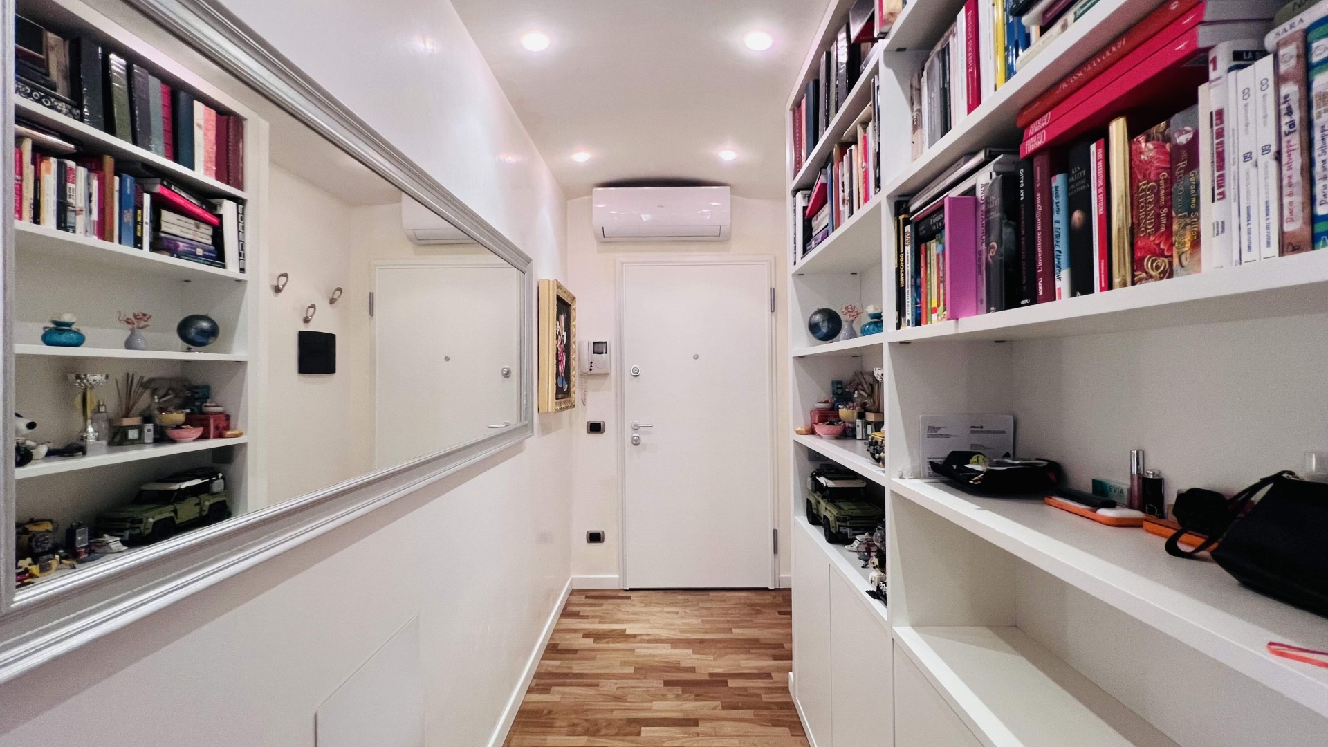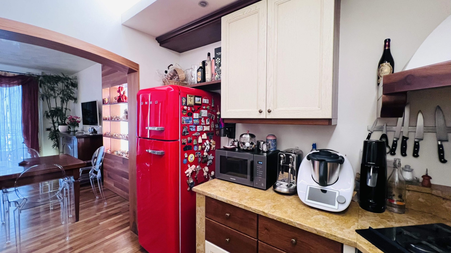 Viene venduto completamente arredato con mobilio artigianale su misura, con armadi con illuminazione interna a strip LED, divano in pelle e testiera del letto in pelle. Il frigo SMEG è stato acquistato 2019, la lavastoviglie nel 2025.