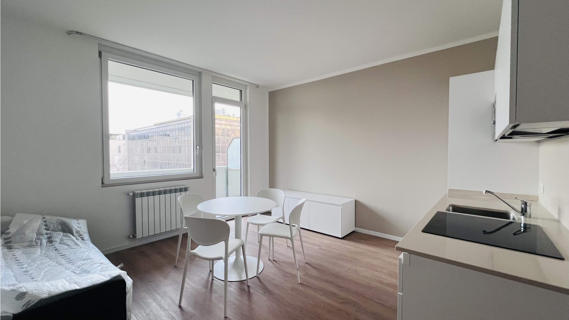 L'immobile, ristrutturato e arredato a nuovo, si compone di ingresso su disimpegno che conduce alla zona giorno open-space con cucina a vista.