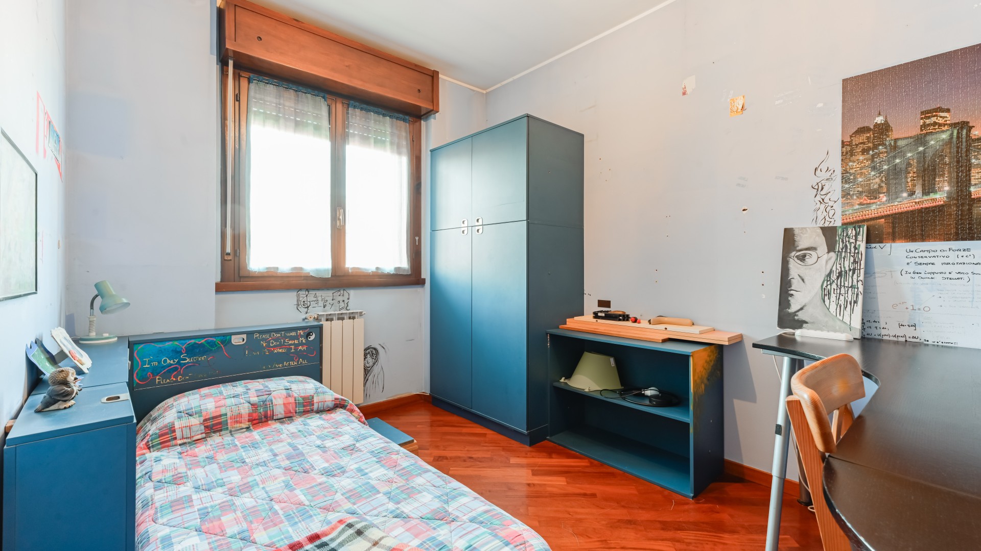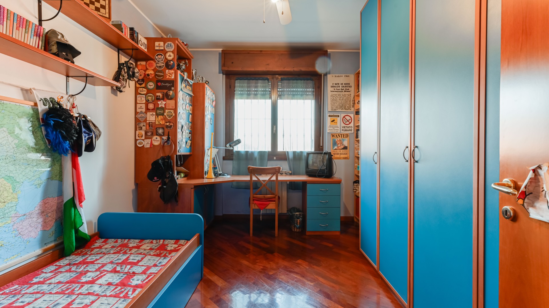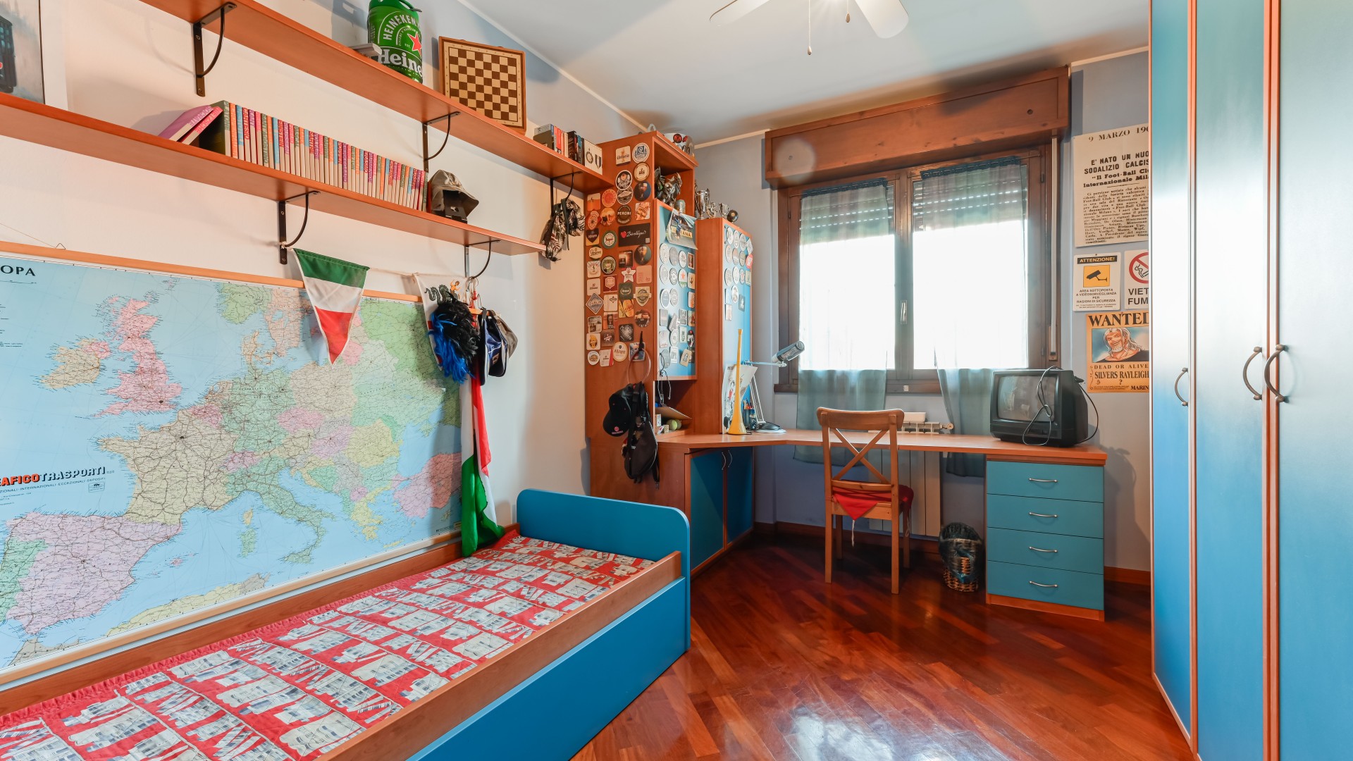 Salendo ai piani superiori si sviluppa la zona notte, pensata per garantire comfort e privacy. Le tre camere da letto offrono spazi ben proporzionati, con una camera matrimoniale che si distingue per metratura e luminosità, affiancata da altre due stanze versatili, adatte come camere per i figli, studio o stanza ospiti.