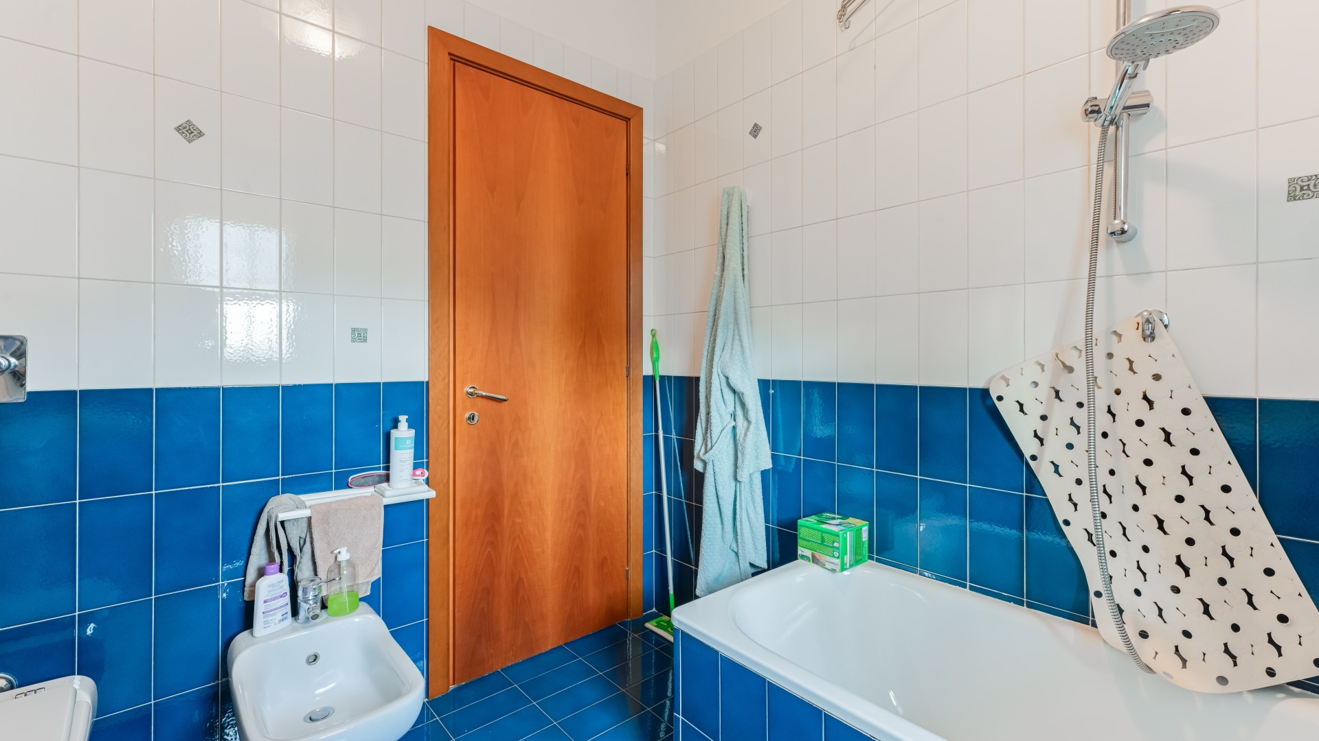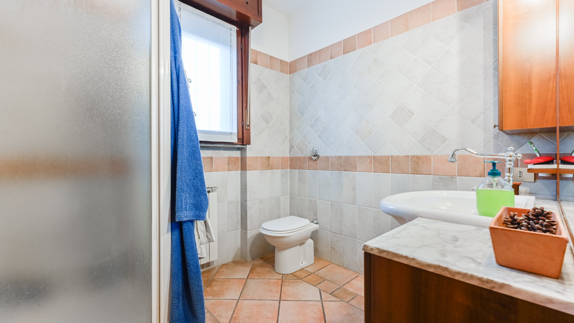 I due bagni, uno situato al primo piano e l’altro al secondo, sono distribuiti in modo funzionale e risultano comodi per la gestione della quotidianità familiare.