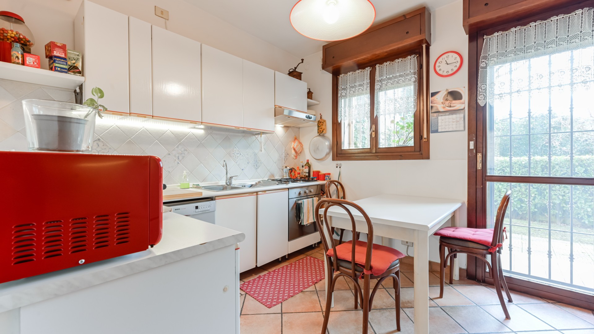 L’ingresso introduce direttamente nella zona giorno, dove il soggiorno si presenta ampio e luminoso, perfetto per accogliere la vita quotidiana e per momenti di convivialità. Adiacente al soggiorno si trova la cucina semi abitabile, ben organizzata e dotata di porta finestra che conduce al giardino, uno spazio esterno riservato e vivibile, ideale per pranzi all’aperto, momenti di relax o per chi ama il verde.