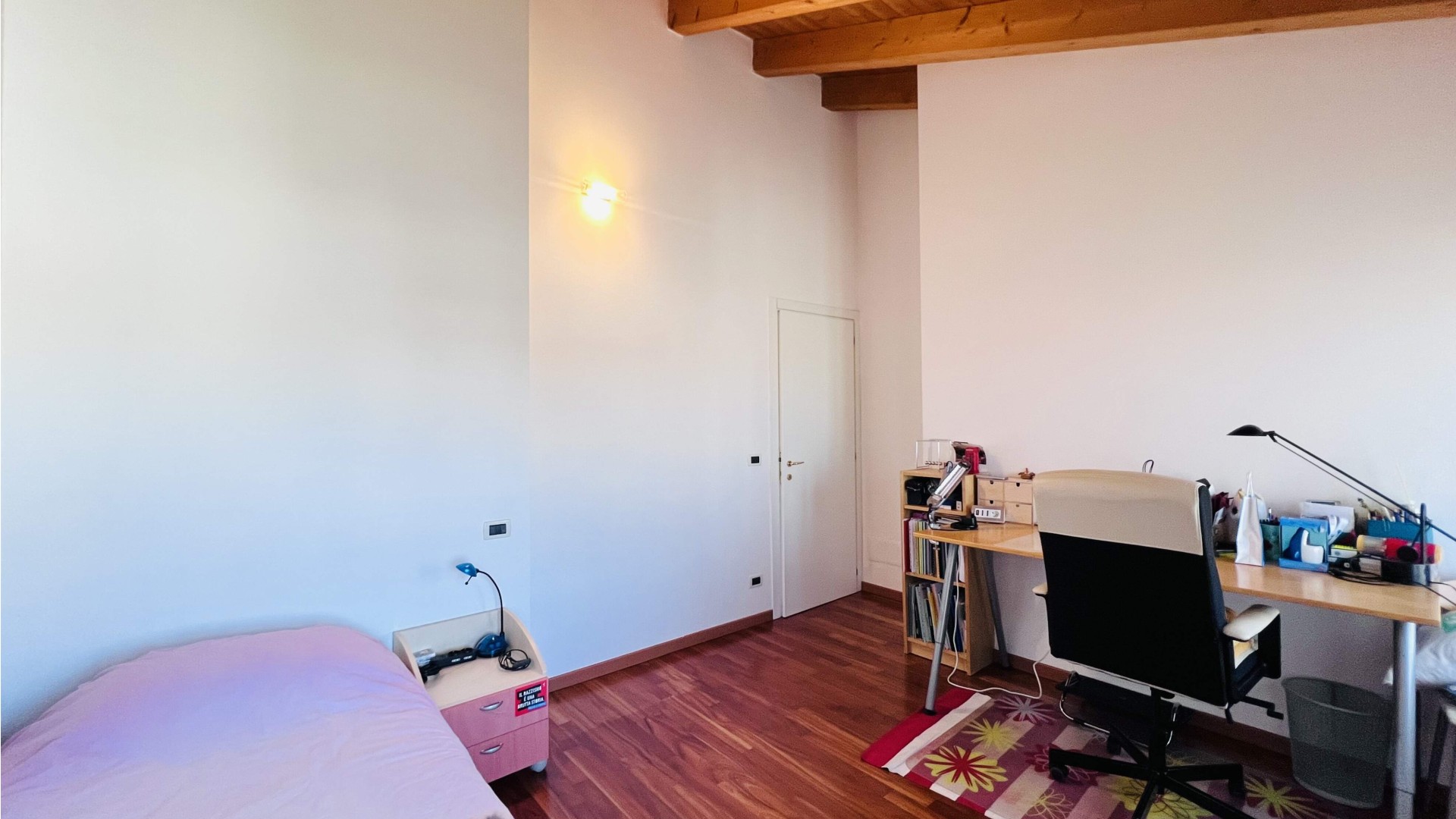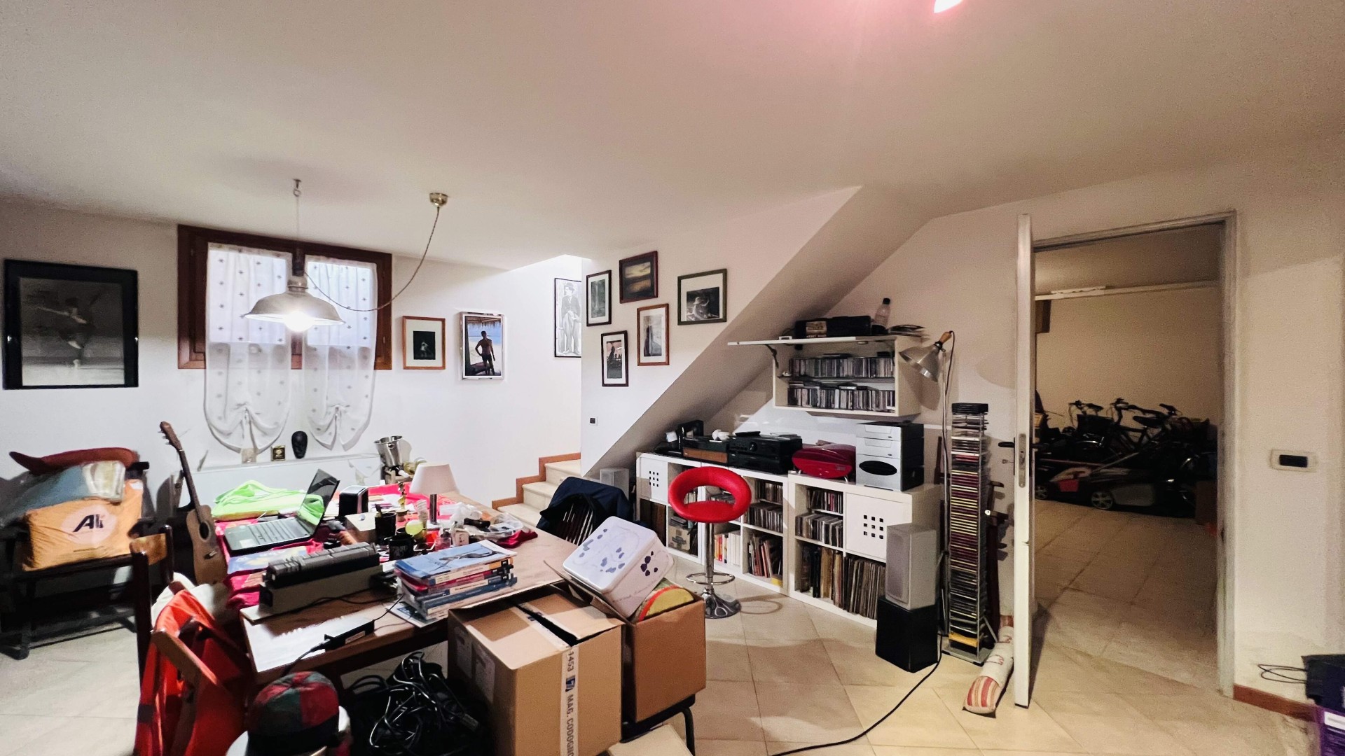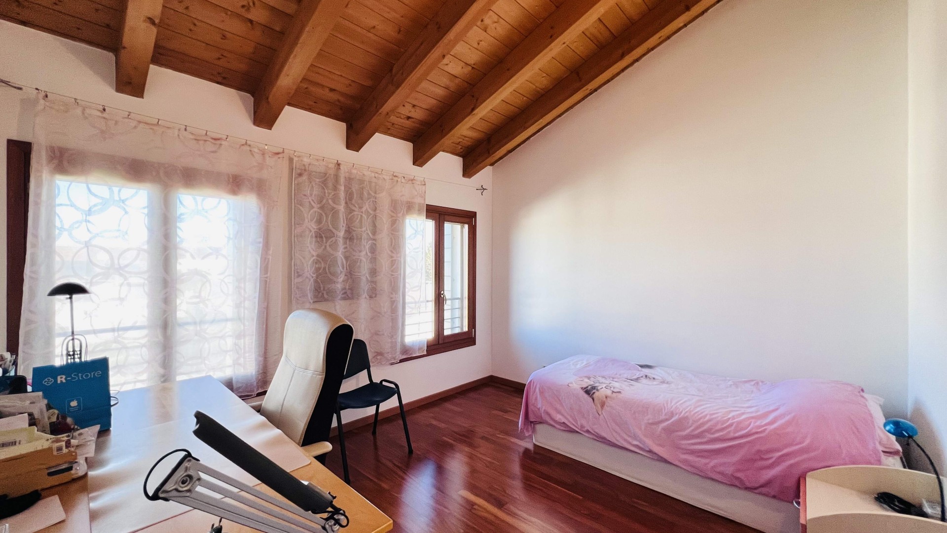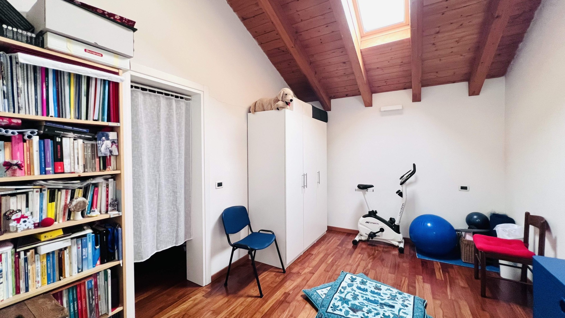 Al secondo piano, con soffitto con travi a vista, vi sono due ulteriori stanze, entrambe di ca. 14 mq, una delle quali attualmente adibita a camera da letto ed una a stanza "jolly".
