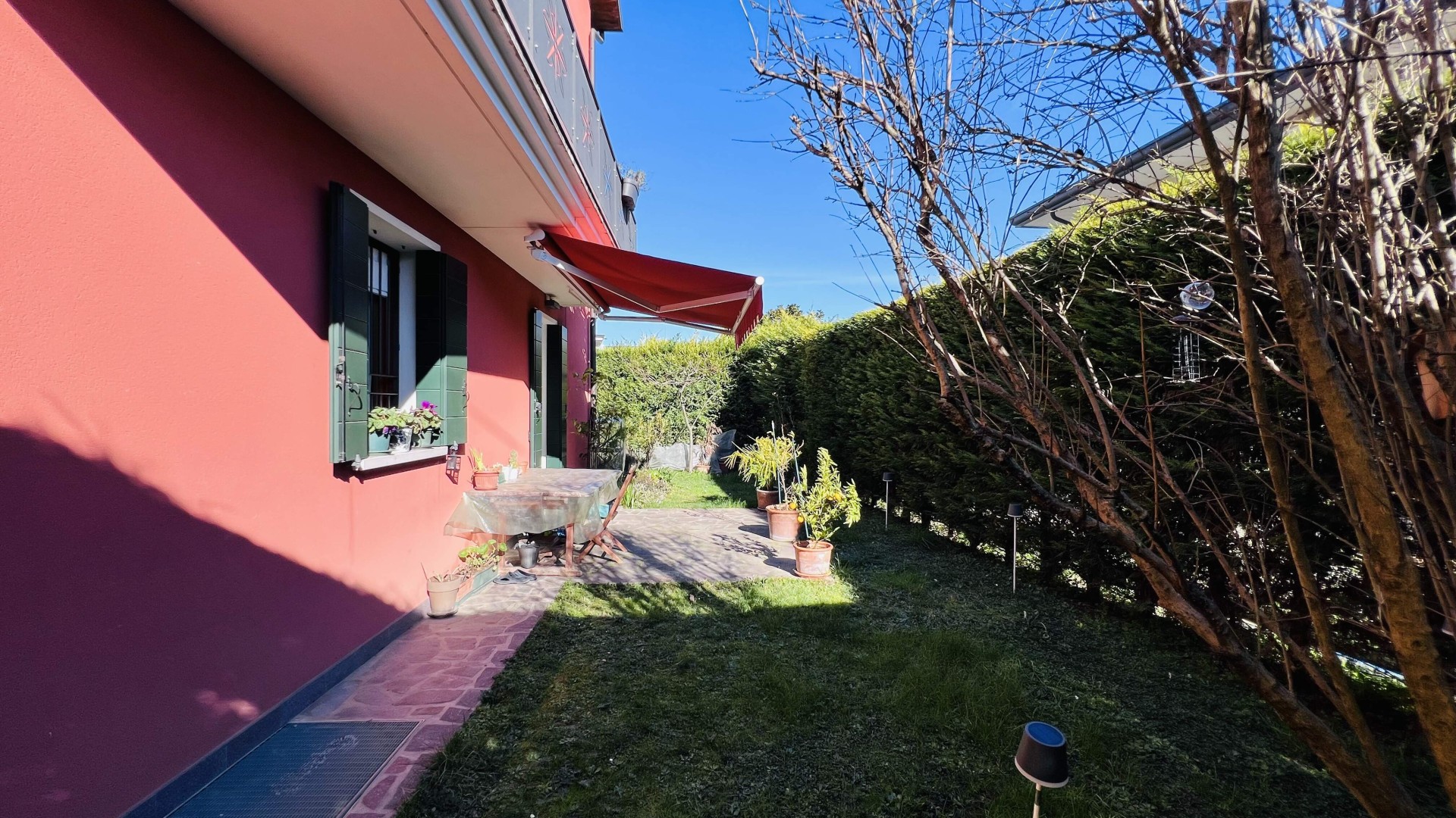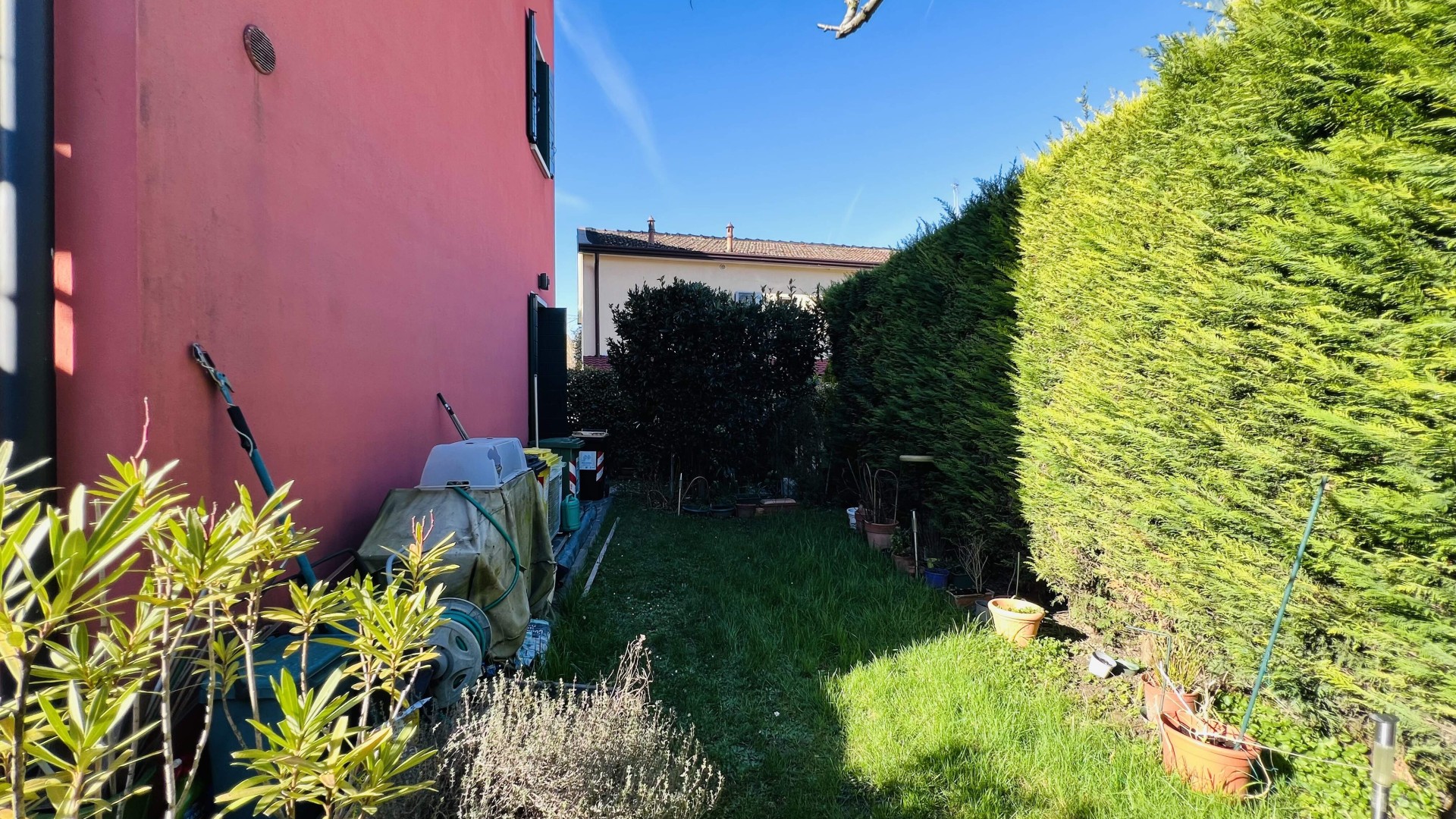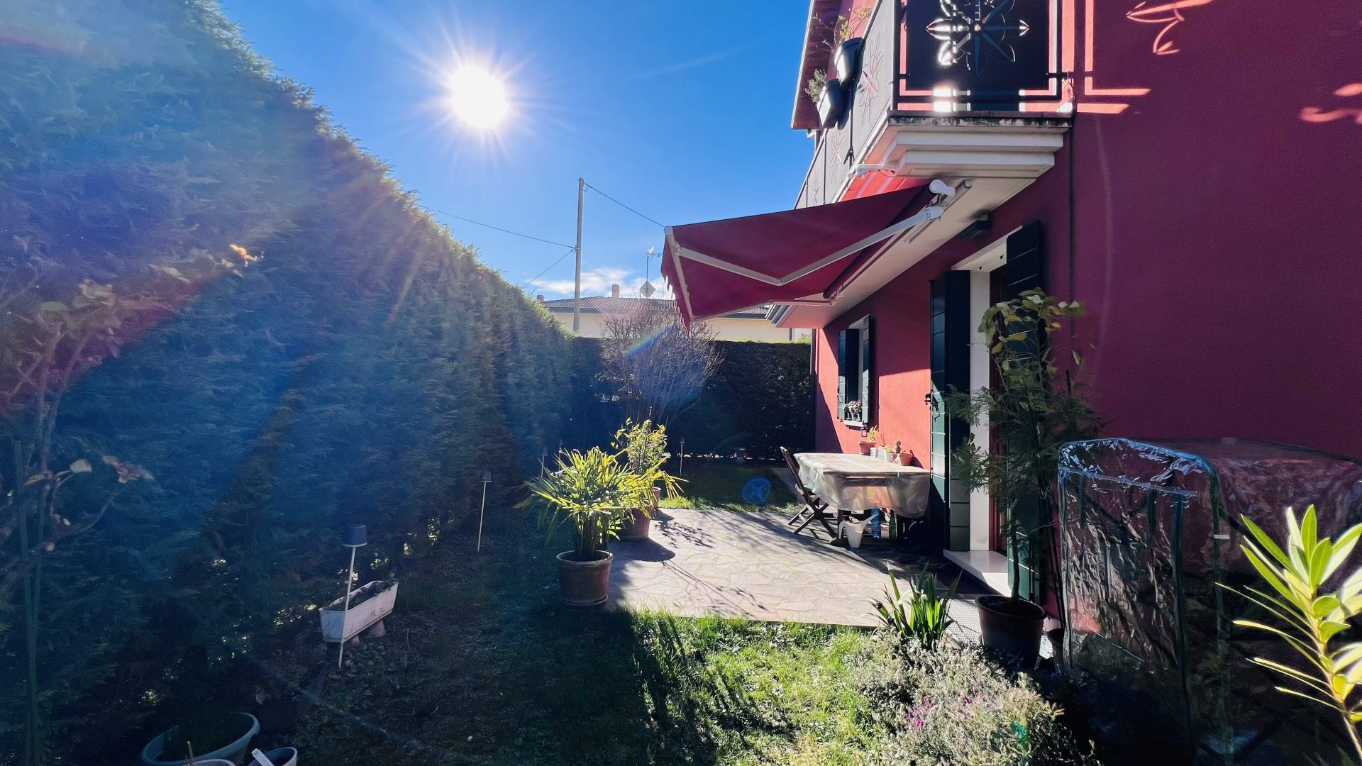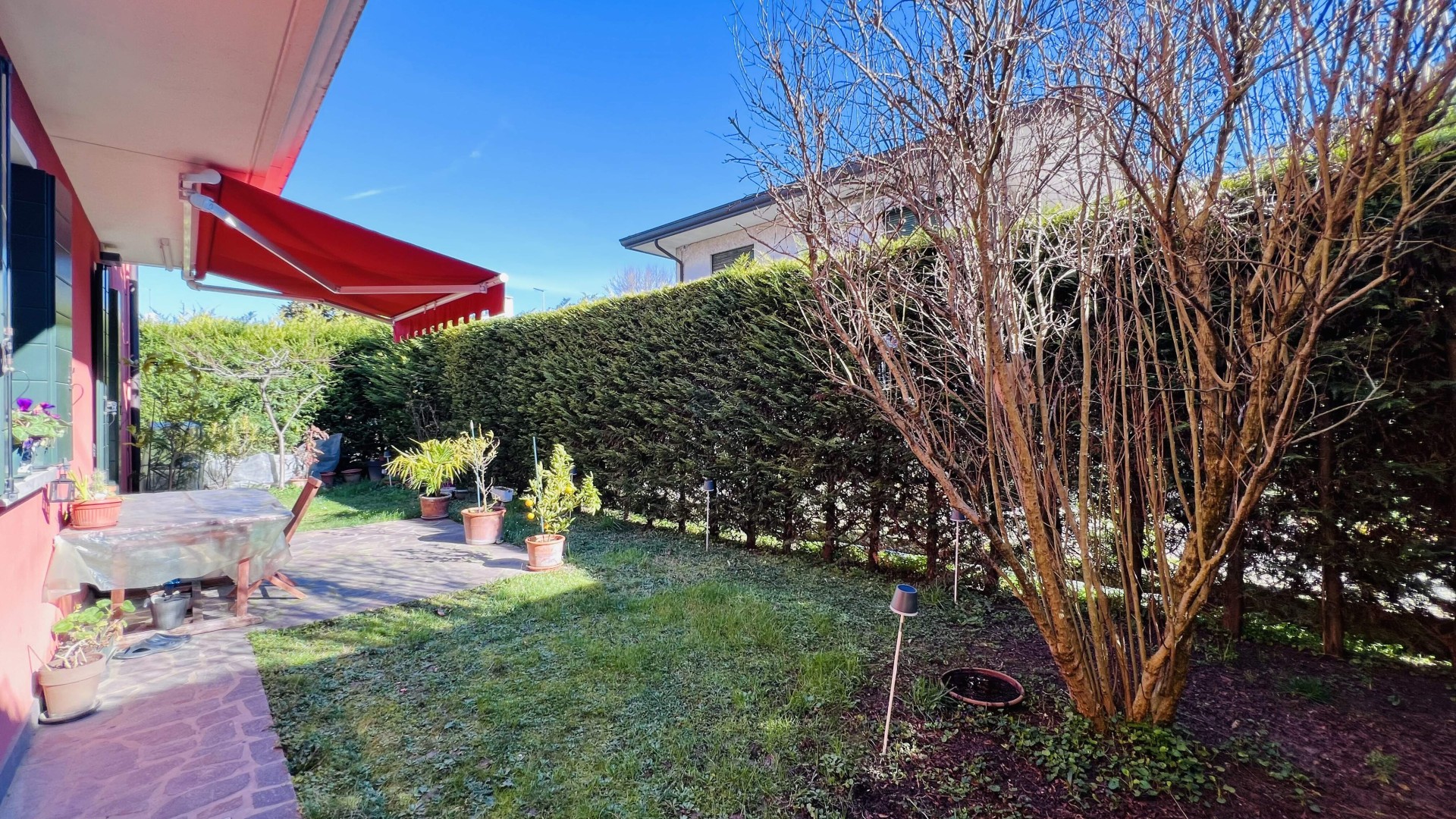 Da tutti gli ambienti vi è l'accesso al giardino privato, con alberatura a siepe ed ampliamento del plateatico per il tavolo esterno in continuità con il marciapiede.