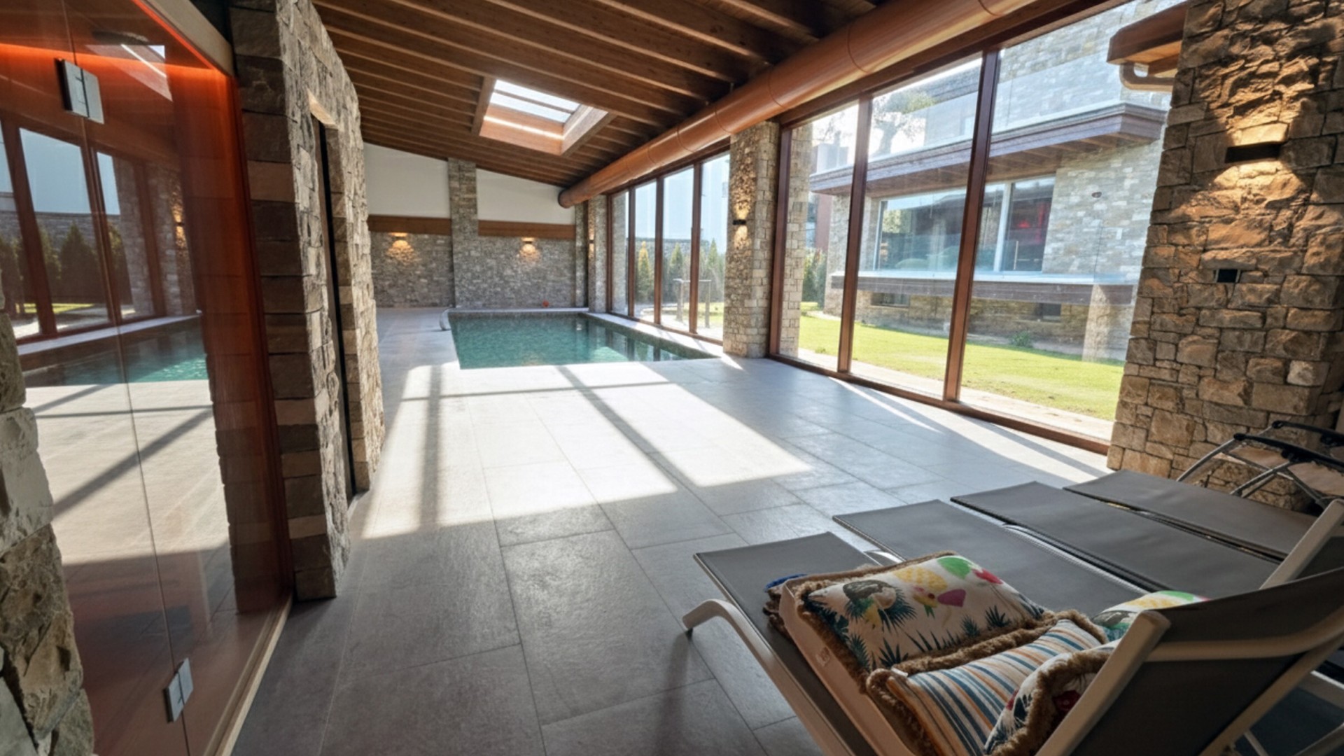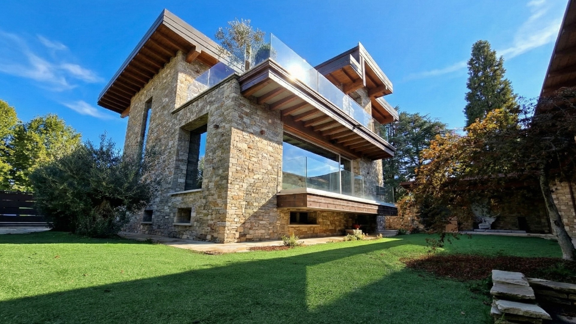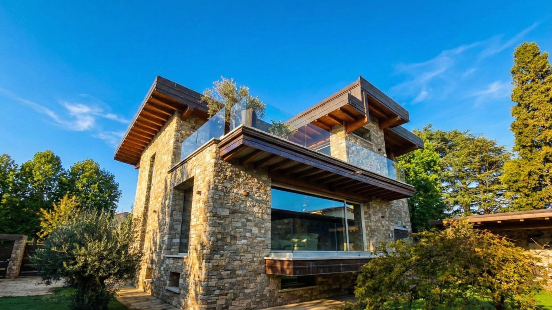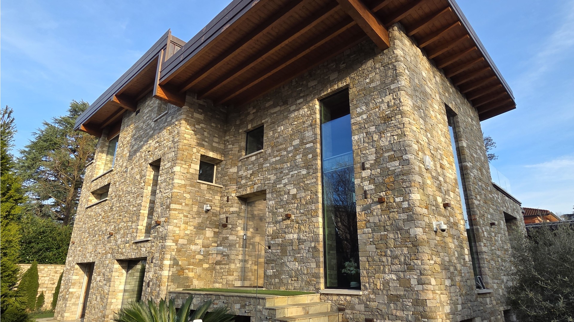La villa si distingue per il suo stile architettonico contemporaneo, caratterizzato da ampie vetrate a tutta altezza, linee moderne e una straordinaria luminosità naturale che valorizza ogni ambiente, creando una perfetta continuità tra spazi interni ed esterni.