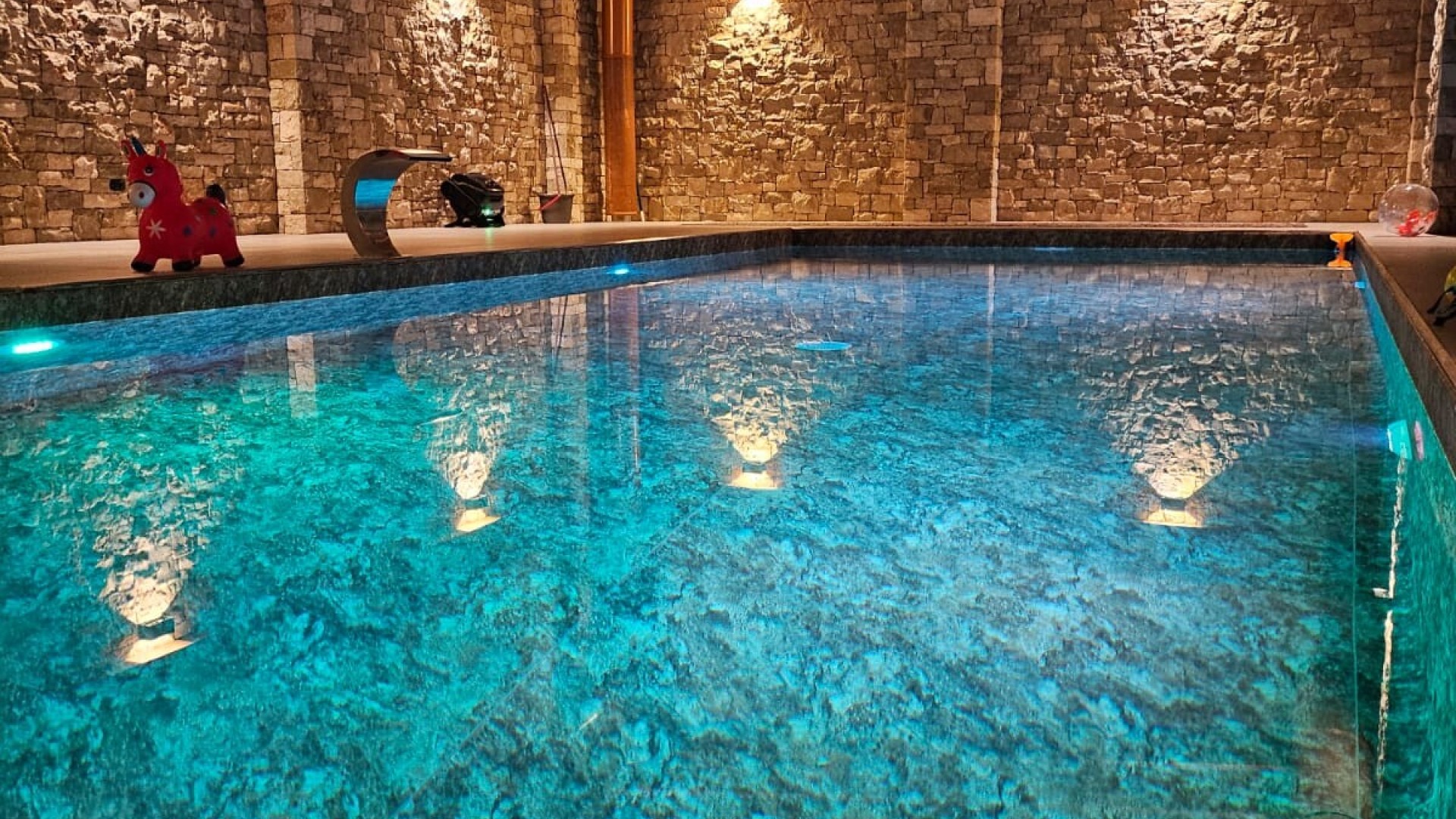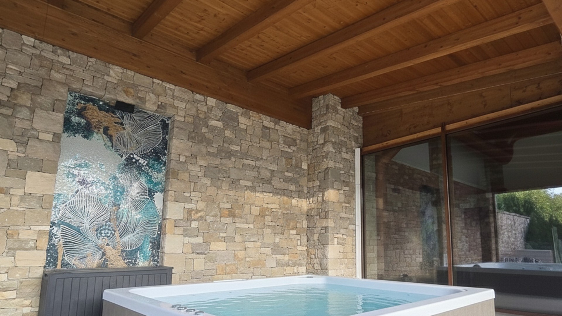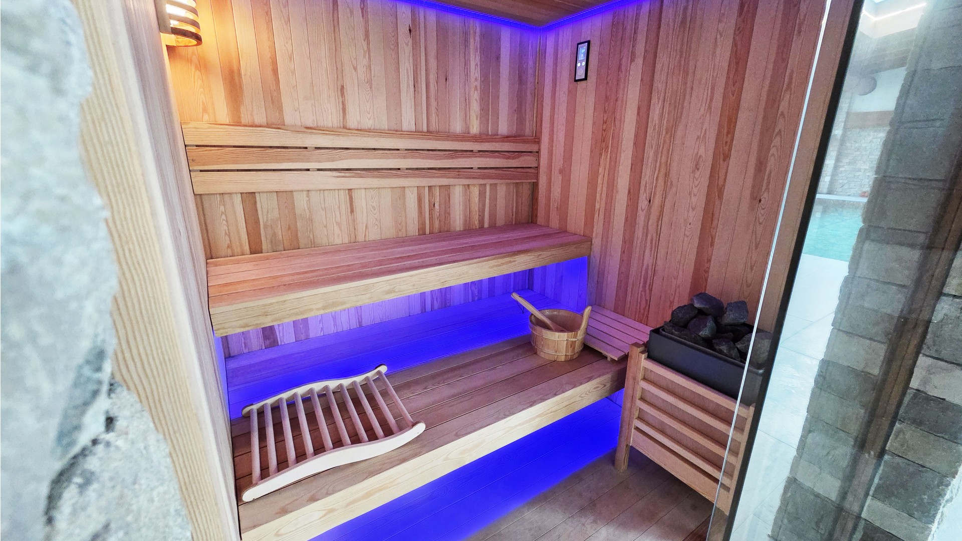 Completano la villa una zona benessere privata con area fitness, spa, piscina ad acqua salata con sistema controcorrente e vasca idromassaggio, perfetta per momenti di relax in totale privacy.
